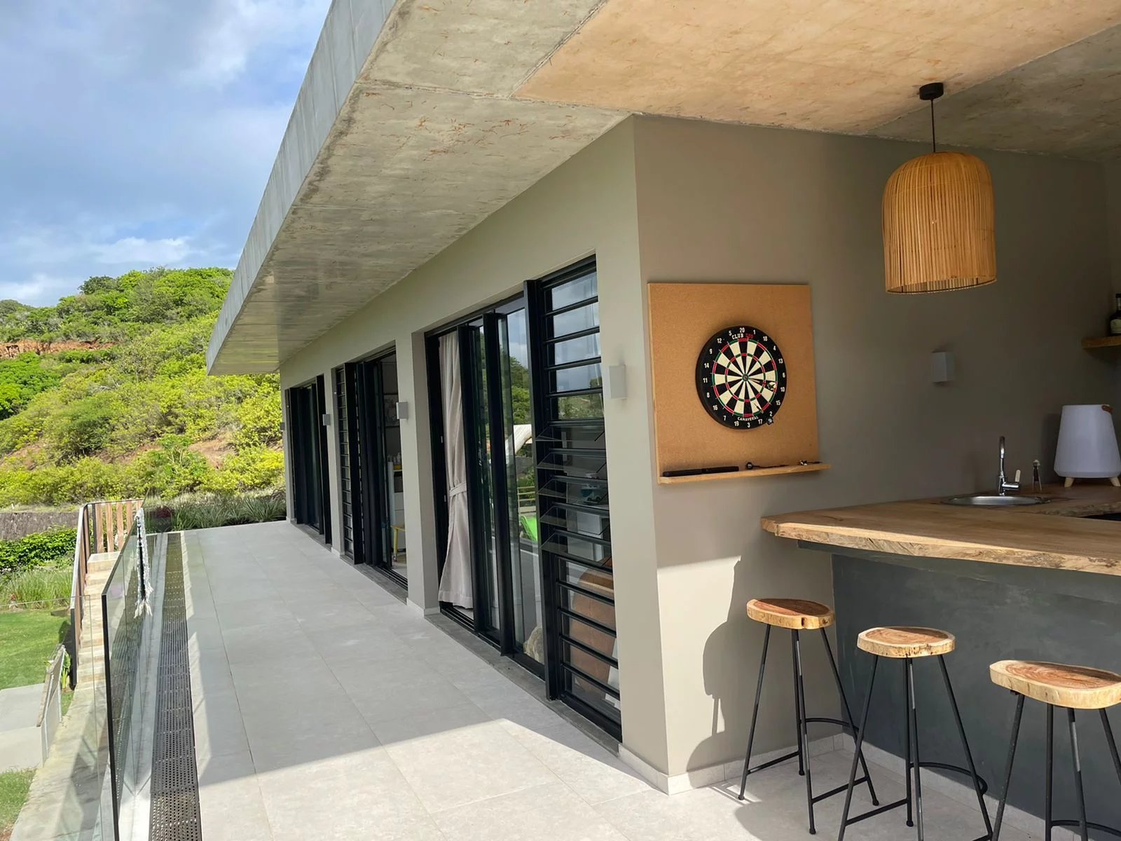 Covered outdoor kitchen area for grilling.