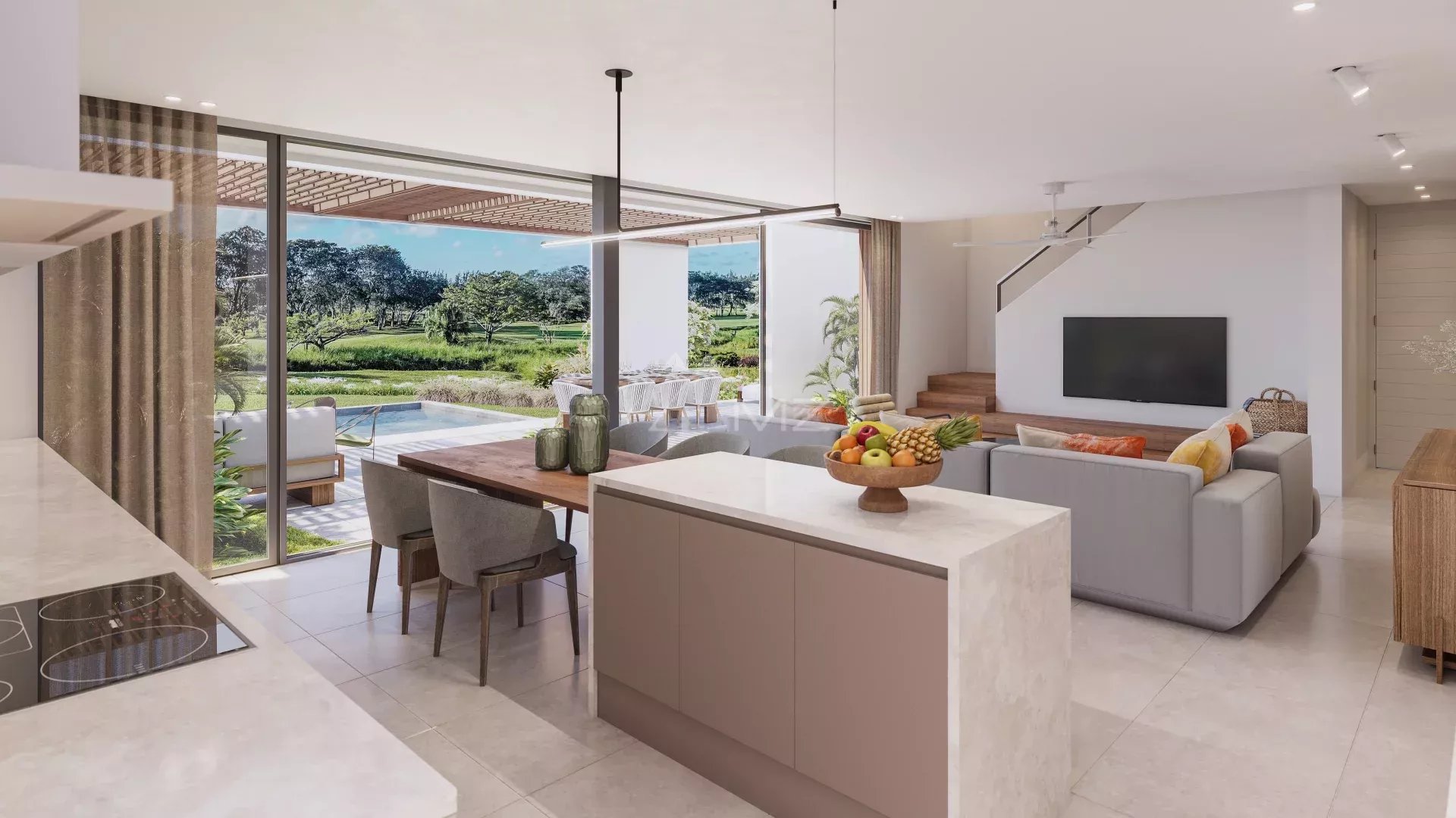 Double-storey villa located on the edge of the prestigious Le Chateau golf course, renowned as the best in the Indian Ocean for 8 consecutive years.