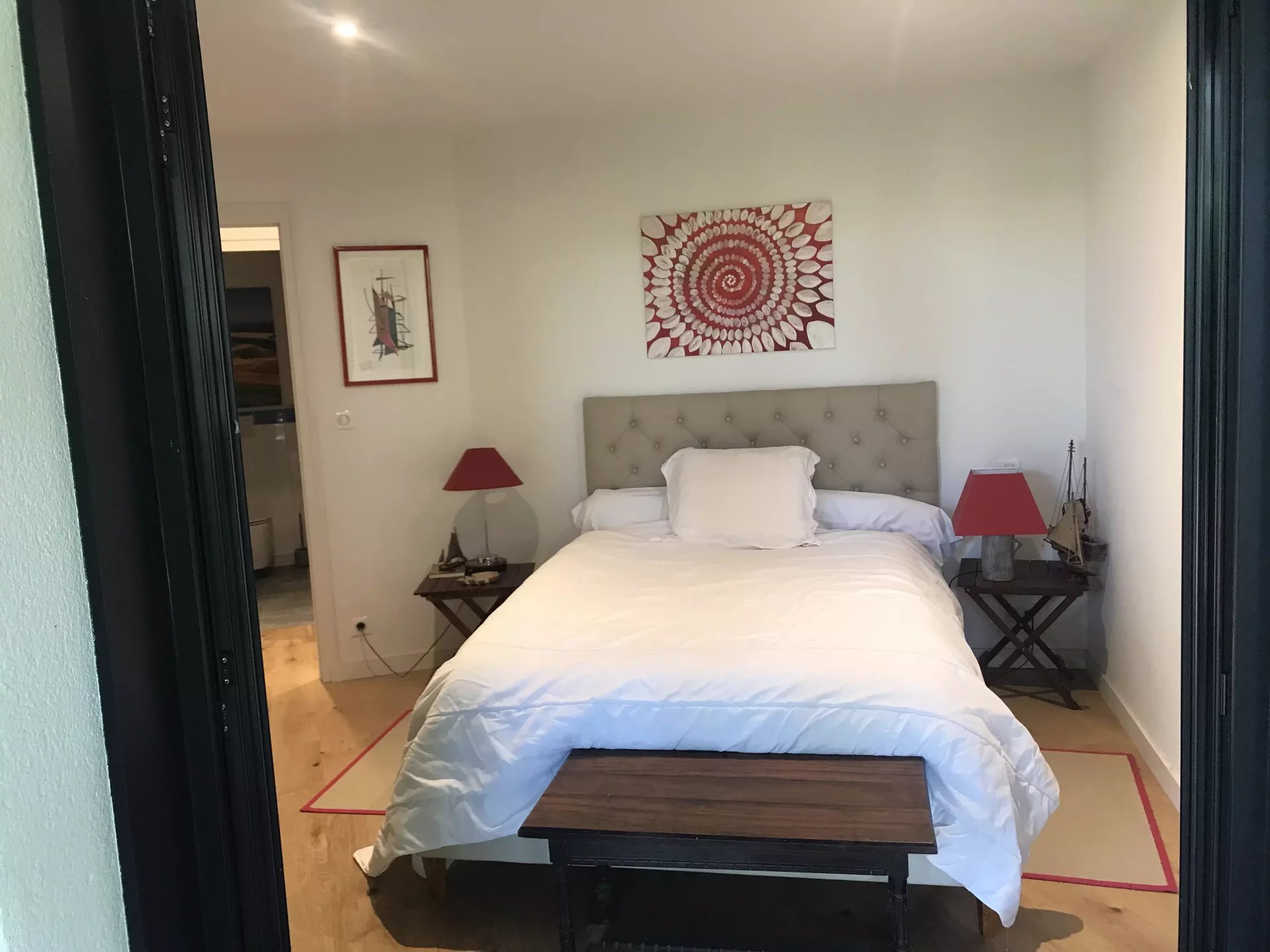 - A master suite with a King size bed, cupboards, a bathroom with bath and shower and a separate toilet. This suite has access to a terrace with sun loungers.