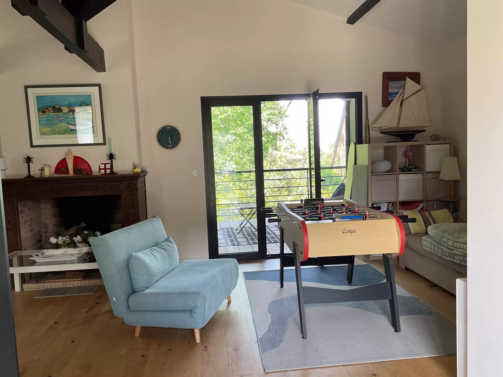 - An entrance to a game room with table football.