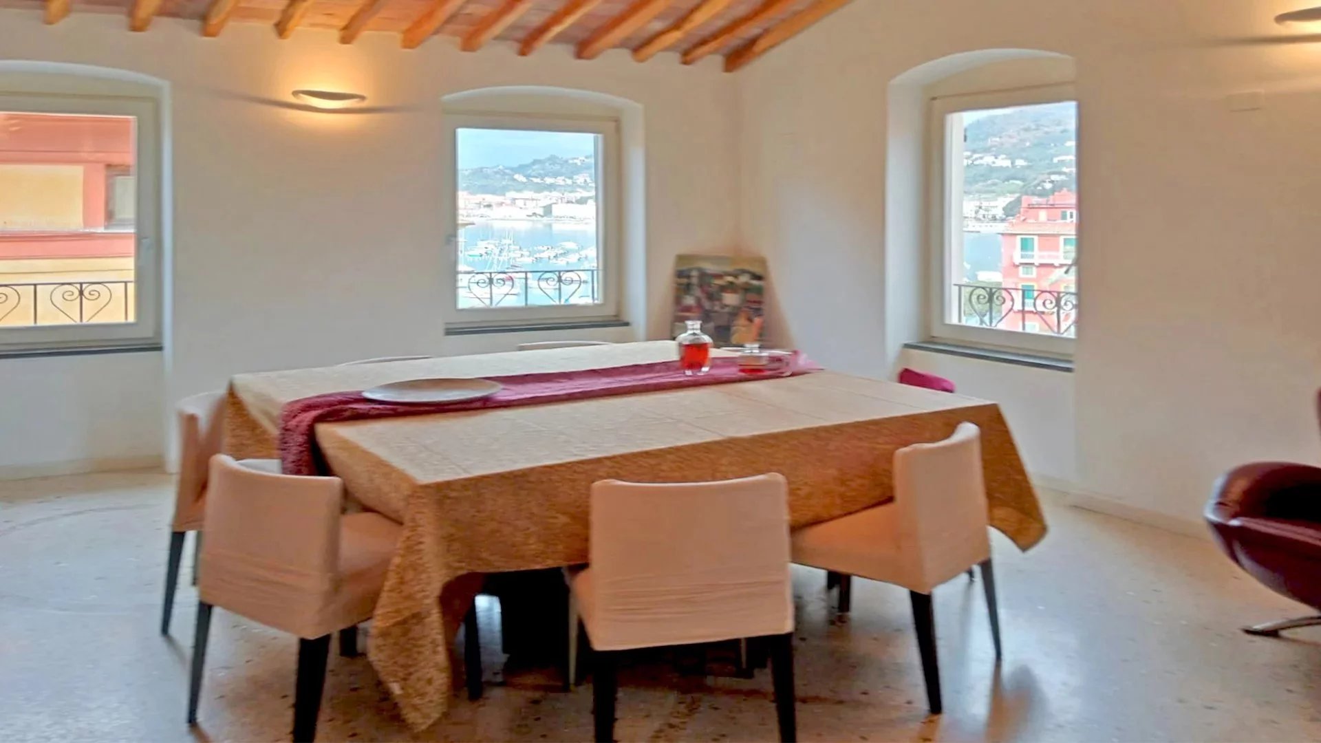 Very special terraced house located in the main square of Lerici, of about 300 square meters, which is spread over four levels connected to each other by an internal staircase and lift.
