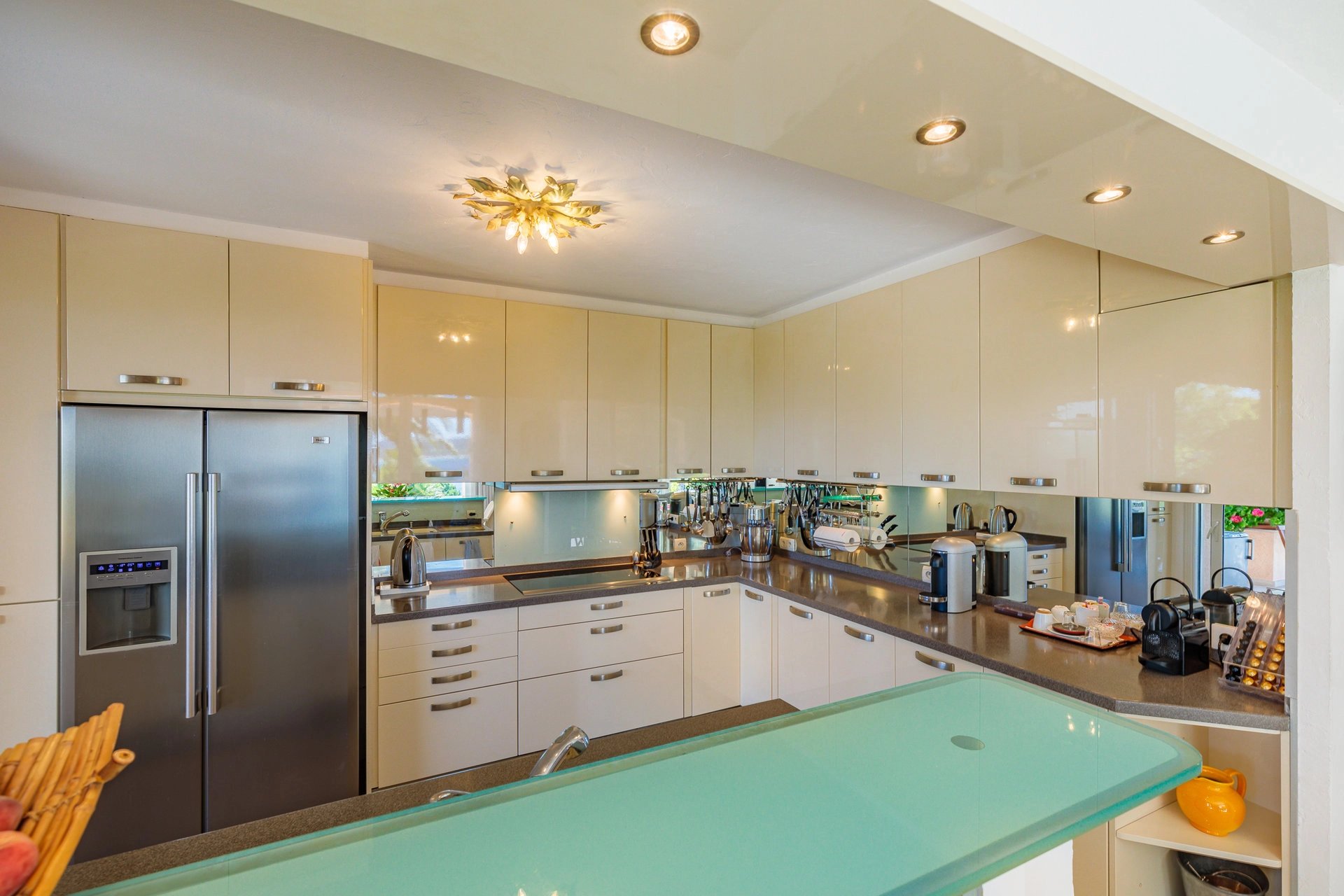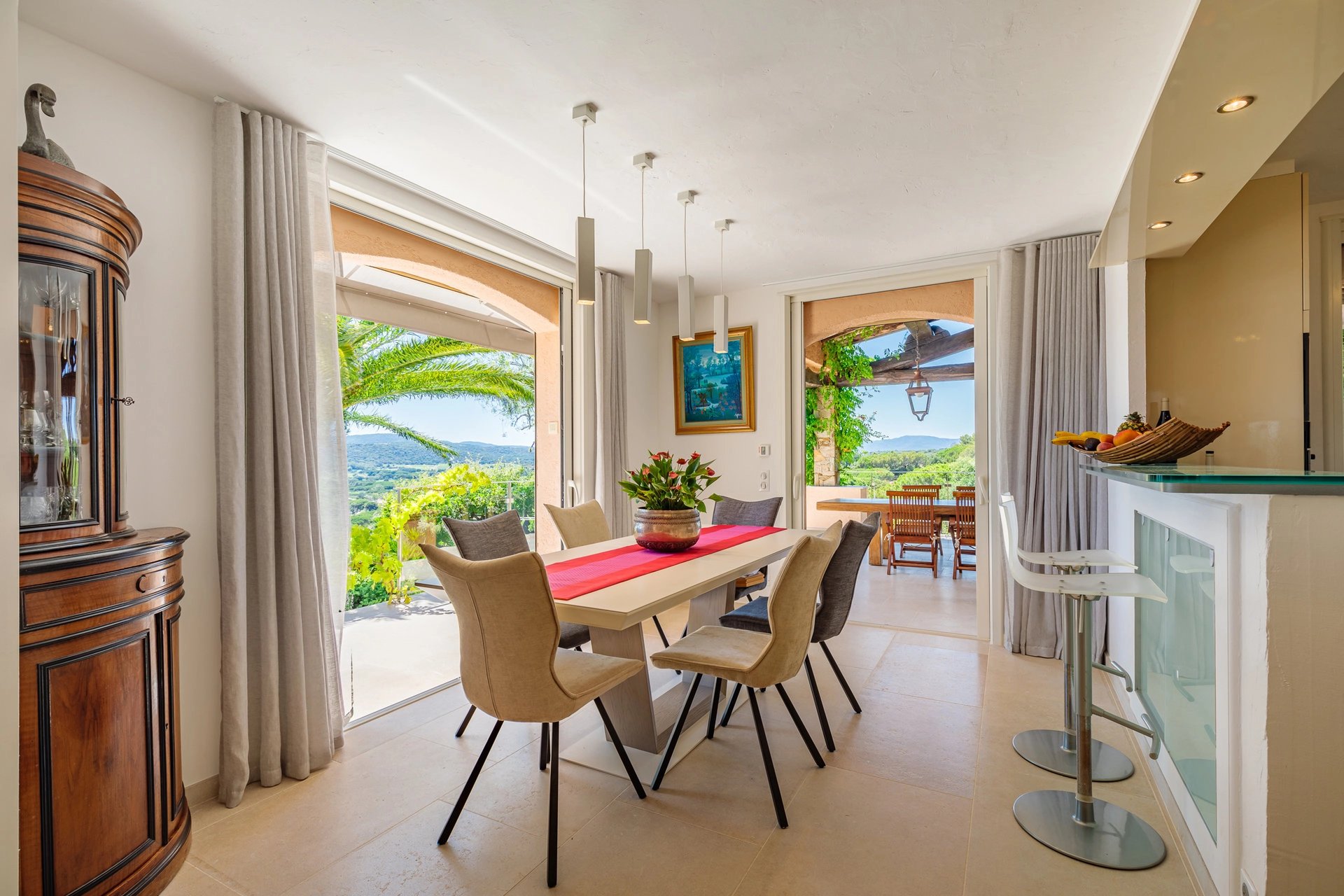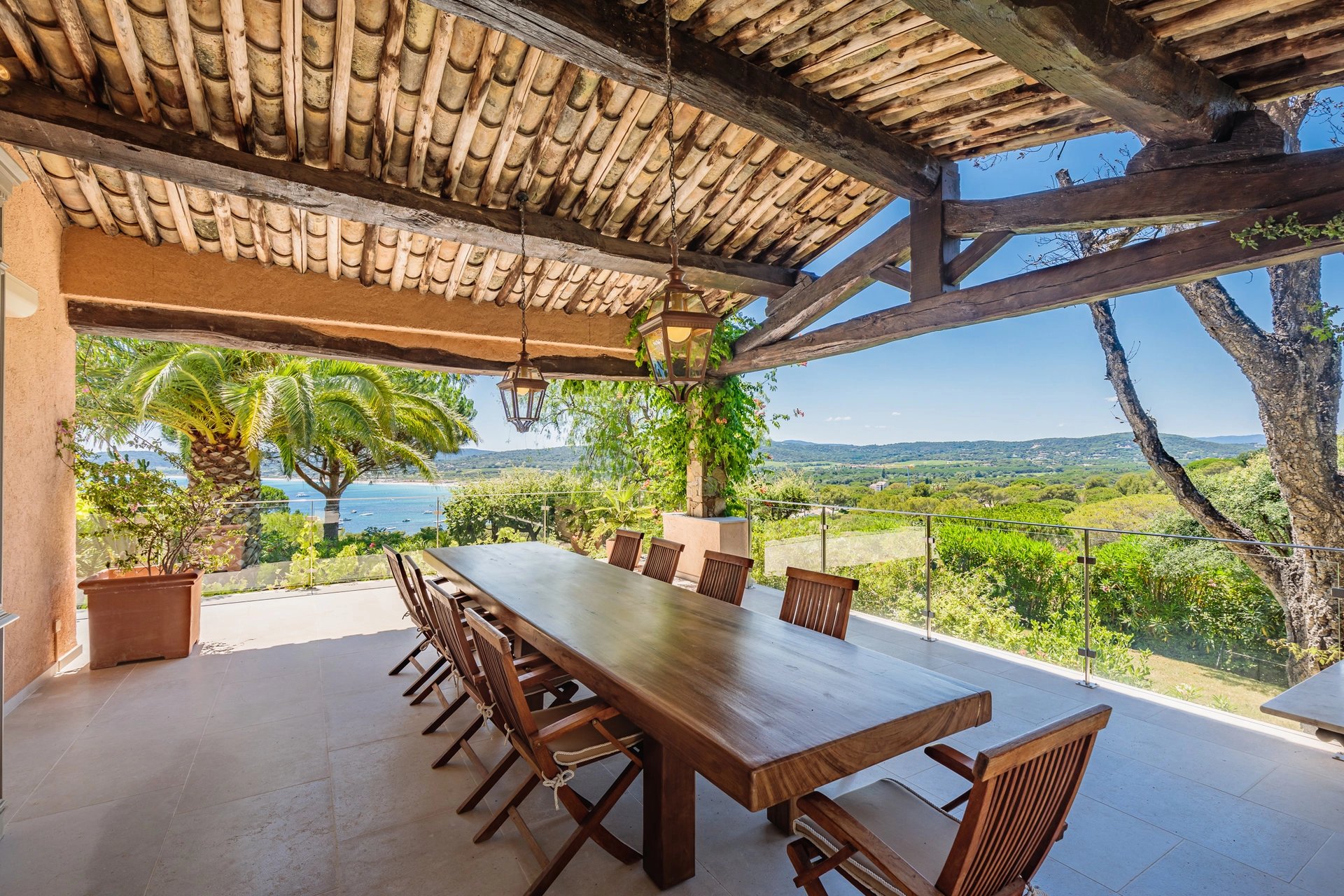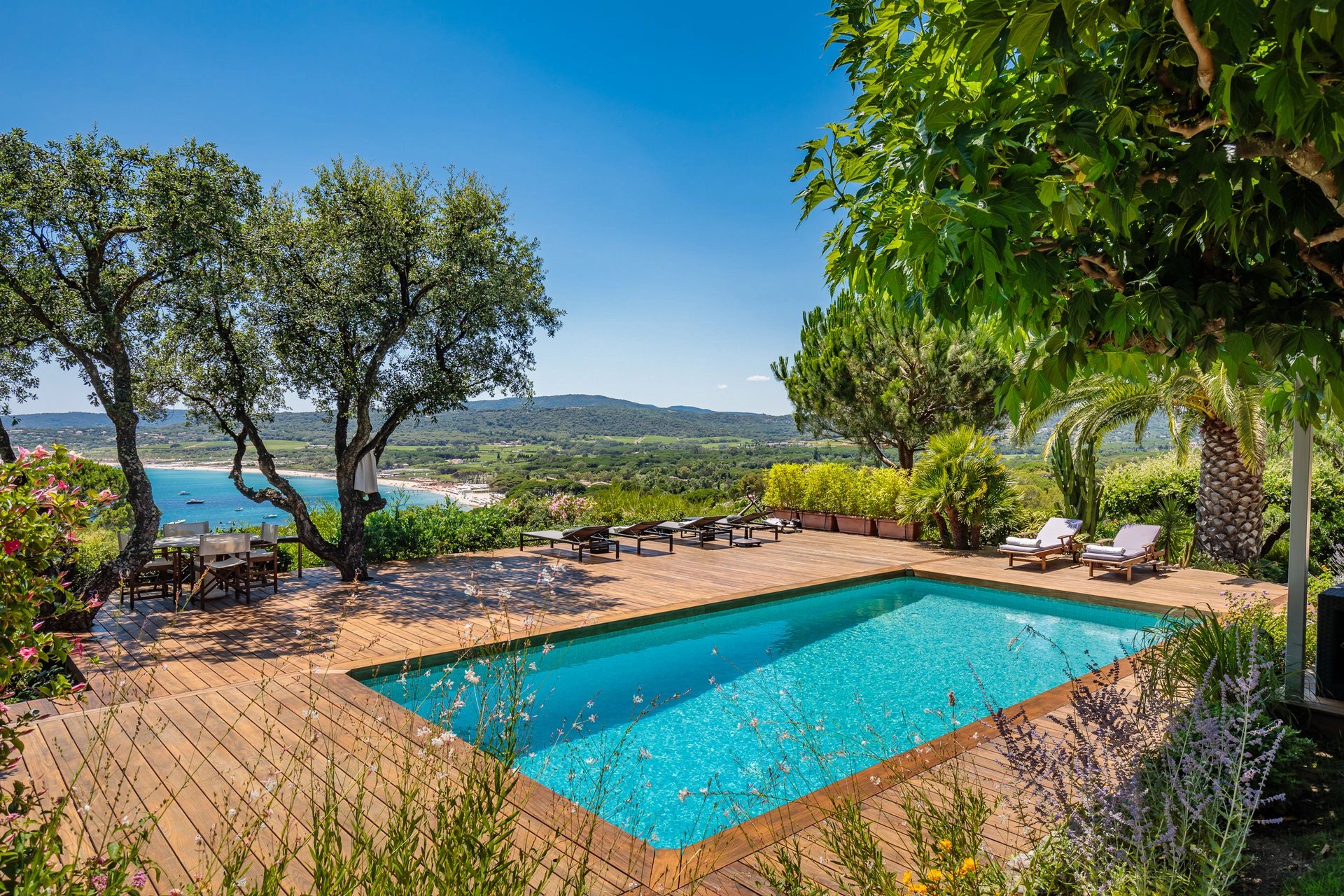 Superb villa completely renovated in 2020 enjoying a magnificent view of the bay of Pampelonne. It consists of a large living room with fireplace, a dining room and an open kitchen overlooking the terrace and pool, and 5 bedrooms with bathroom or shower. The perfect place for your family or friends holidays.