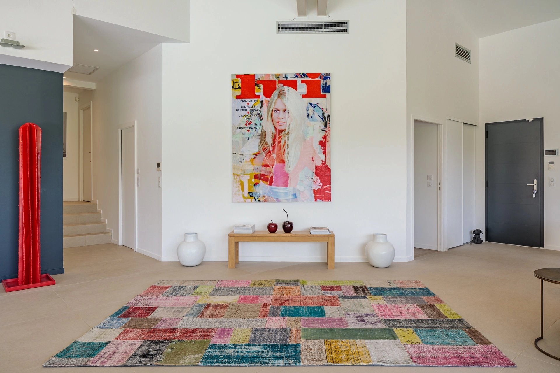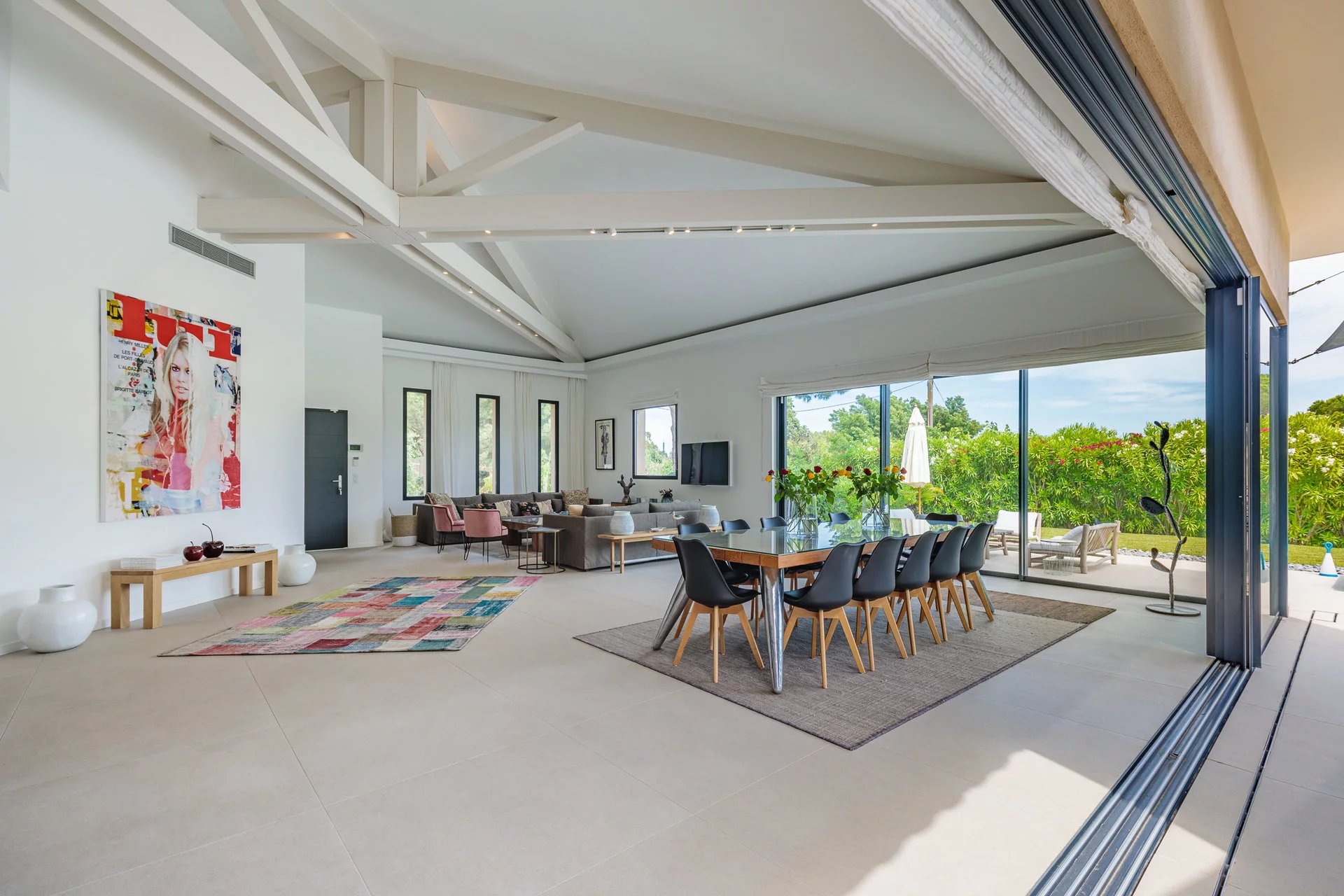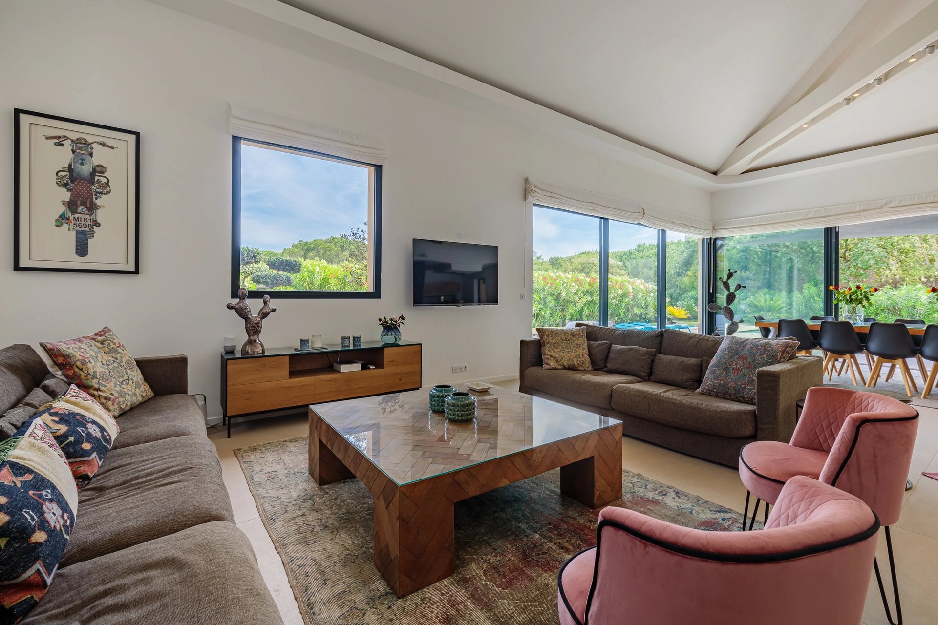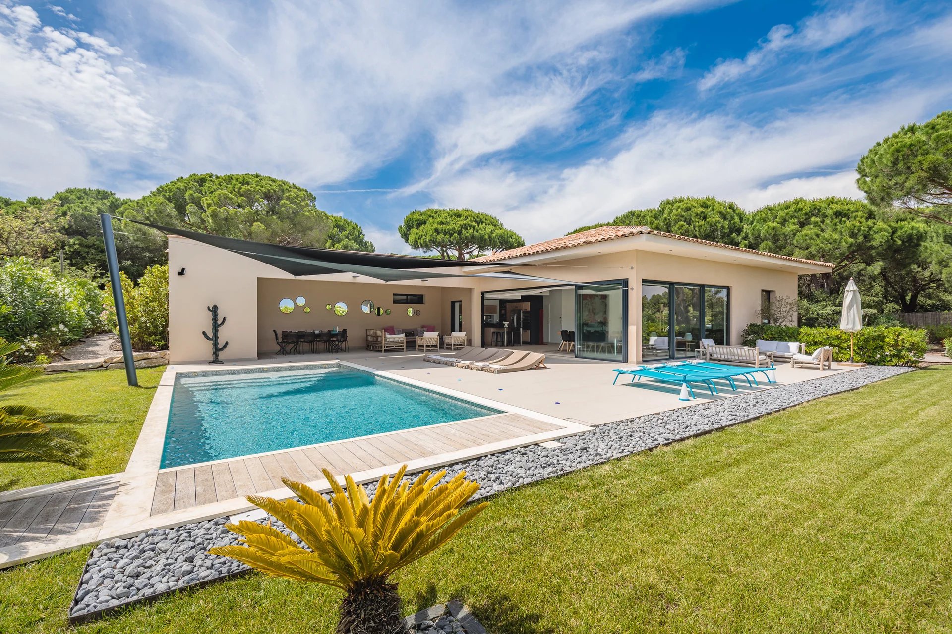 Ideally located close to the beaches of Pampelonne, this recent villa benefits from 5 bedrooms with bath or shower and toilets, a pleasant living area with lounge, dining room and fully equipped kitchen, the all opening on a terrace with heated swimming pool and poolhouse.