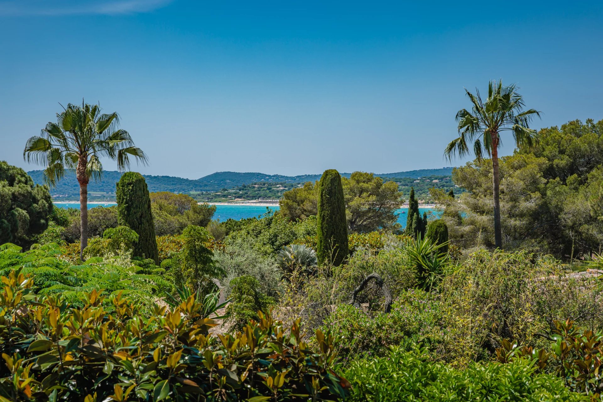 It is composed of bright living rooms opening onto a landscaped garden, 5 en suite bedrooms, a swimming pool and a magnificent sea view over Pampelonne Bay.