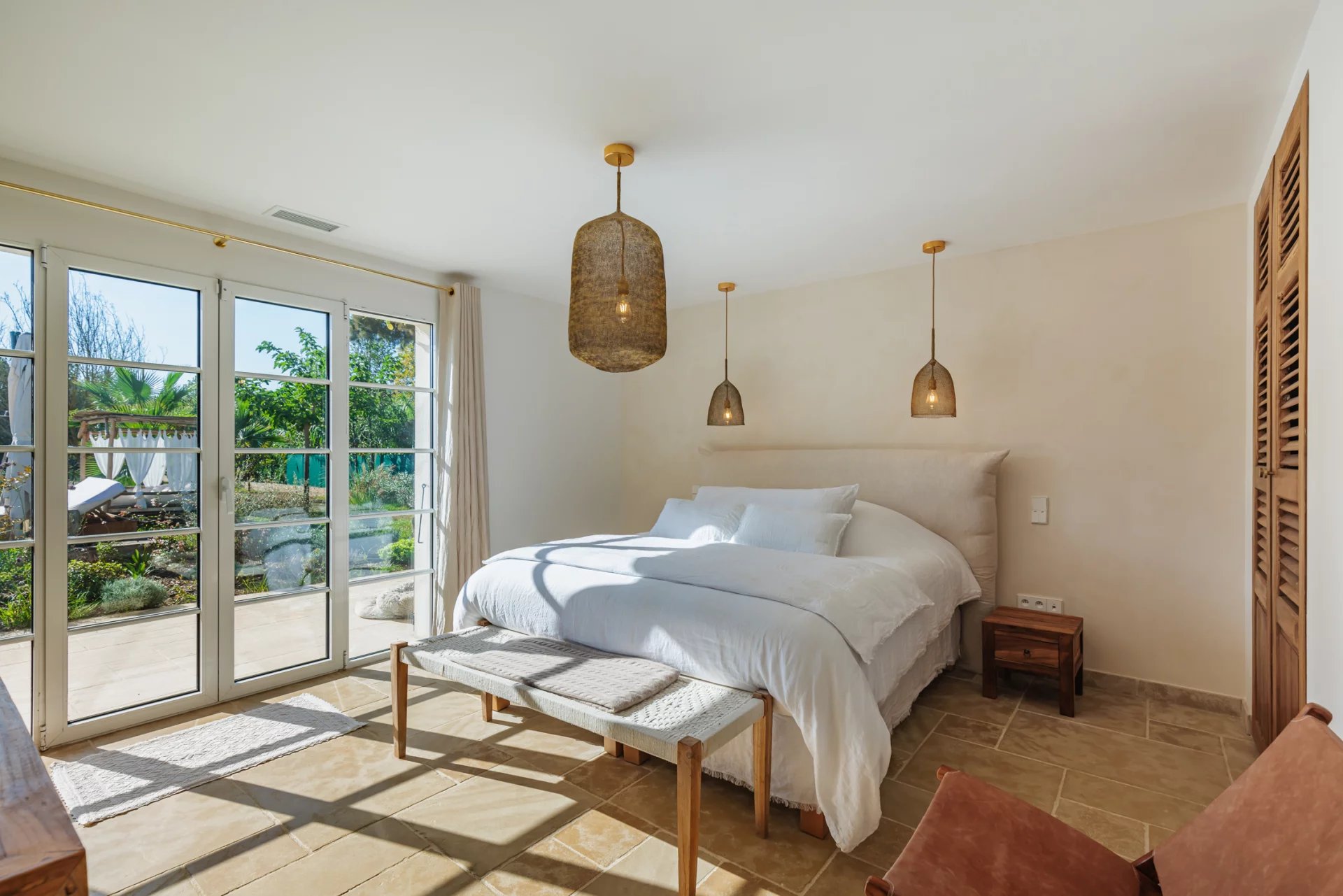 A large swimming pool with a spacious garden and terraces, a gym complete this property.