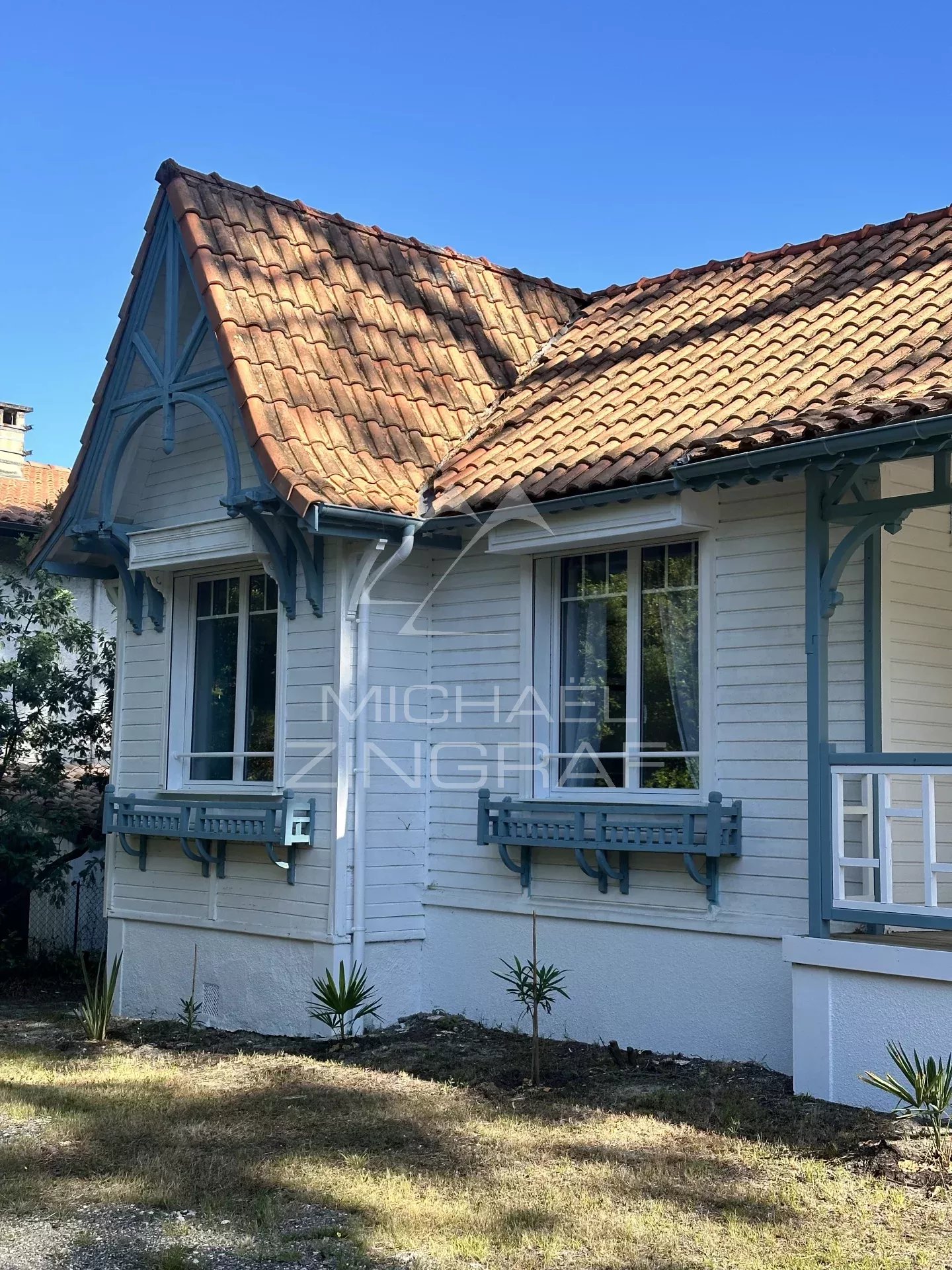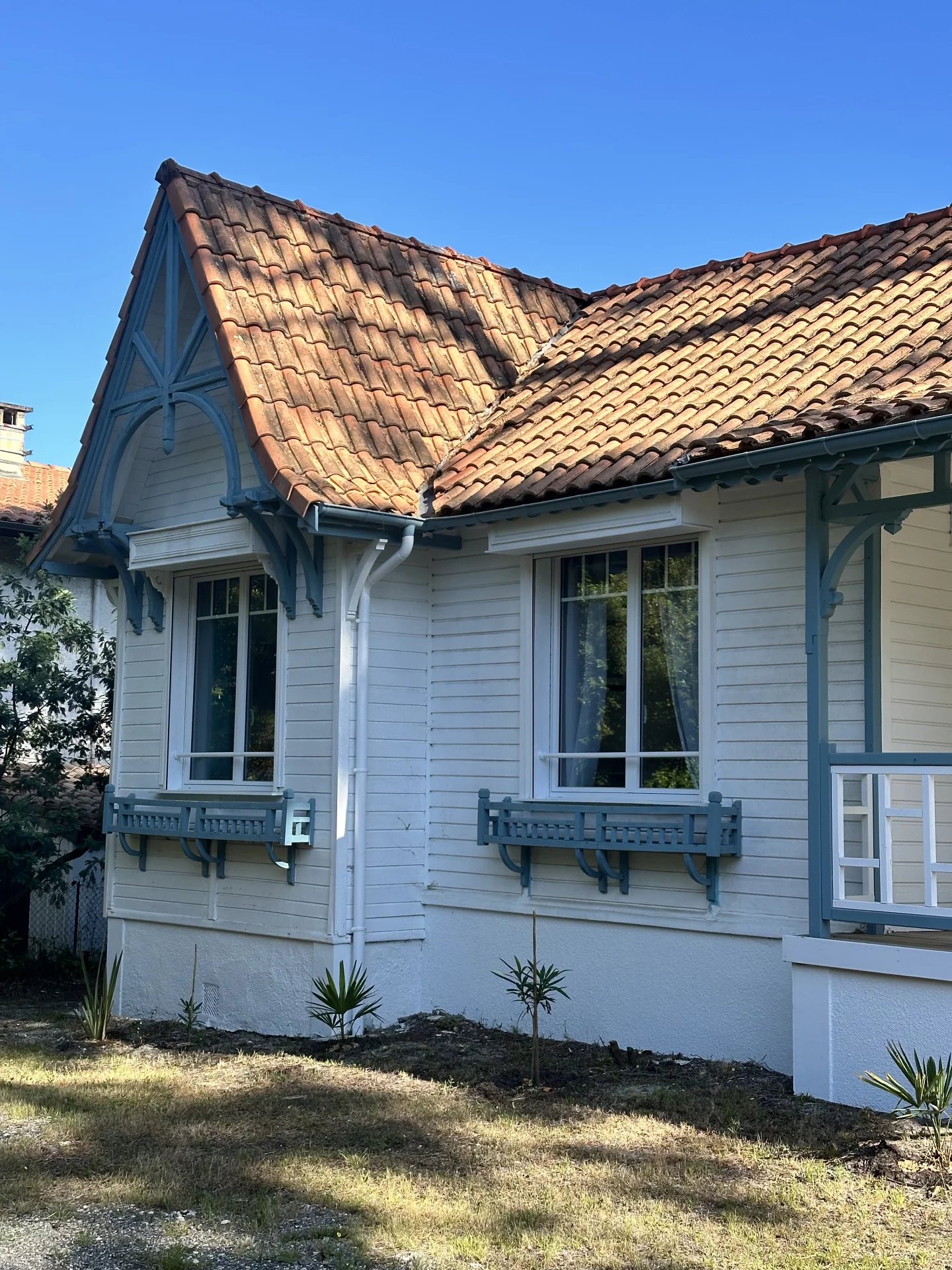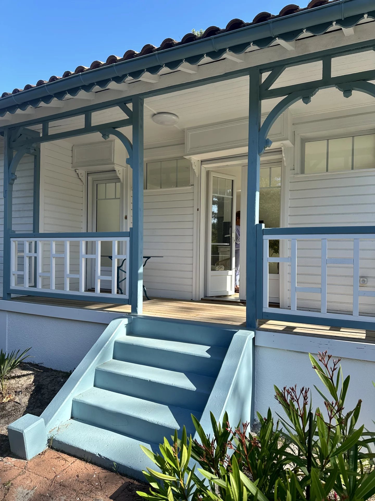 This elevated Arcachon style villa, clad in wood, is ideally located a few minutes walk from the beach and local shops.