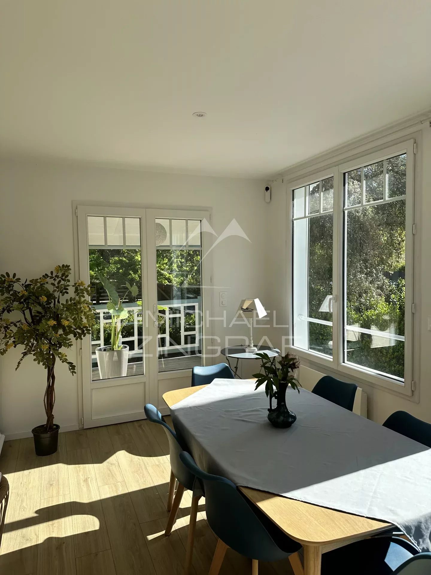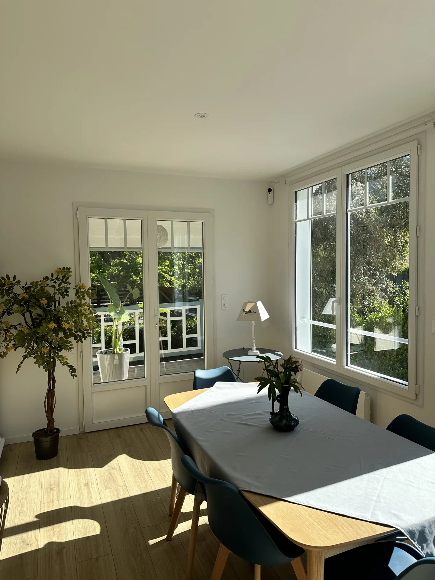 - Three terraces with different exposures, two of which have a dining area.
