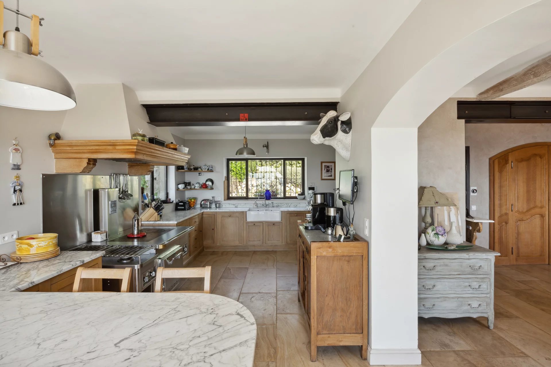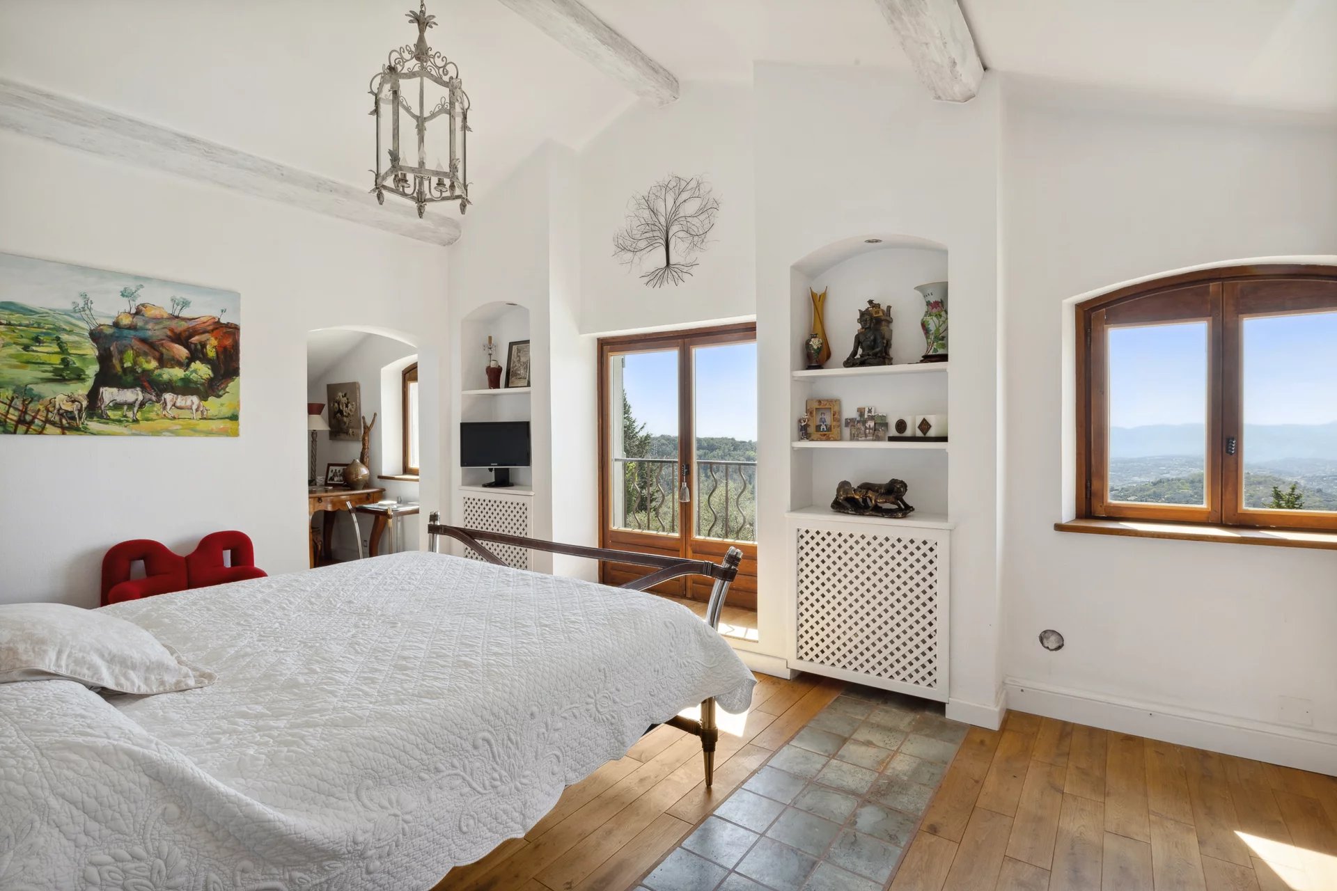 In a dominant position, it offers breathtaking views of the Tuscan-style hills stretching down to the sea. This characterful Provencal house has 5 bedrooms, including a large master bedroom. Food lovers will love the large family kitchen. There are also outbuildings to create the space of your choice. The Mediterranean-style garden of around 2,470 sqm surrounds the house, providing the perfect place to relax with a refreshing pool and plenty of shady spots. A unique living experience just 35 minutes from Nice airport and nearby the shops.