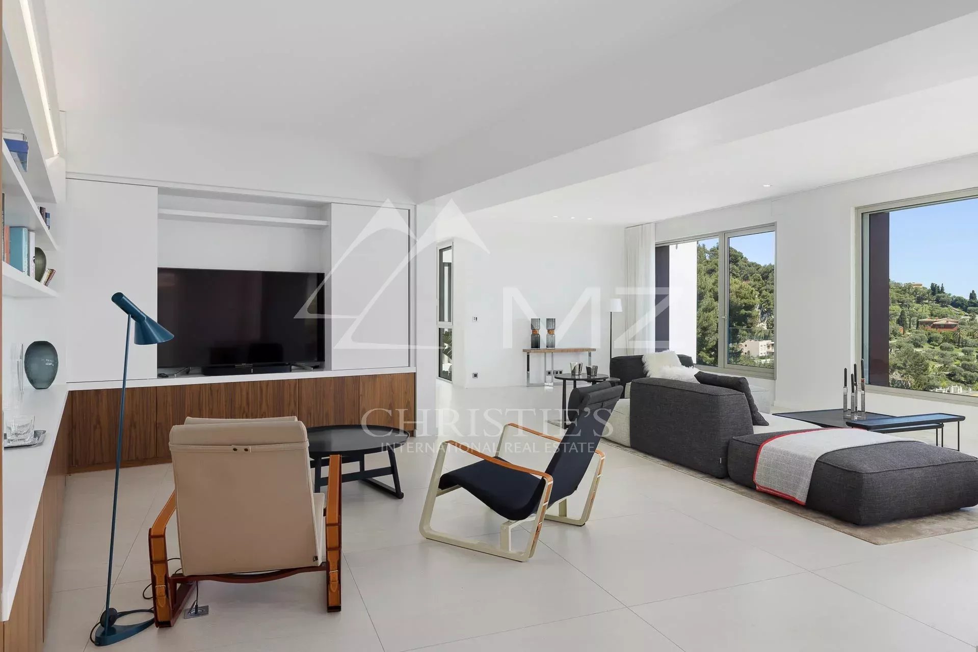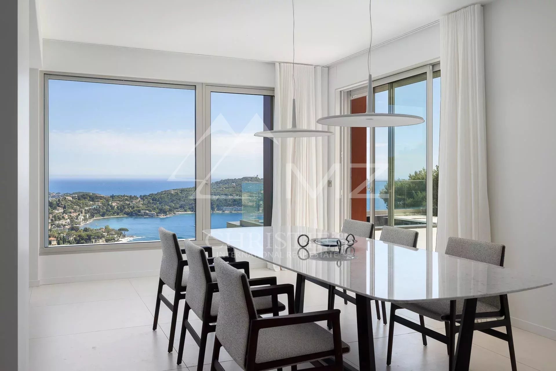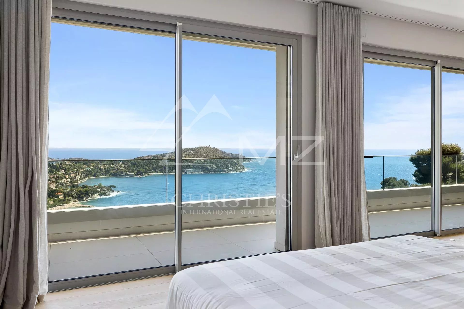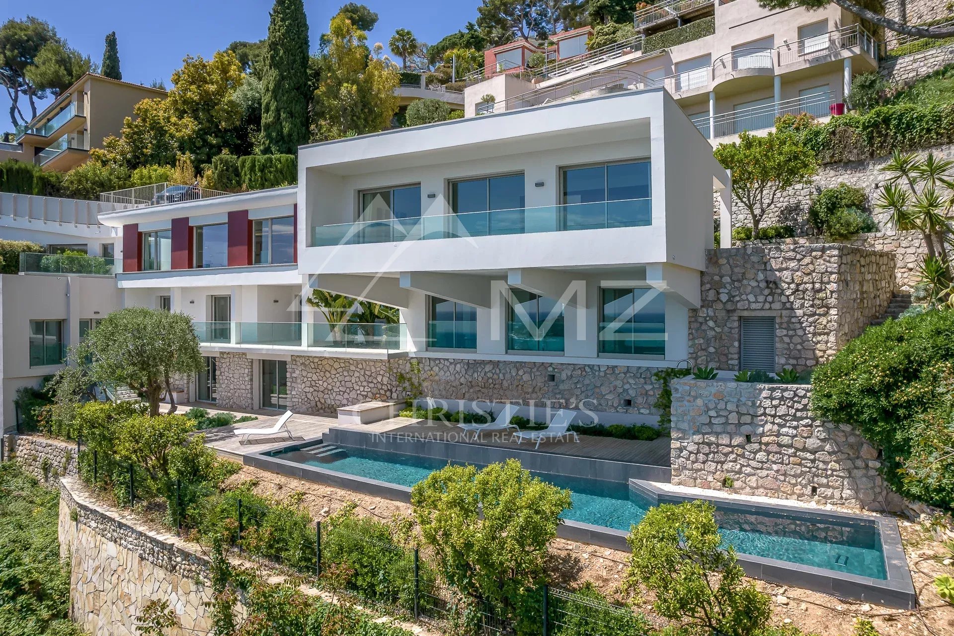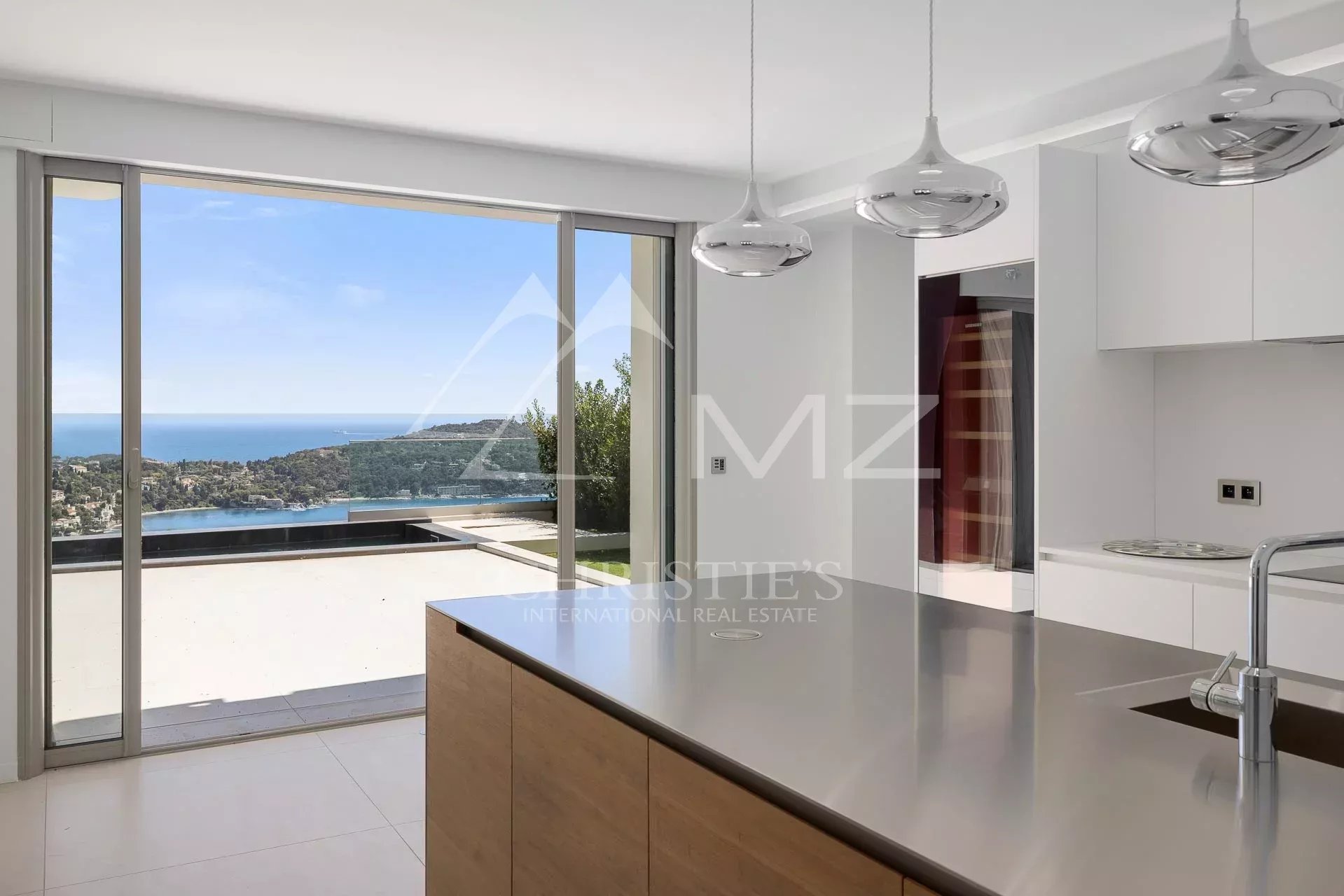 In the heart of a small and intimate private domaine, this large property of approx. 460 sqm has just been renovated by Jean-Paul Gomis, in an elegant contemporary style using high standard equipments. A few minutes from the beaches or convenience stores, the villa offers an amazing panoramic view over Villefranche famous bay and Cap Ferrat. The property volumes are oversized : the large and bright lounge includes the dining room and a modern kitchen with a central island. Five large bedrooms including an incredibly wide Master Suite with walk-in wardrobes. Spa area with Sauna, outdoor Jacuzzi, gym and a relaxation area overlooking the sea. An elevator connects the different floors. Swimming pool. Independent staff or guest apartment. Possibility for a covered car Park.