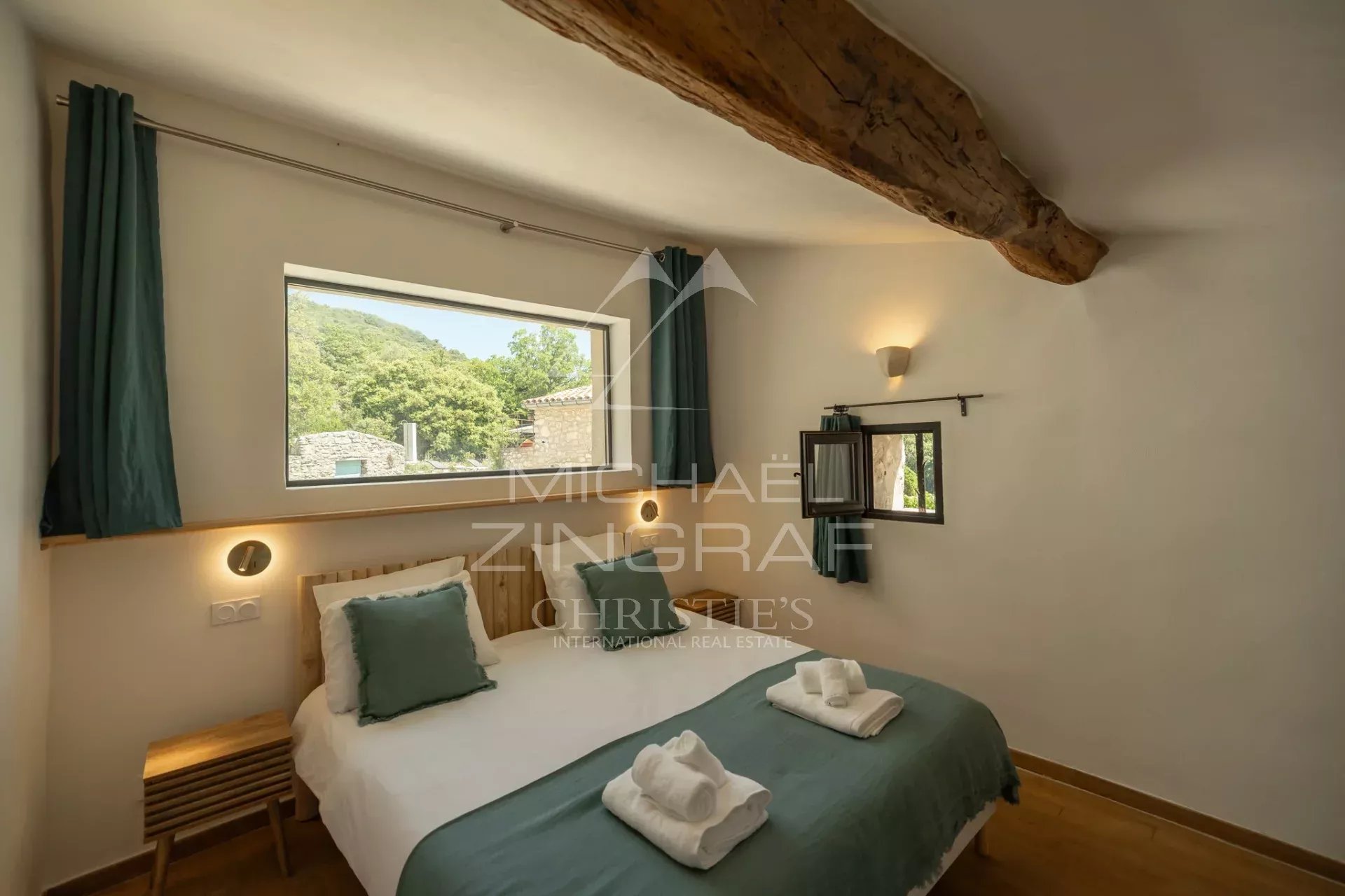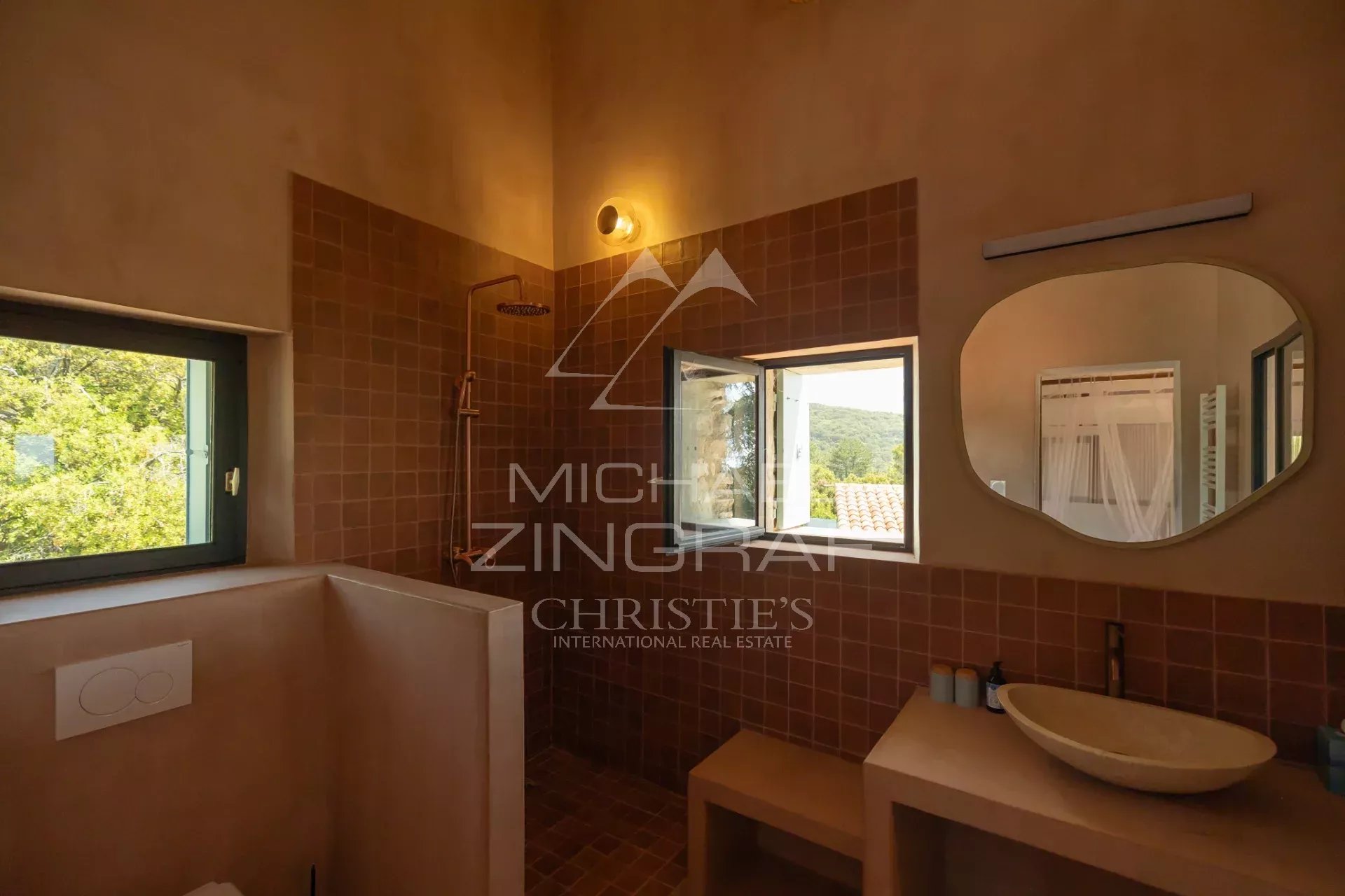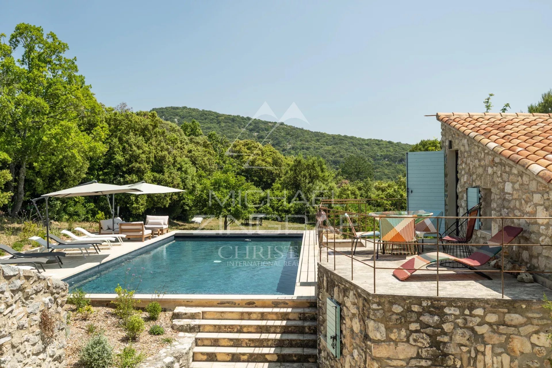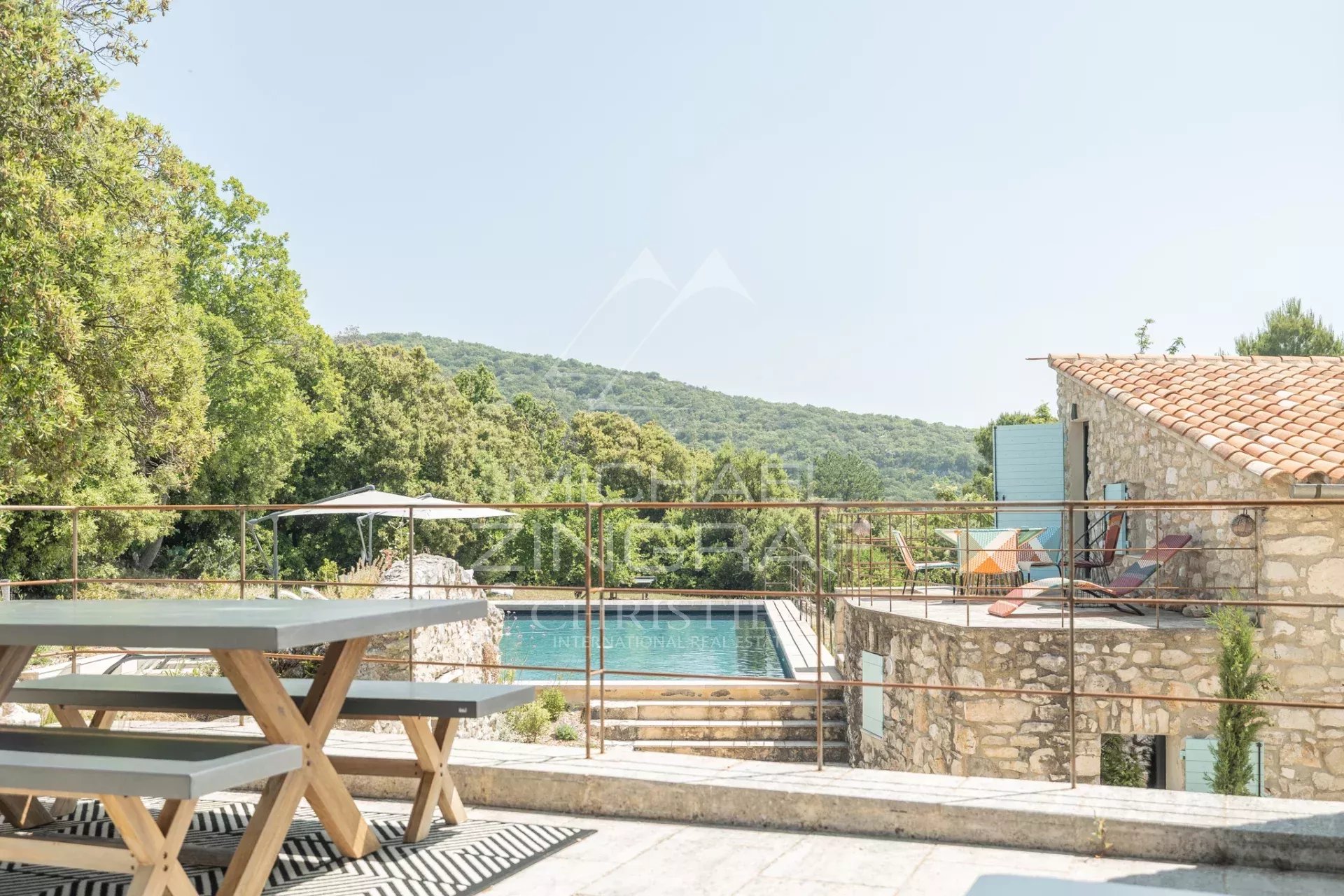 Outside, 4 hectares of unspoilt nature, including 5,000m2 of enclosed garden with a magnificent 16x4m swimming pool, a petanque area and several terraces with exceptional views to share unforgettable moments.