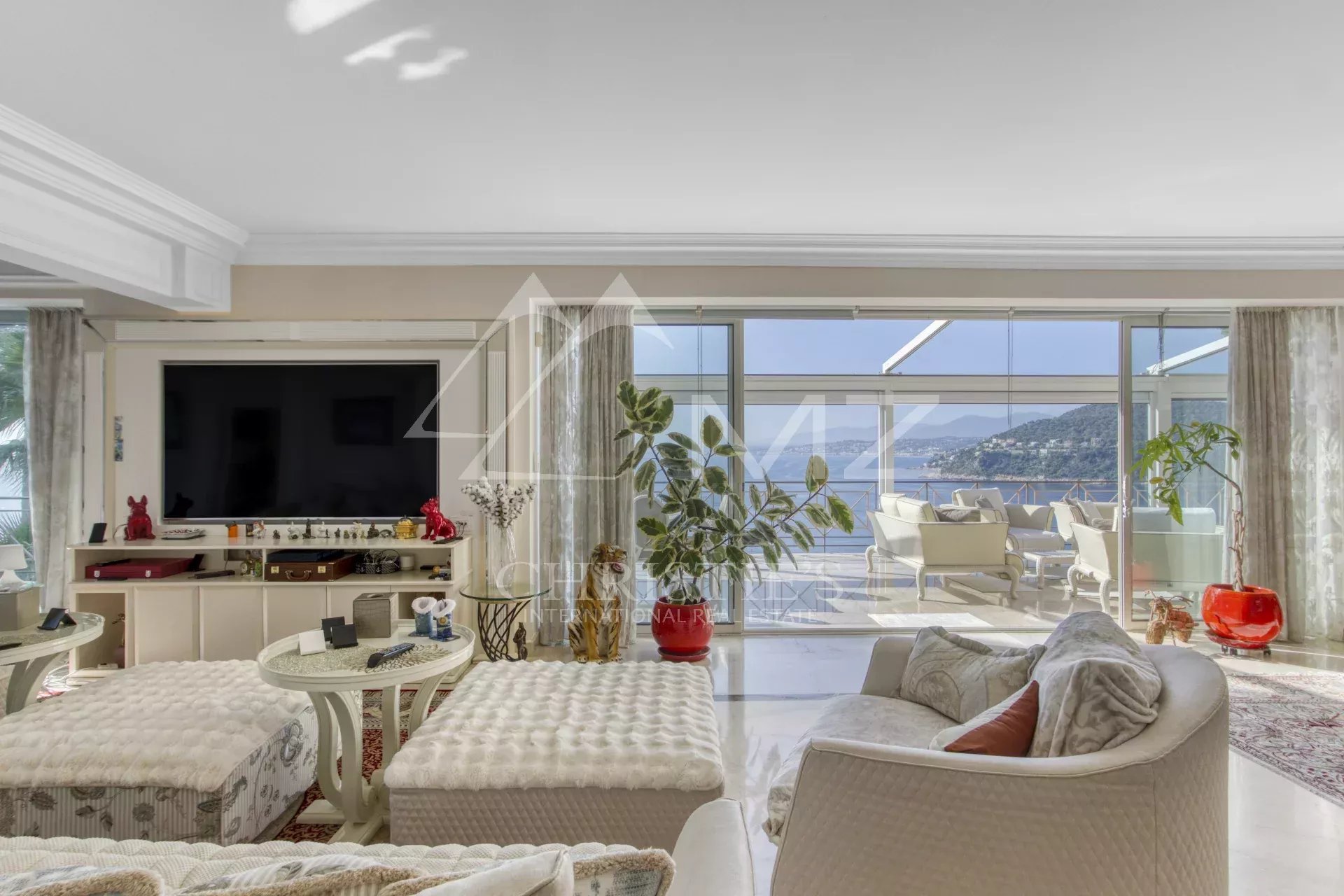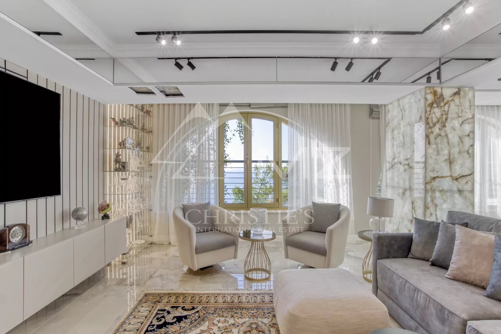 Just steps away from the prestigious Four Seasons Grand Hotel in Saint-Jean-Cap-Ferrat, discover this stunning waterfront villa of nearly 700 sqm, offering an exceptional living experience. The main villa, spread over three levels, opens into a spacious reception room extended by an 80 sqm terrace, equipped with a summer kitchen, wine cellar, and relaxation area with a TV screen. The night area comprises five en-suite bedrooms, including a sumptuous master suite on the top floor for ultimate comfort.