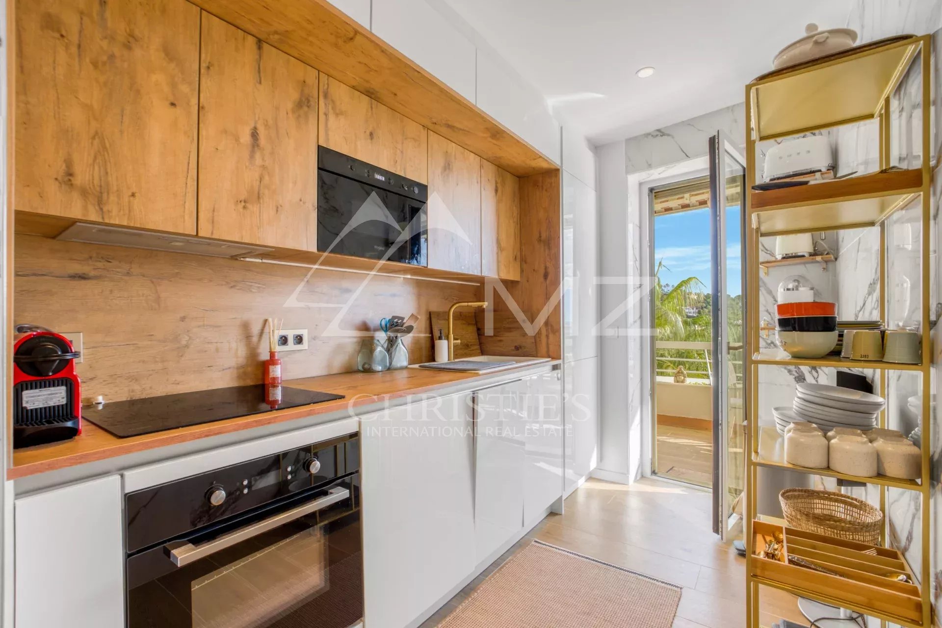 L'appartement se compose d'un séjour, d'une cuisine séparée entièrement aménagée, de deux chambres, d'une salle de douche avec douche à l'italienne et d'un wc. Chaque pièce principale donne sur la spacieuse terrasse de 27m2 surplombant la mer.