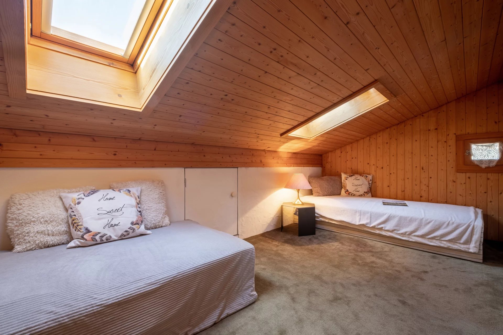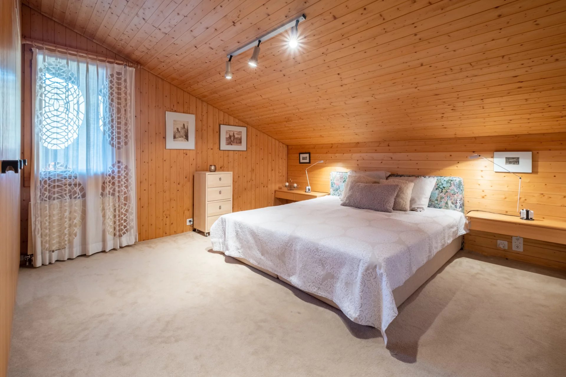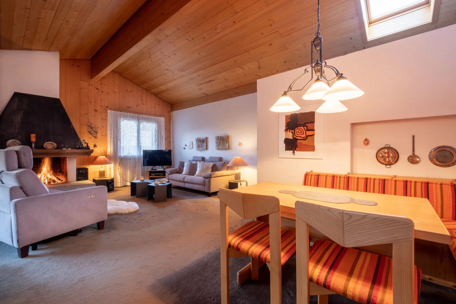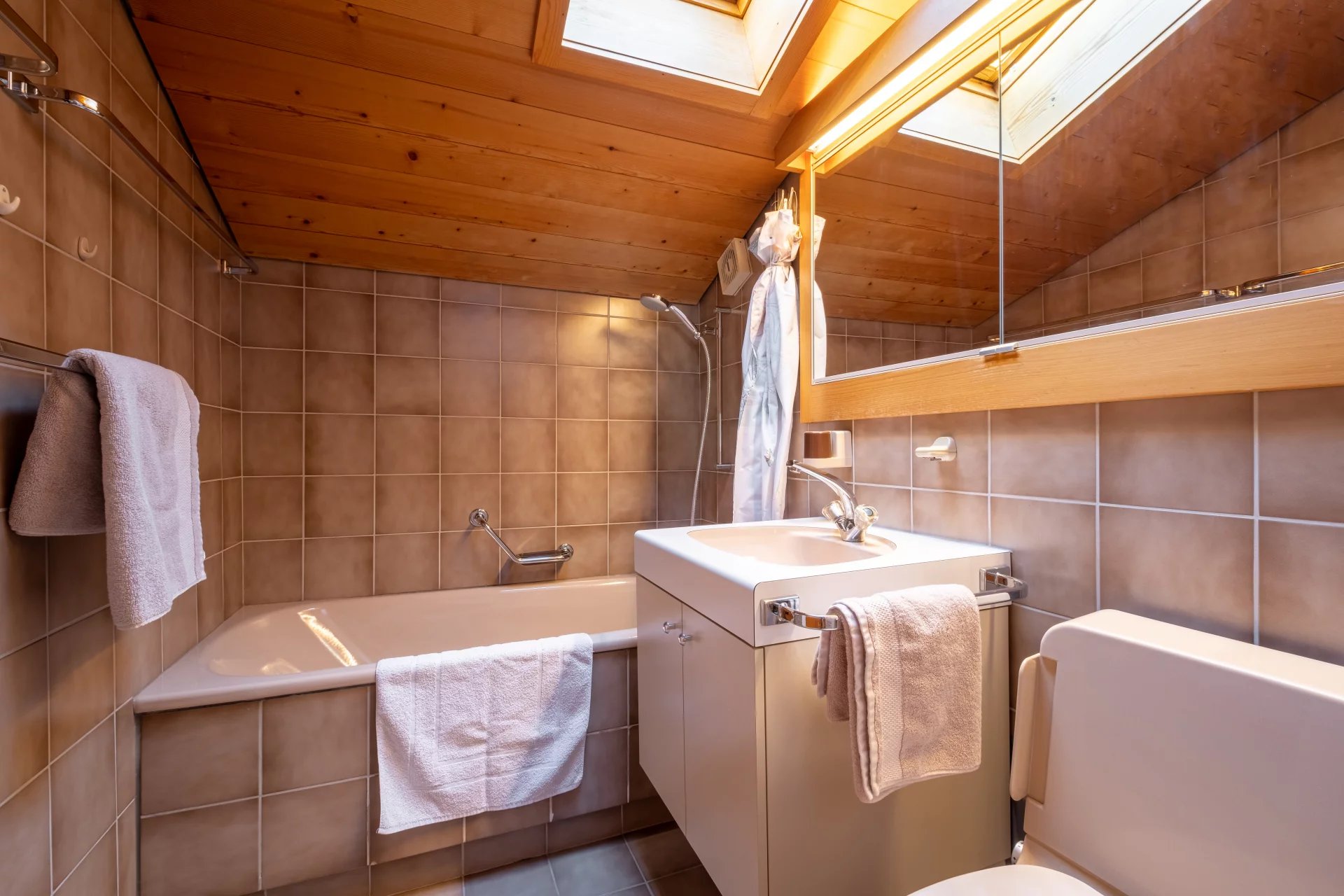 Charmant appartement de 2.5 pièces au 3ème étage situé dans le centre de Gstaad. Appartement au dernier étage composé d'une chambre à coucher principale, d'une chambre d'enfant avec deux lits jumeaux (plafond plus bas), d'un salon spacieux avec grande cheminée et accès au balcon orienté ouest. Une cuisine entièrement équipée, une salle de bain et une place de parking souterrain complètent la propriété.