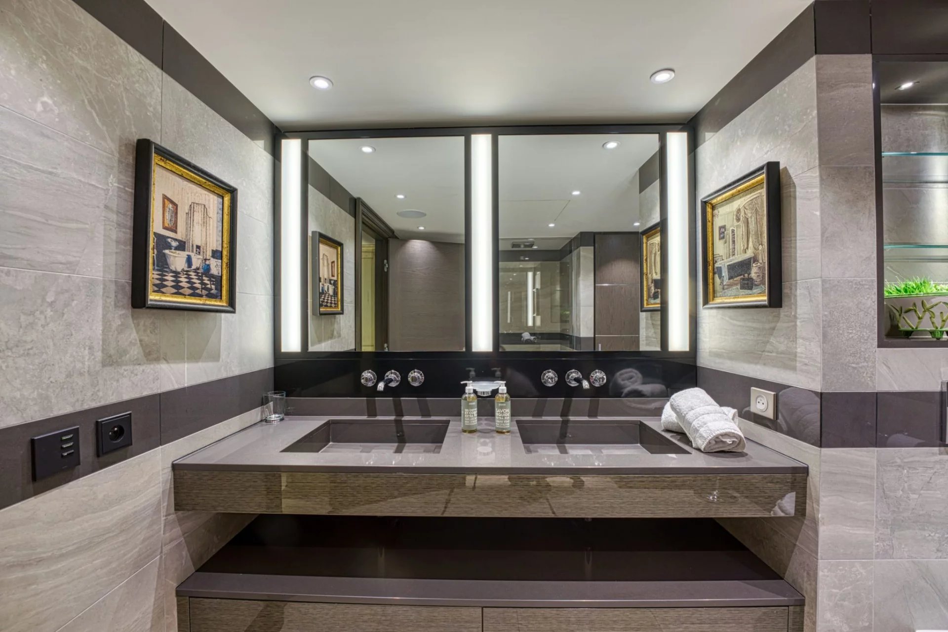 La résidence sécurisée offre un cadre de vie exclusif avec des équipements de grand standing : SPA (hammam, sauna, salle de glace), piscines intérieure et extérieure, salle de fitness, tennis et jardins paysagers.