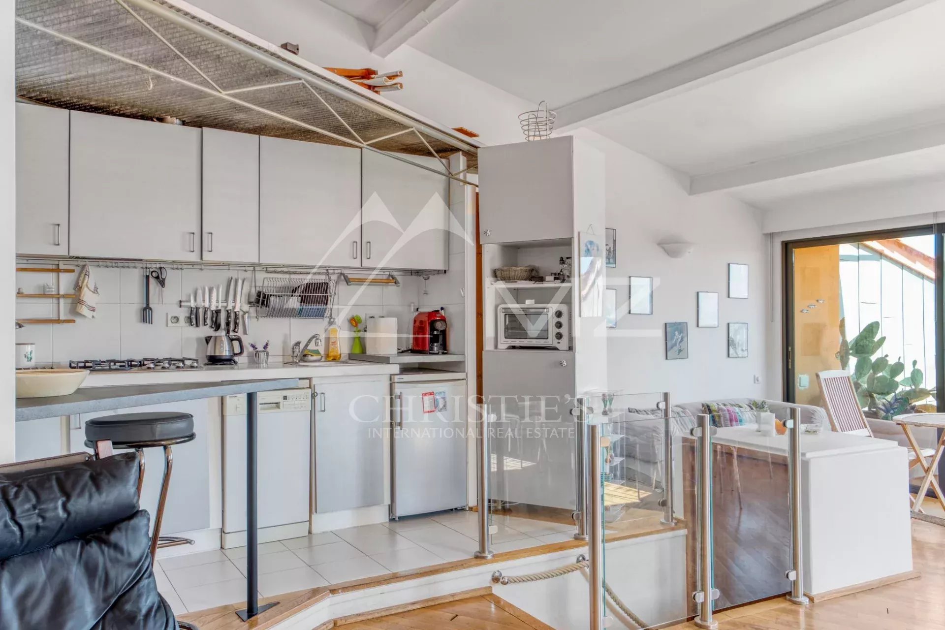Idéalement situé dans la vieille ville de Villefranche-sur-mer, à deux pas de la mer, ravissant grand studio dernier étage, comprenant un salon ouvrant sur balcon vue mer avec une cuisine ouverte, coin chambre avec une salle de douche. Possibilité de le transformer en deux pièces. Idéal pied à terre ou investissement locatif.