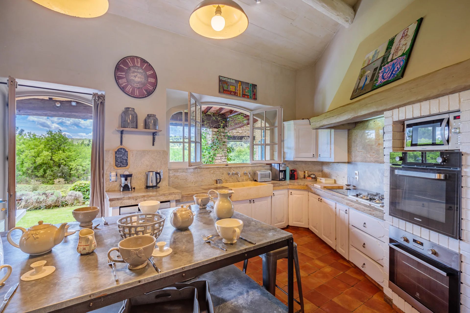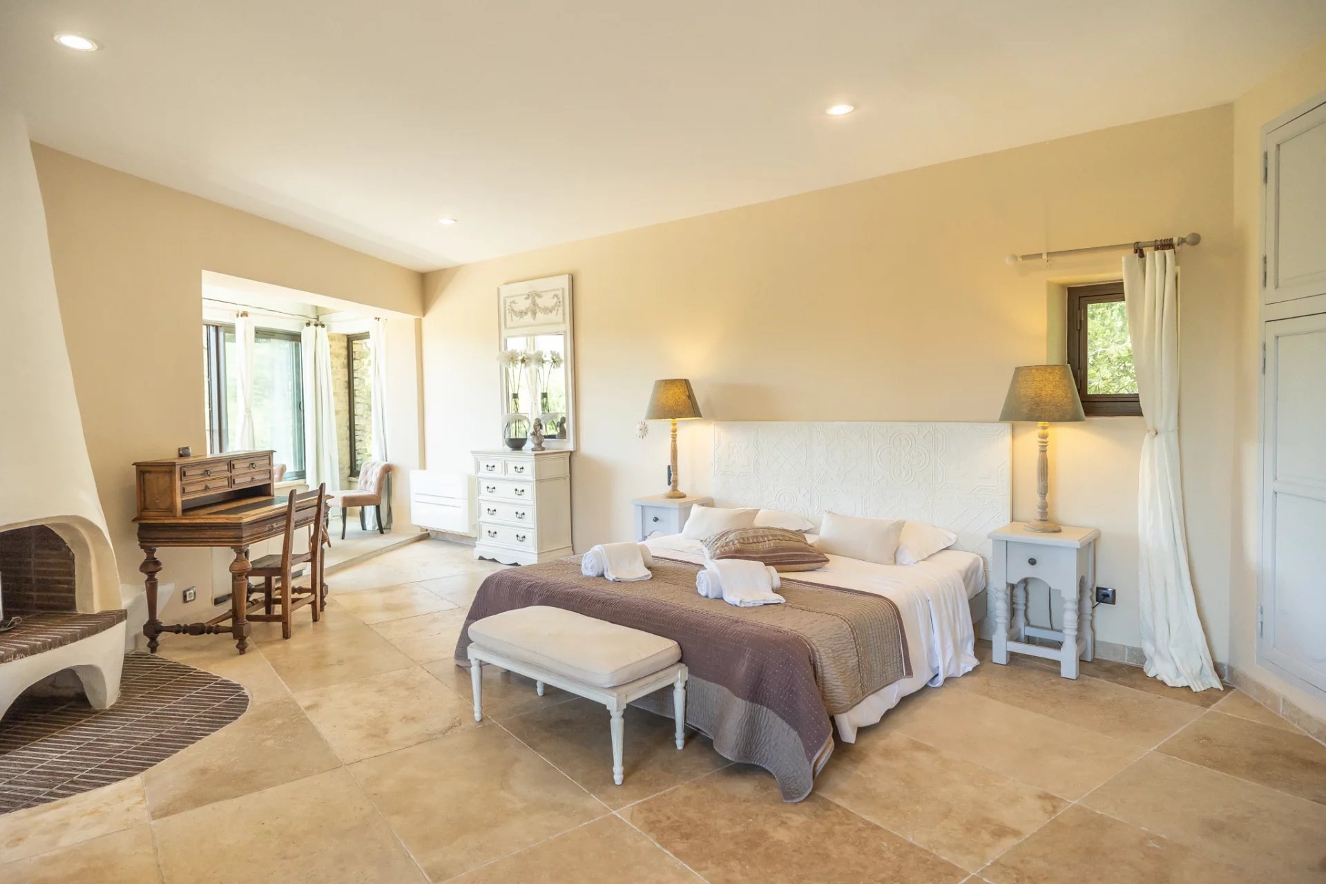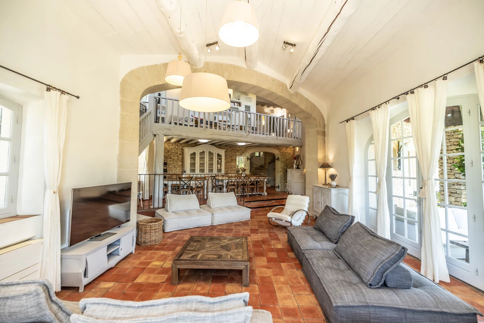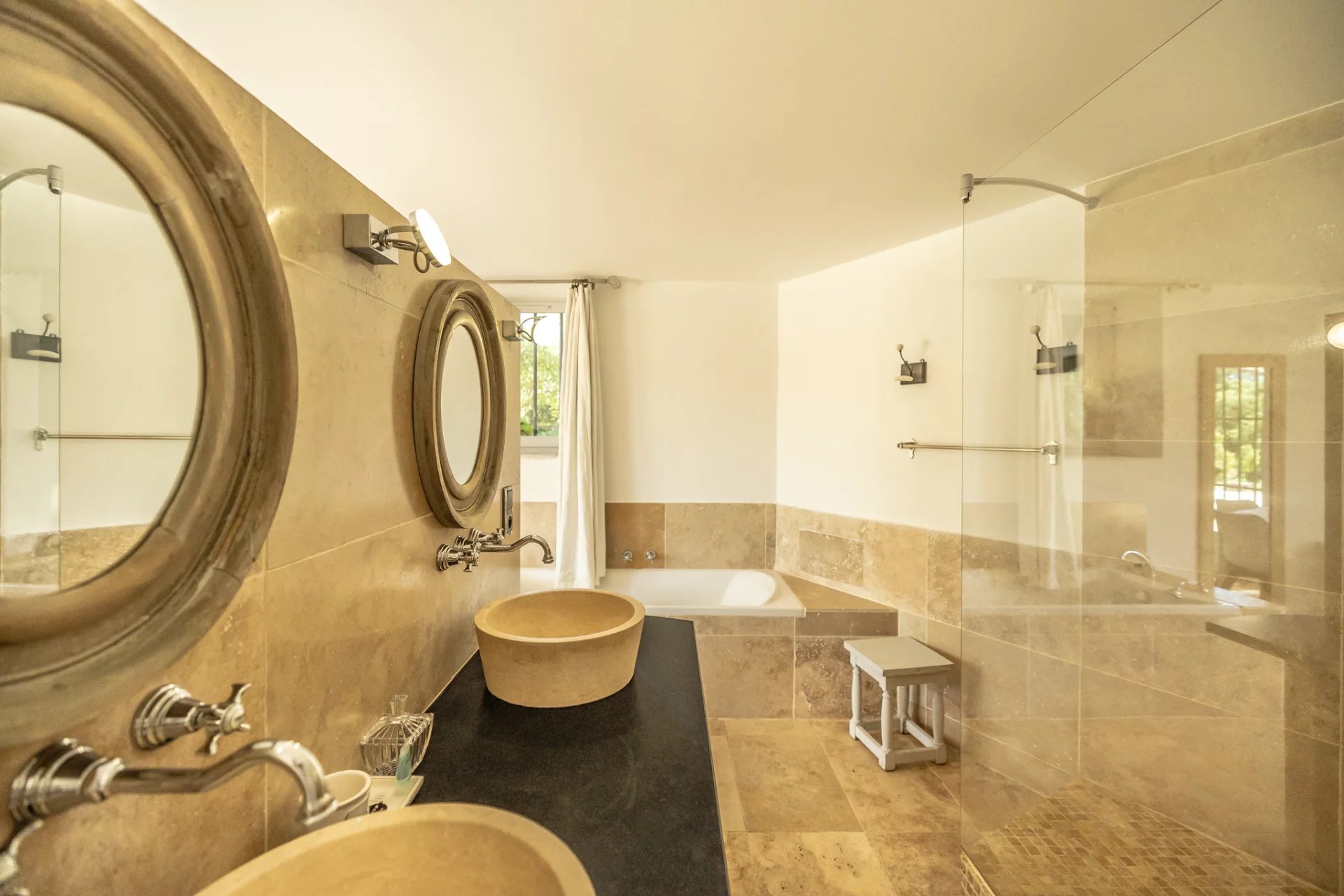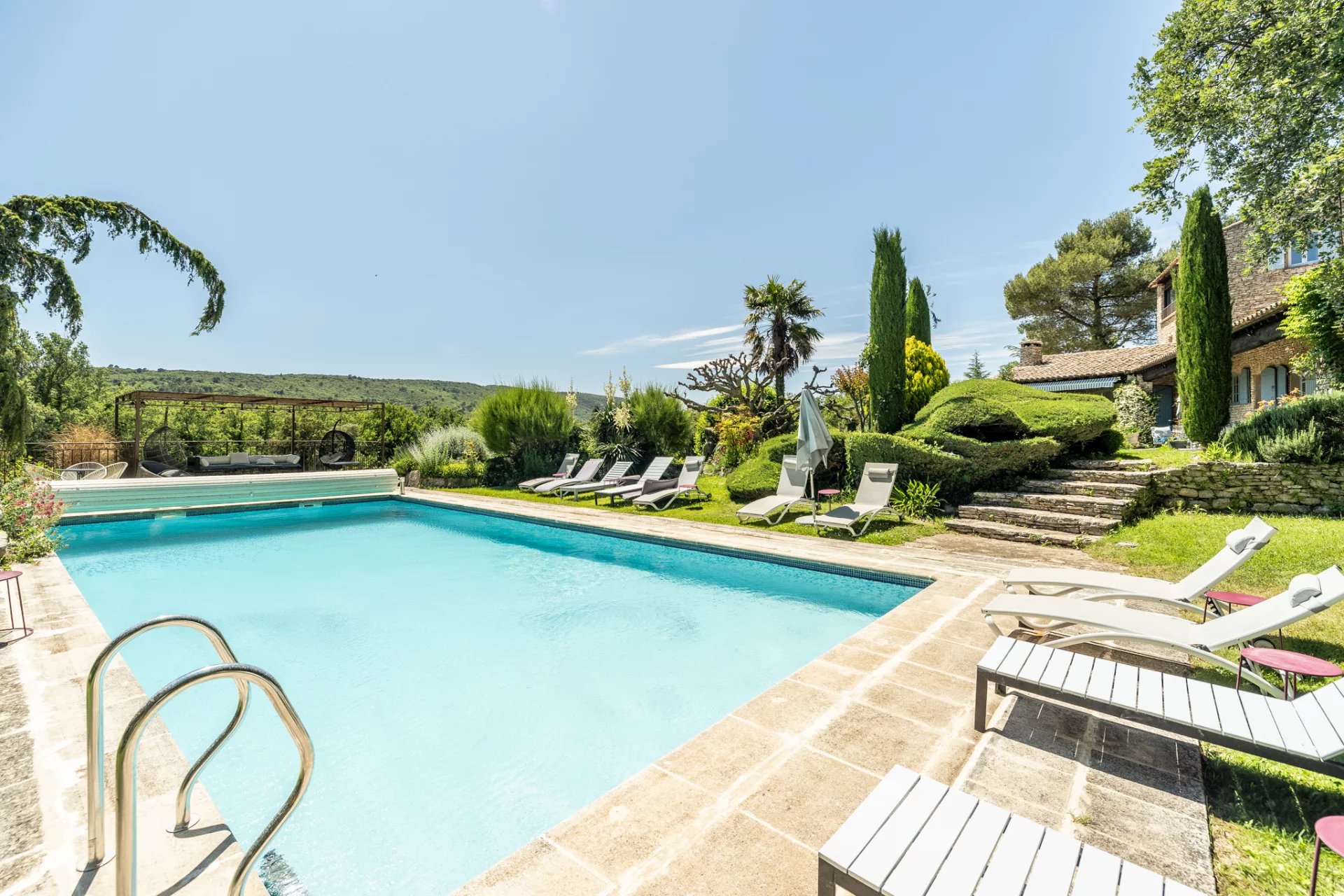 Ce splendide mas provençal, tout proche du beau village perché de Bonnieux, est une véritable invitation aux vacances et à la détente dans un cadre de verdure enchanteur de trois hectares, dont une partie est superbement paysagée... Point de départ de belles balades dans la forêt des Cèdres, il offre une vue dégagée sur les Monts du Luberon. La maison, entièrement climatisée, a été rénovée avec raffinement et présente de belles pièces de vie ainsi que 8 chambres avec leurs salles de bains et TV. Équipements fitness, boulodrome, terrain de foot ou de hand, panier de basket, tyrolienne, baby-foot, sauna finlandais, jacuzzi extérieur en pleine nature, face à une piscine chauffée de 12 x 6 m.