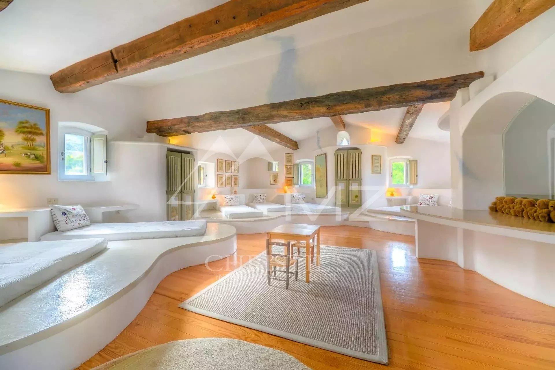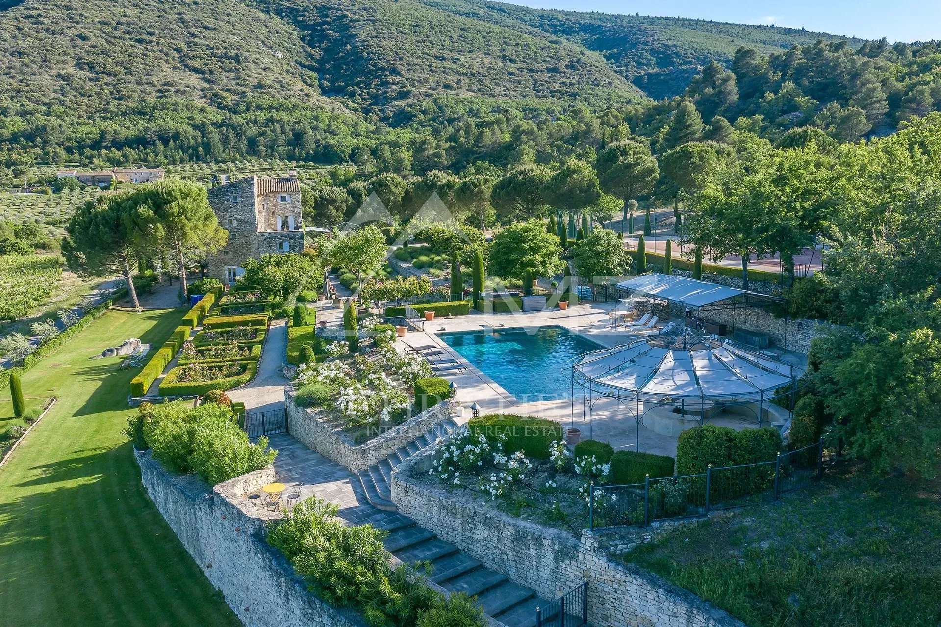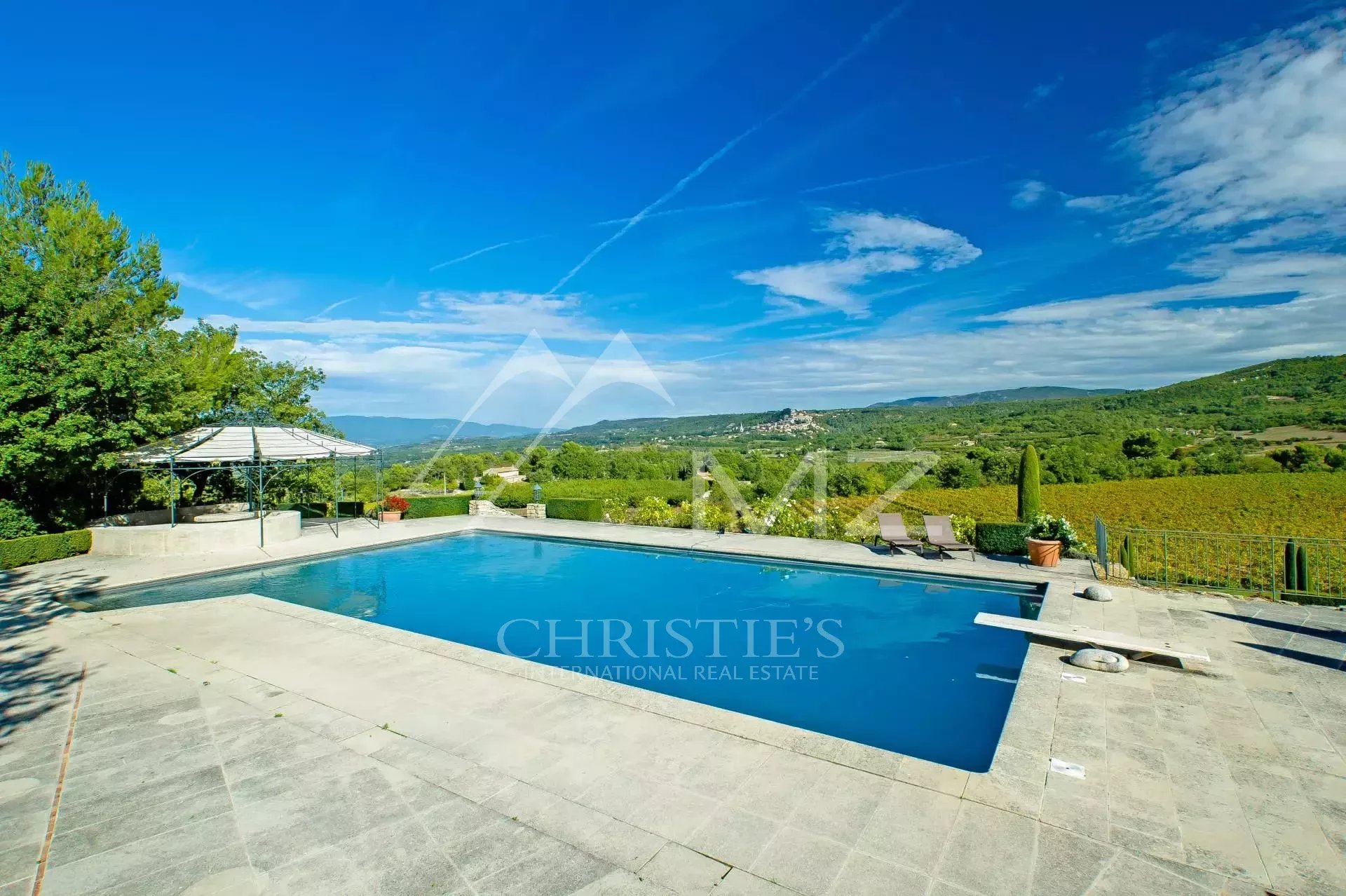 Ce magnifique Mas rénové situé à quelques minutes en voiture seulement des villages perchés de Bonnieux et Ménerbes, vous offre une vue exceptionnelle sur la vallée du Luberon. La propriété est entourée de huit hectares de vignes, de cerisiers, d'oliviers et de lavandins et propose un incroyable jardin paysager, ainsi que plusieurs terrasses, un court de tennis et une grande piscine pour des moments de détente en toute quiétude. L'intérieur, très confortable et entièrement climatisé, propose une décoration raffinée et prestations de qualité de type hôtelier (service quotidien). Les 3 chambres doubles et le vaste dortoir peuvent accueillir jusqu'à trois couples et huit enfants, la borie aménagée en annexe peut accueillir deux personnes supplémentaire, pour une expérience inoubliable au rythme de la Provence...