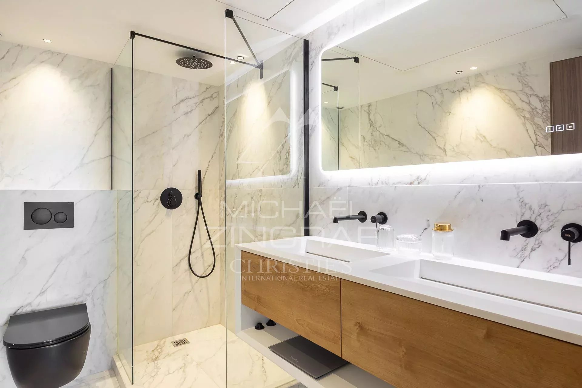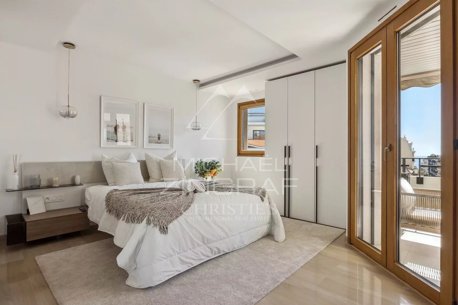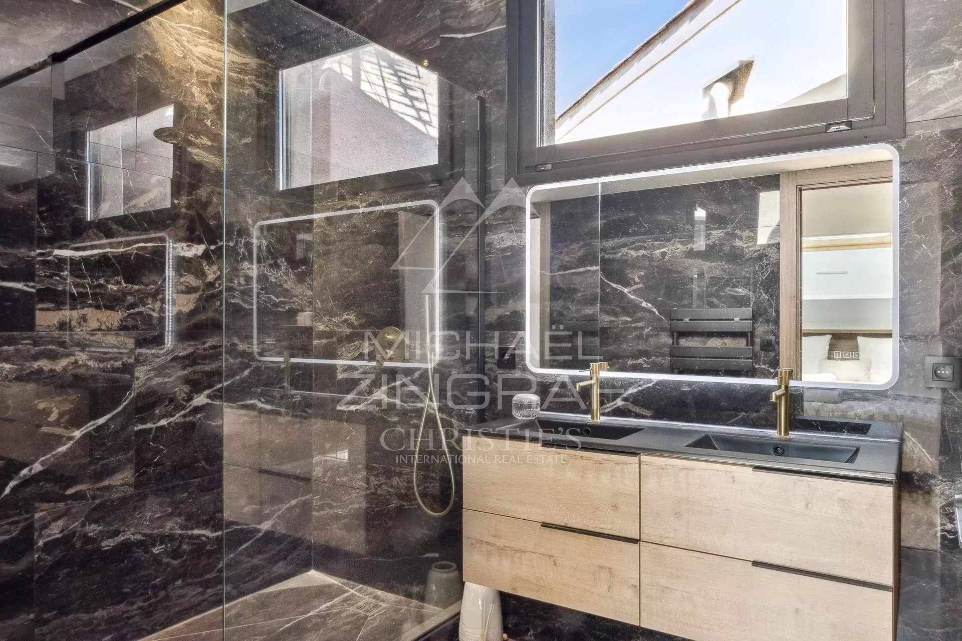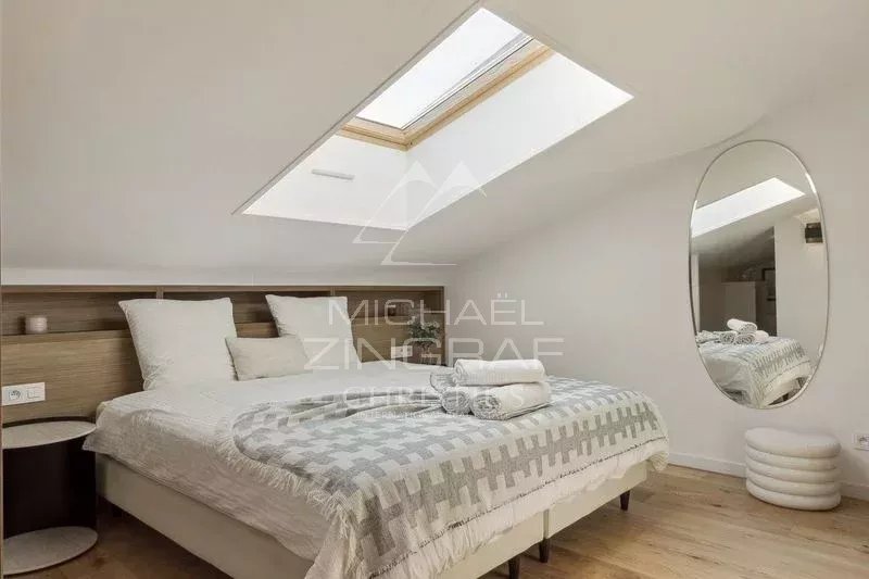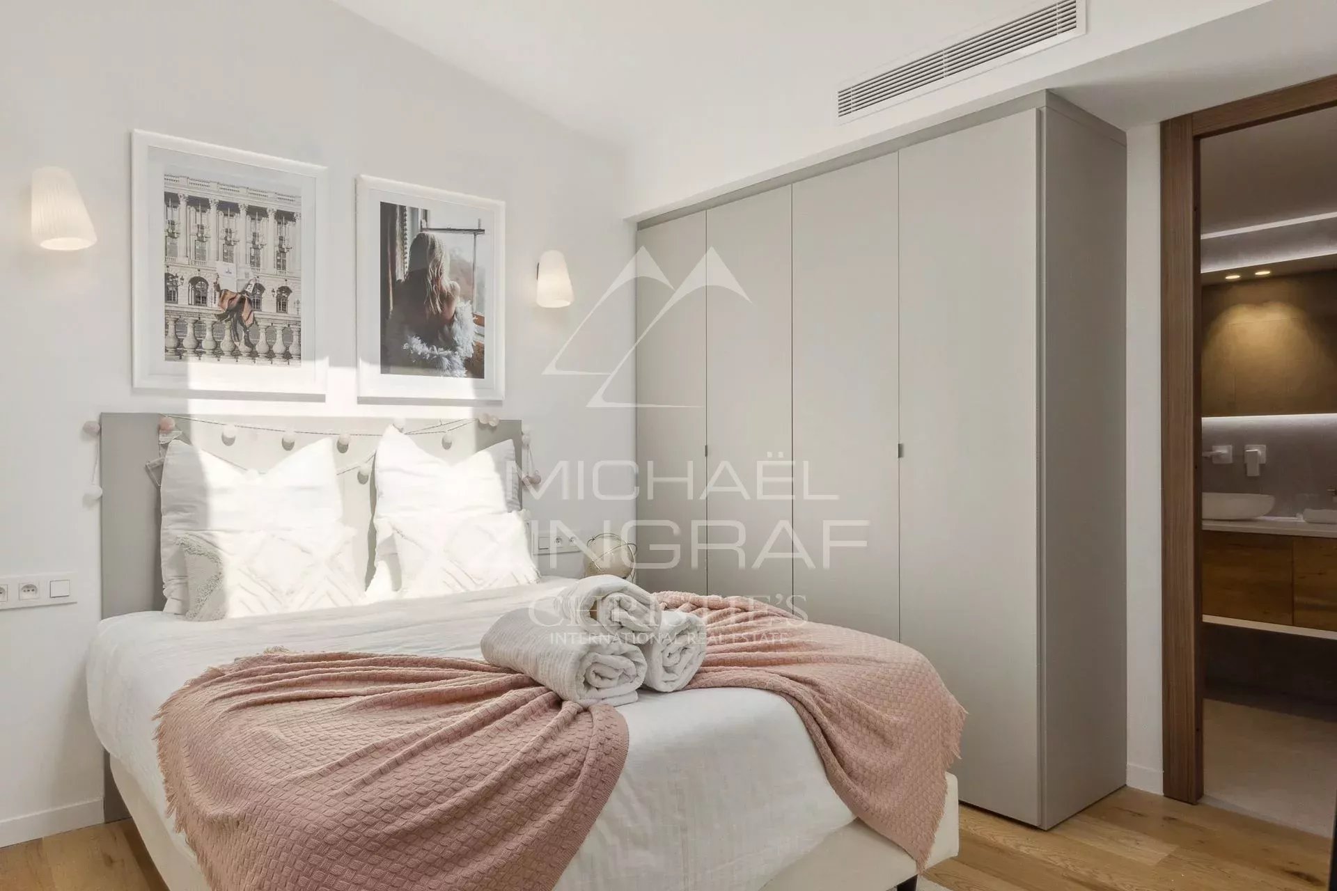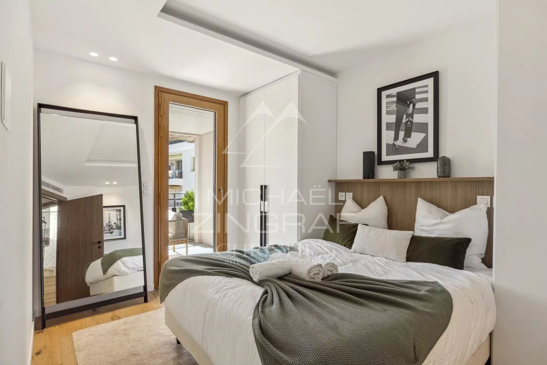 Idéalement situé proche de la Croisette, très bel appartement d'environ 134m², comprenant: une spacieuse entrée, séjour avec cuisine entièrement équipée, salle à manger, 4 chambres en suite dont deux en duplex. Coup de cœur assuré.