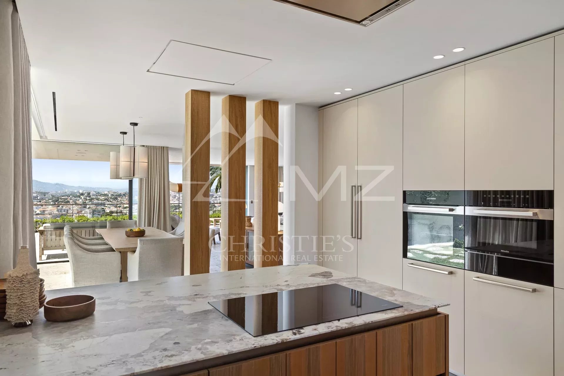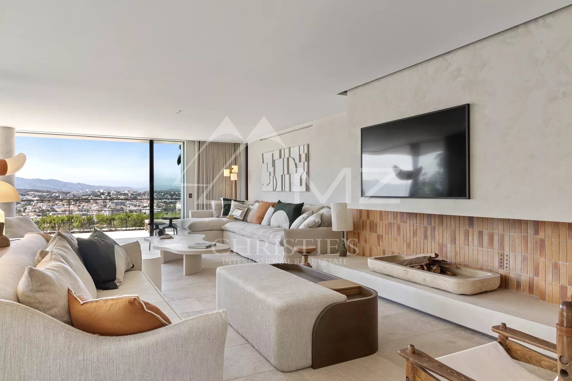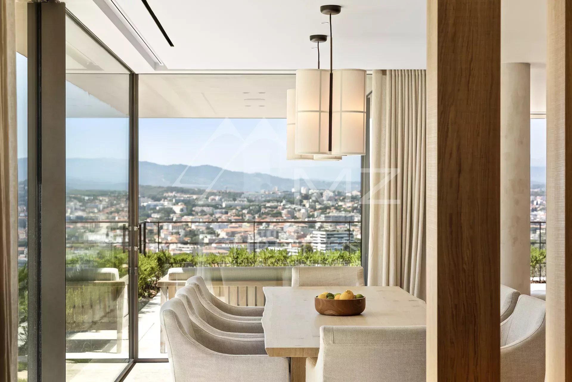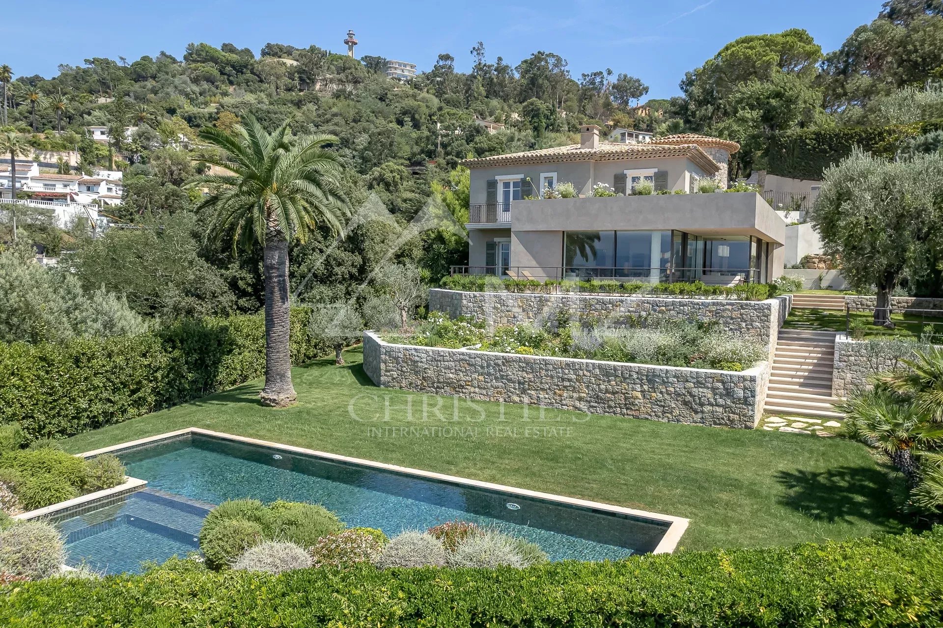 Rare, à quelques minutes du centre ville de Cannes, au cœur d'un domaine fermé, en position dominante, exceptionnelle propriété contemporaine neuve à la décoration raffinée, de 411m² environ. Offrant une vue mer panoramique sur la rade de Cannes et l'Estérel, 5 chambres en suite, salon, salle à manger, cuisine, salle de sport. Terrain avec piscine entièrement paysager d'essences Méditerranéennes.