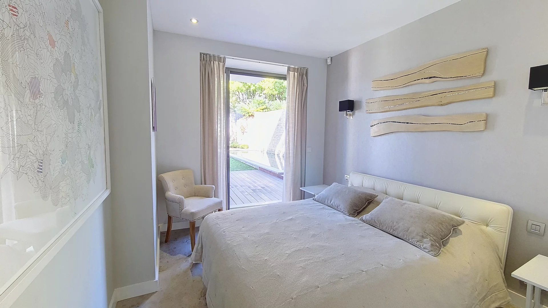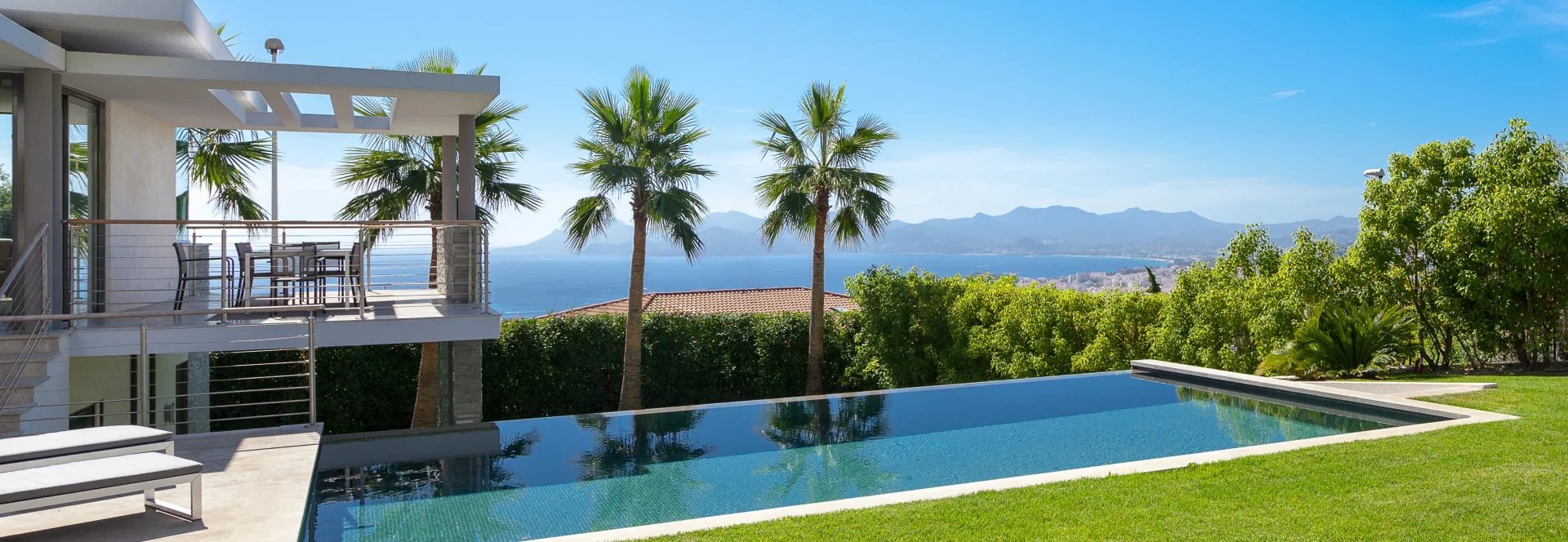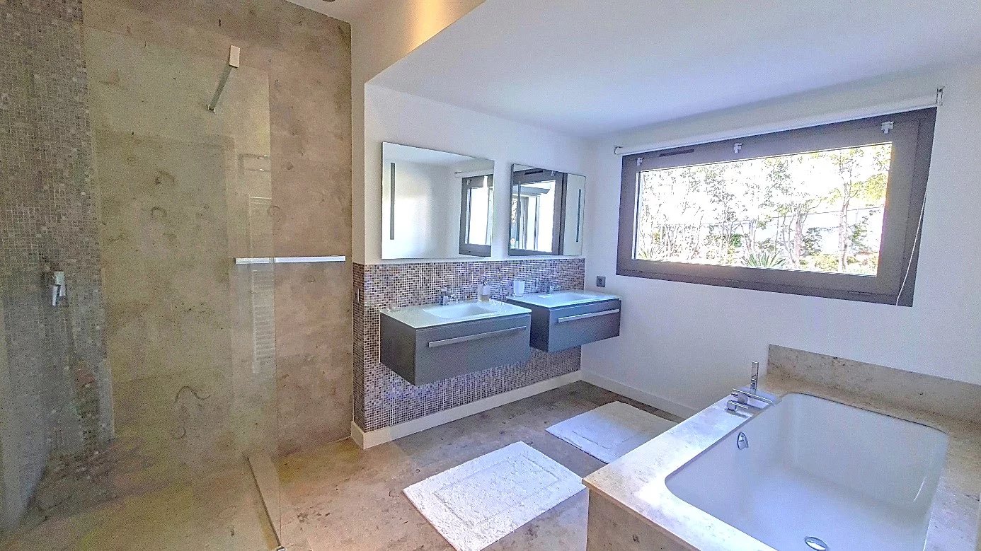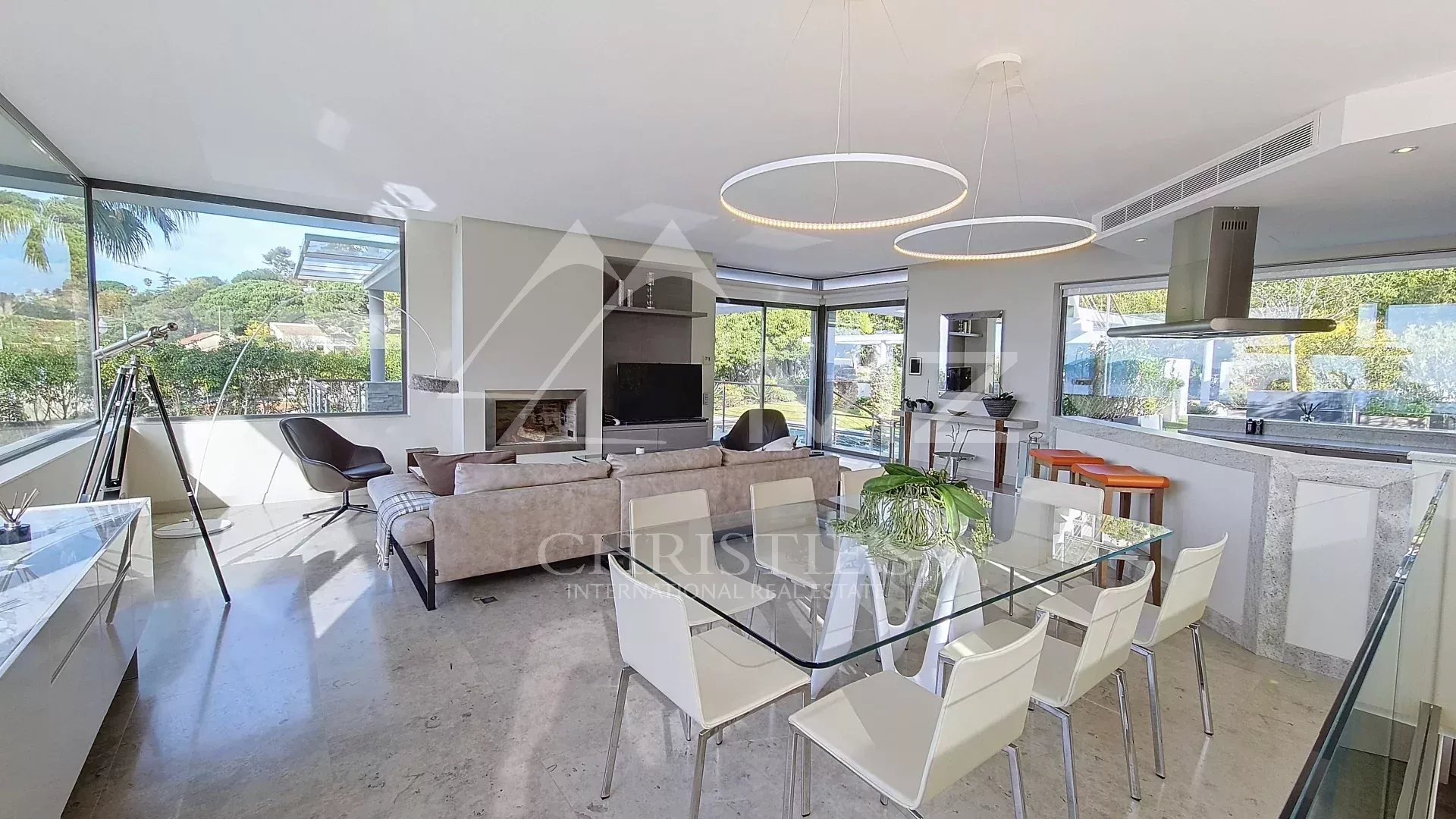 Cette lumineuse villa contemporaine idéalement située dans le secteur prestigieux de la Californie comprenant 4 chambres en-suite dont une suite parentale avec dressing bénéficie d'une vue mer panoramique exceptionnelle sur la baie de Cannes et l'Estérel.