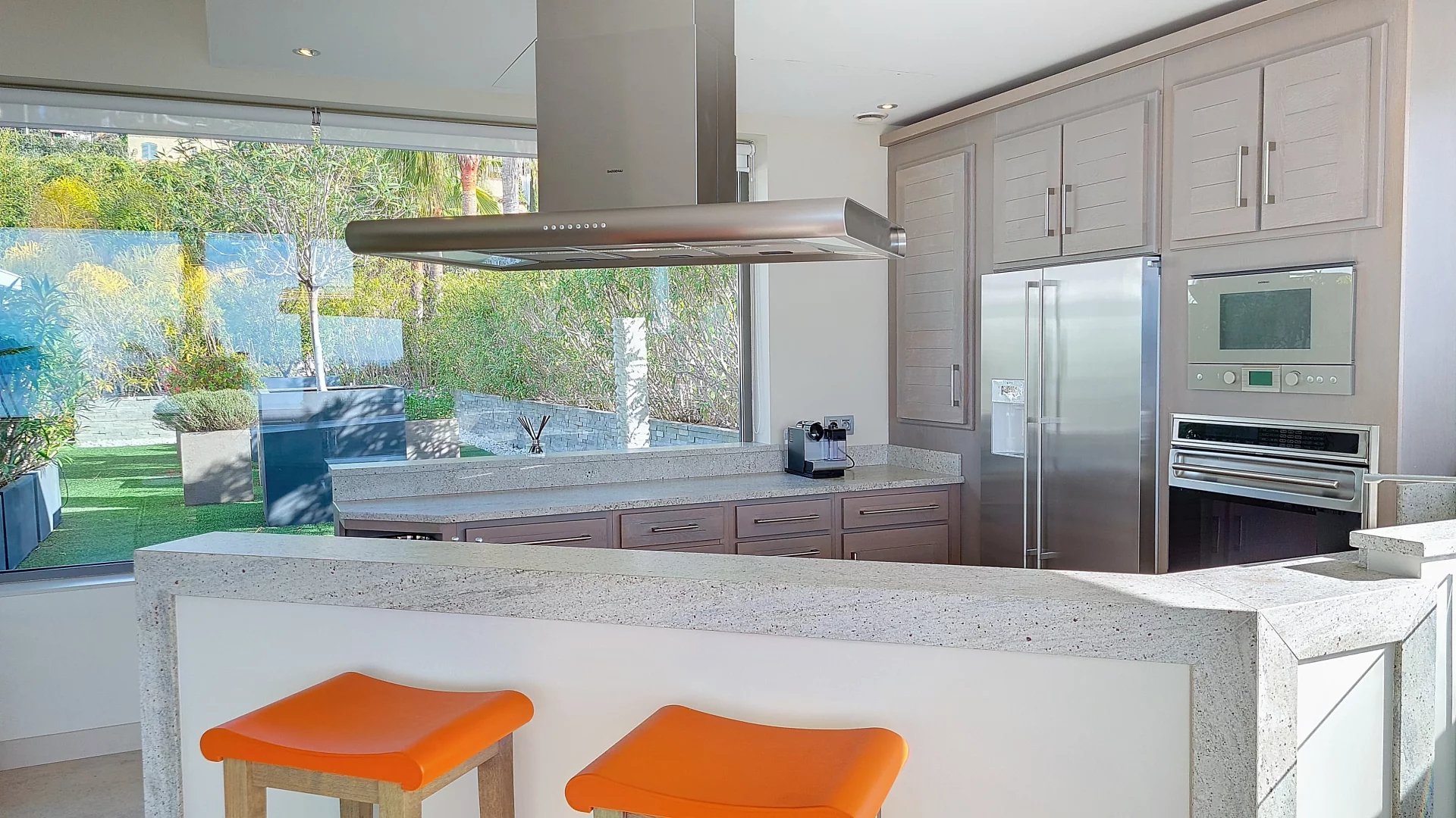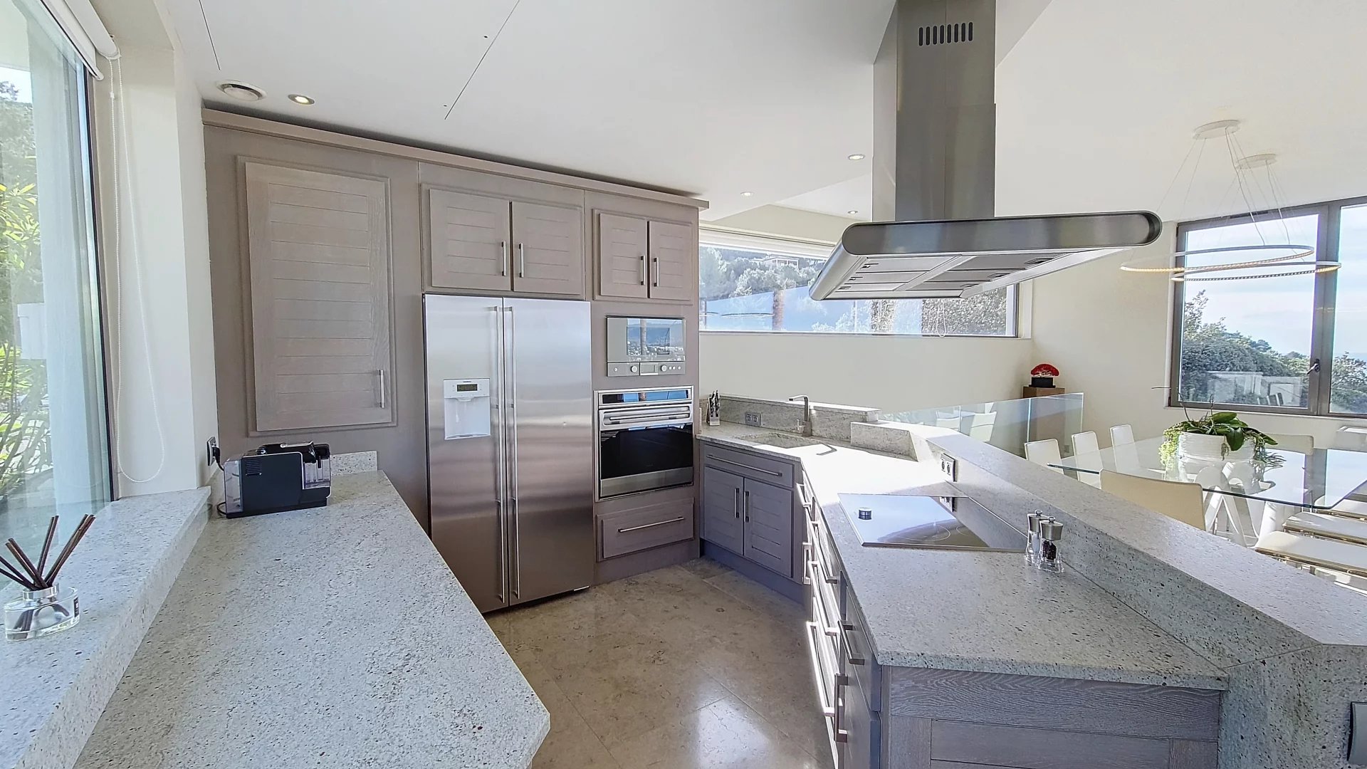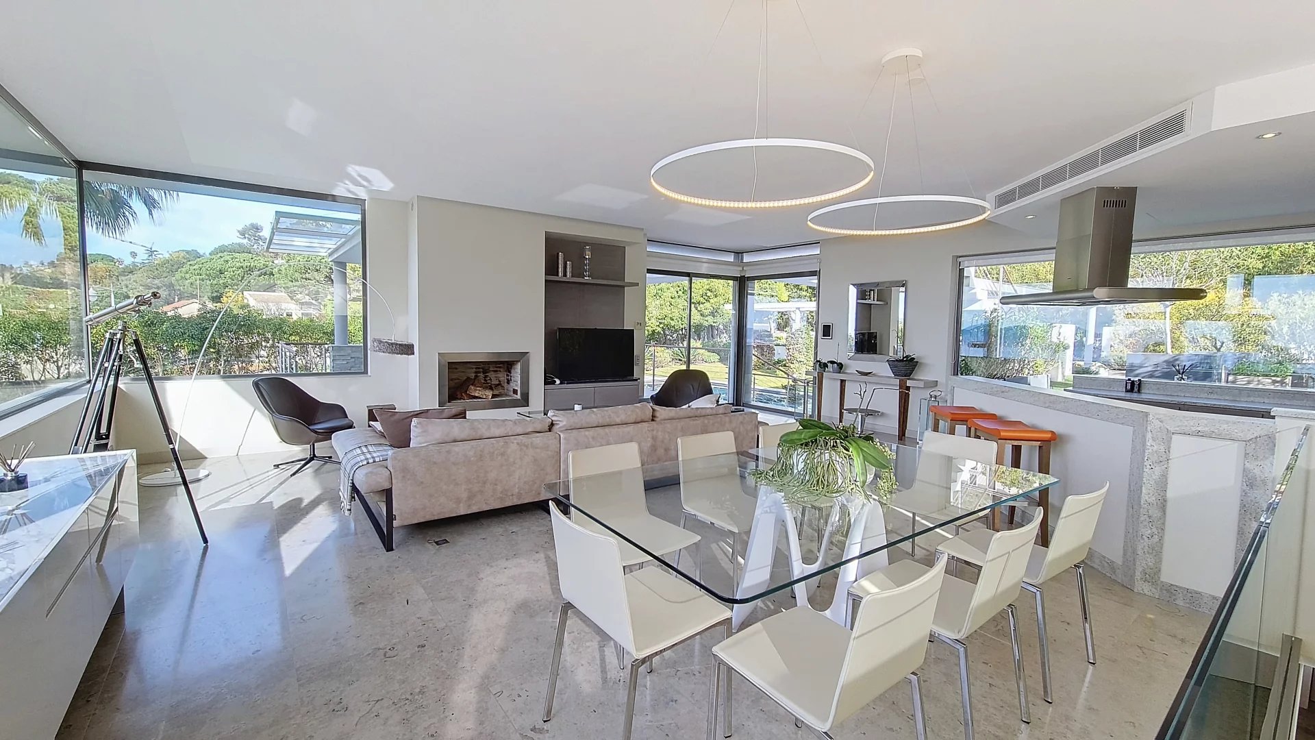 Avec piscine à débordement, solarium, un garage double et 4 parkings.