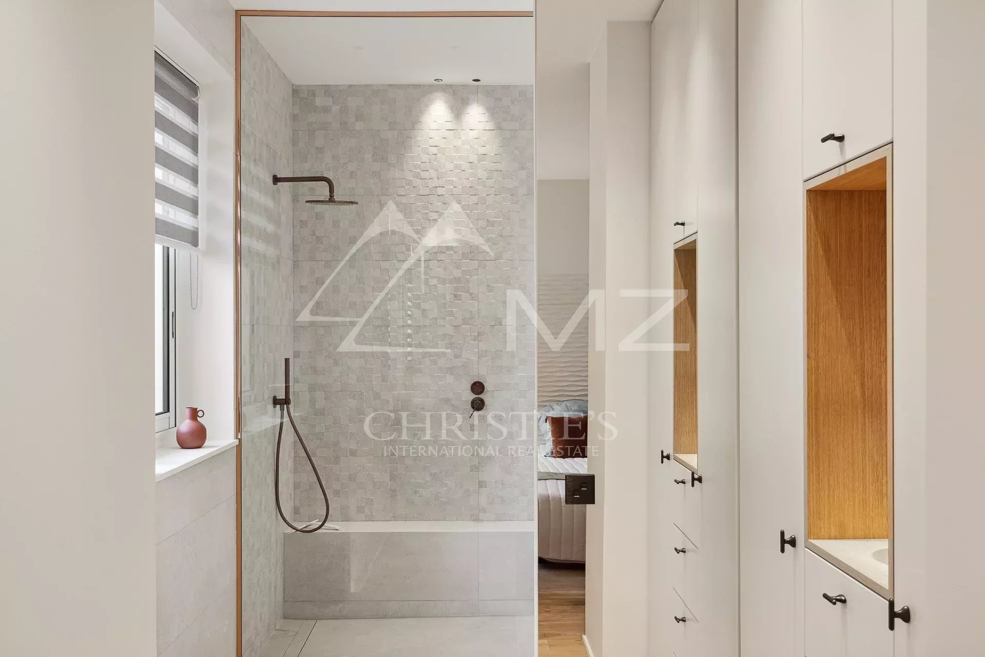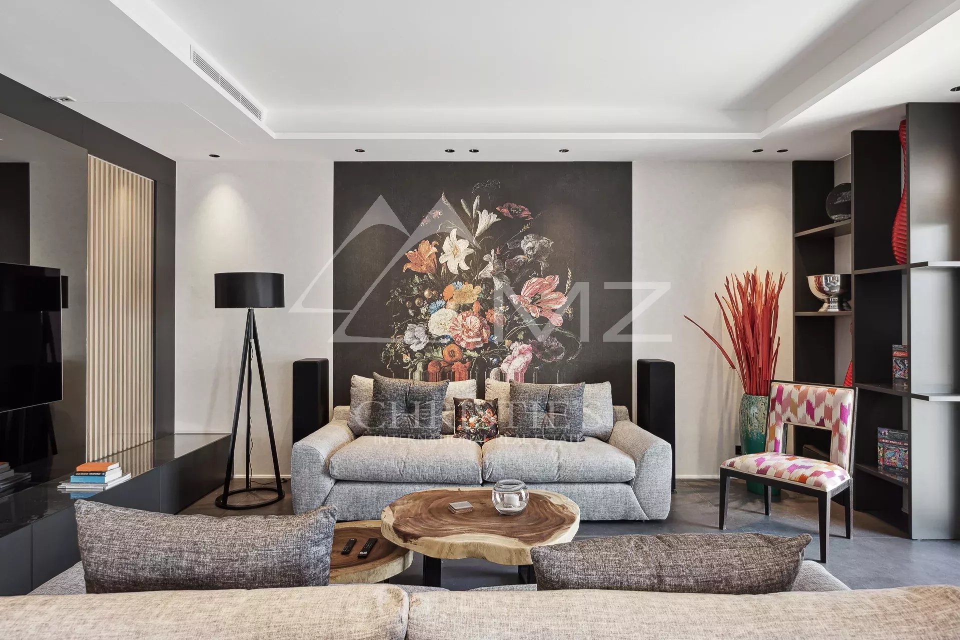 Sur la célèbre Croisette, entre les hôtels 5 étoiles du Carlton et du Martinez, se situe ce luxueux appartement d’environ 196 m2, au deuxième étage d’une élégante résidence récemment rénovée.