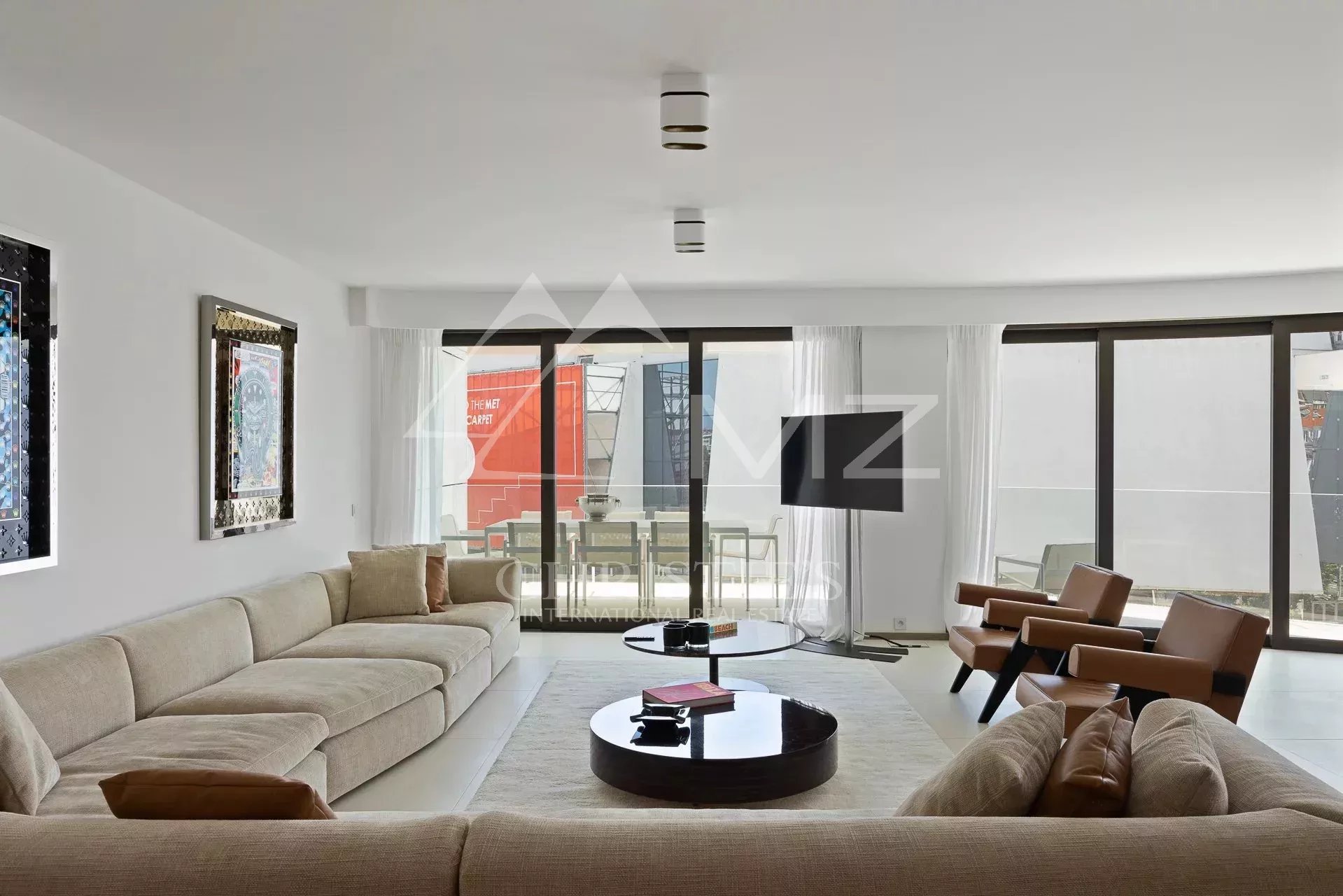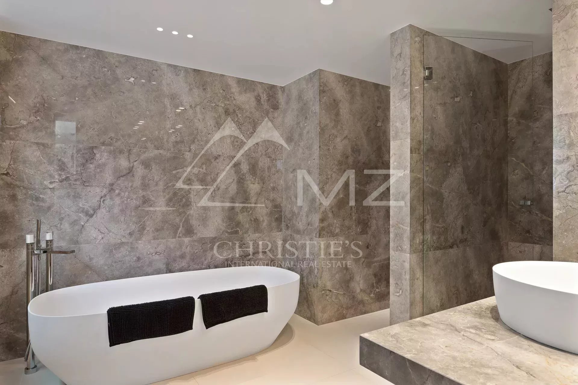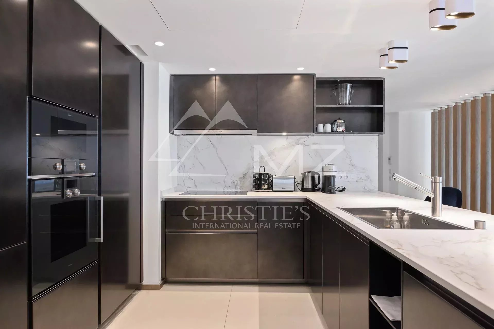 L'appartement est constitué de 5 chambres en suite, d'un salon avec une cuisine ouverte entièrement équipée, et une terrasse d'environ 21,60 m². Cet ensemble élégant offre des finitions raffinées et luxueuses pour un confort optimal.
