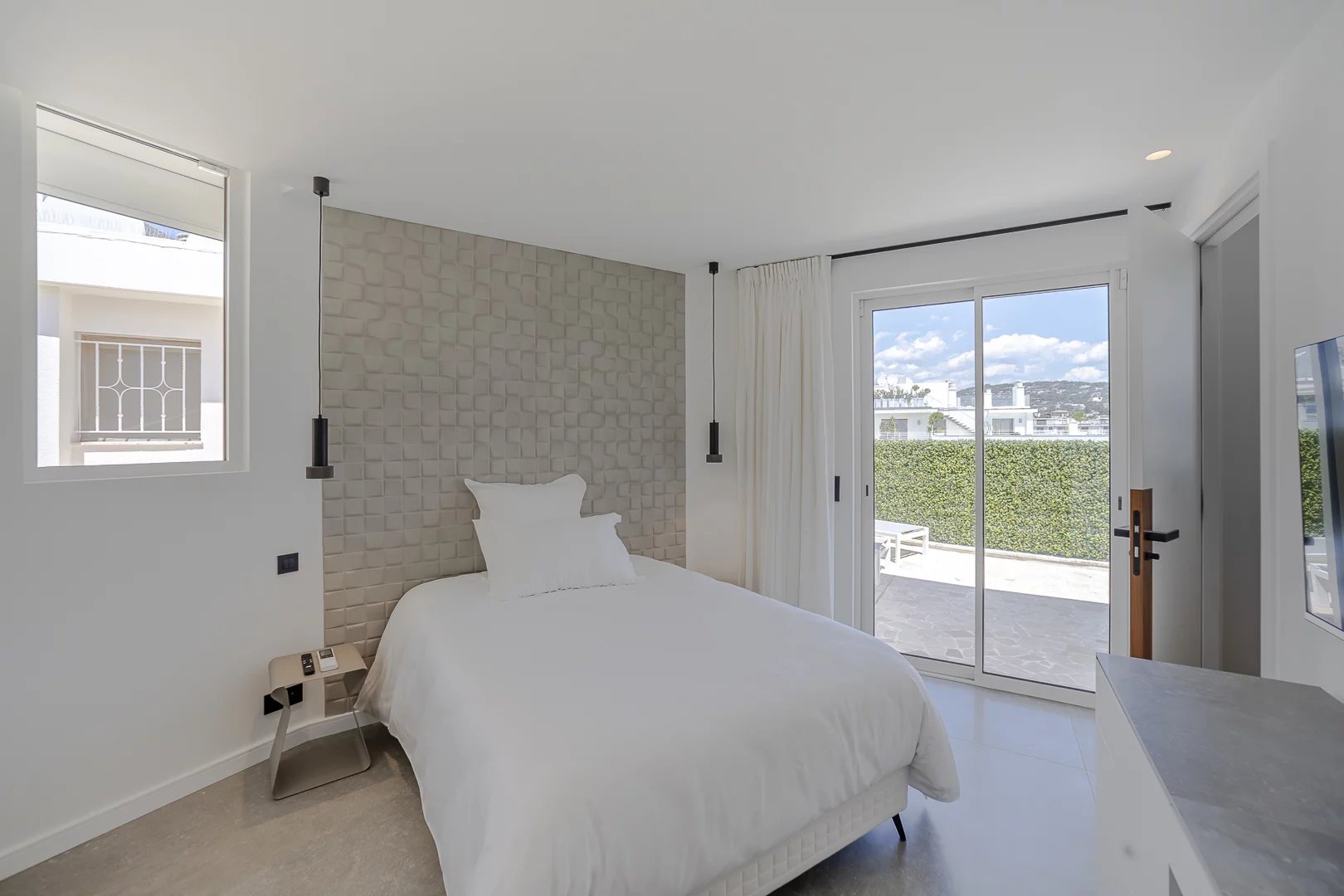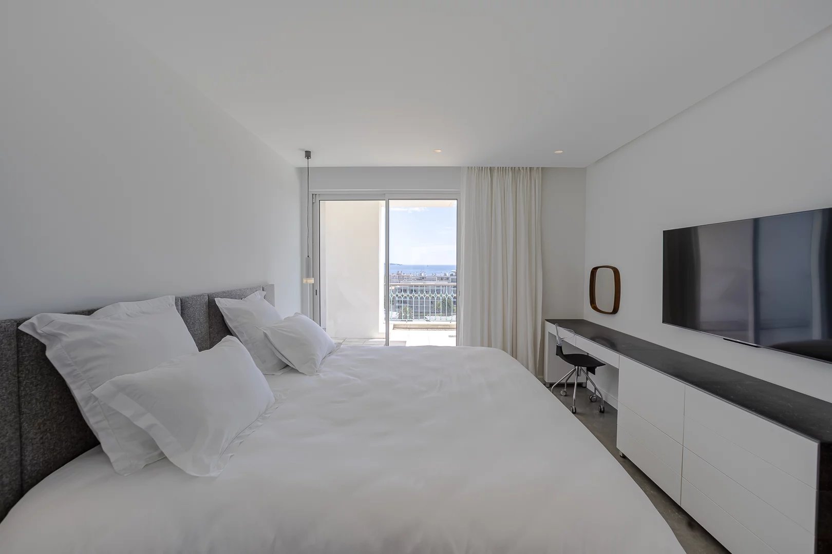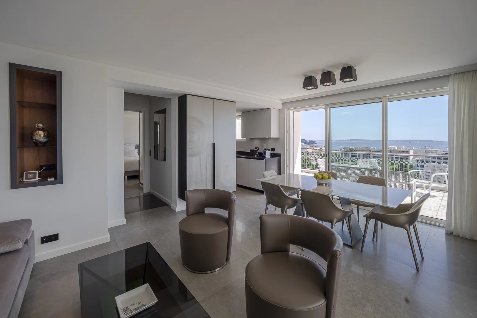Entièrement rénové, superbe penthouse sur la Croisette de 110m² environ, comprenant un séjour avec accès terrasse, une cuisine équipée, trois chambres en suite avec salle d'eau. Grande terrasse de 220m².