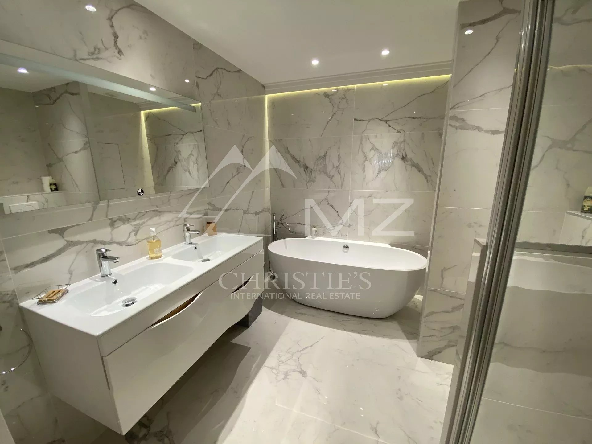 Entièrement rénové, cet appartement d'environ 90m² offre une belle terrasse d'environ 27 m² avec vue mer et se situe à quelques minutes à pied du Palais des Festivals. Il comprend : un séjour avec salle à manger, une cuisine, une chambre en suite avec salle d'eau et une chambre de maître avec salle de bains et douche. Une salle d'eau en plus.