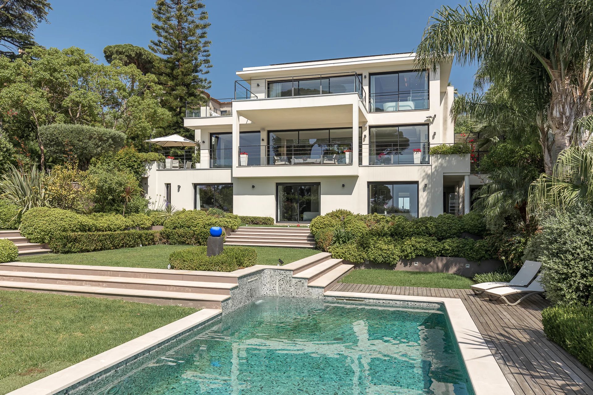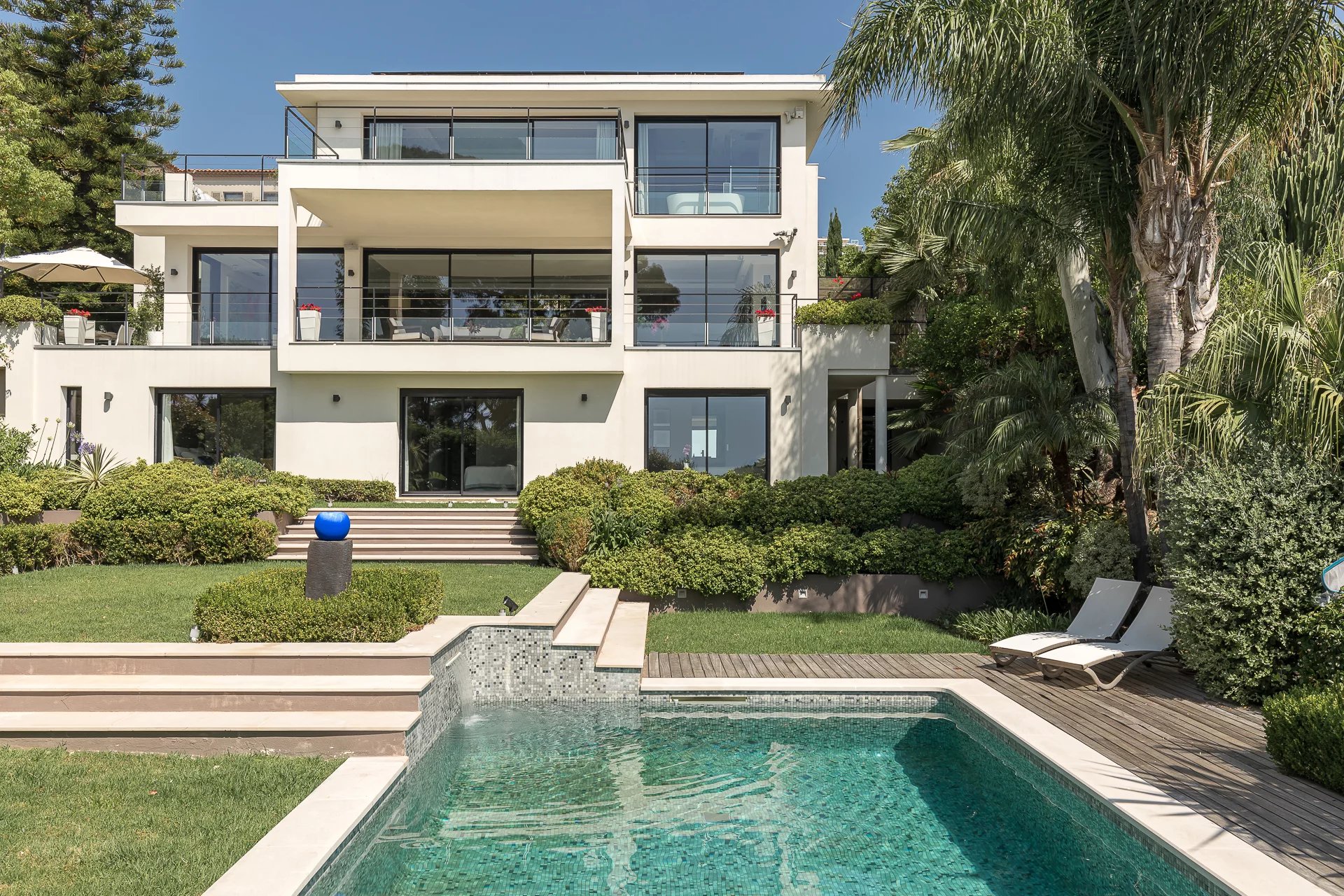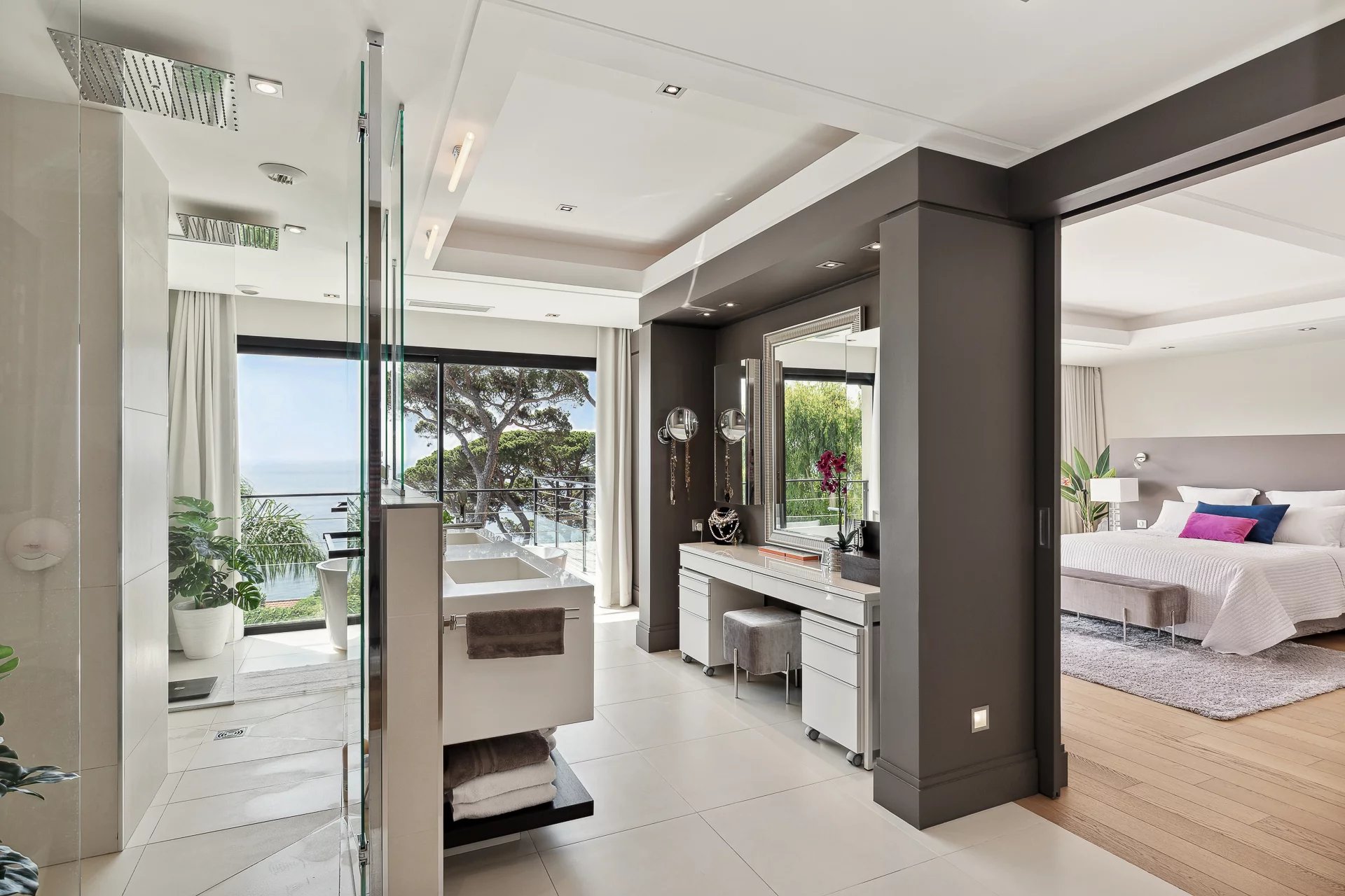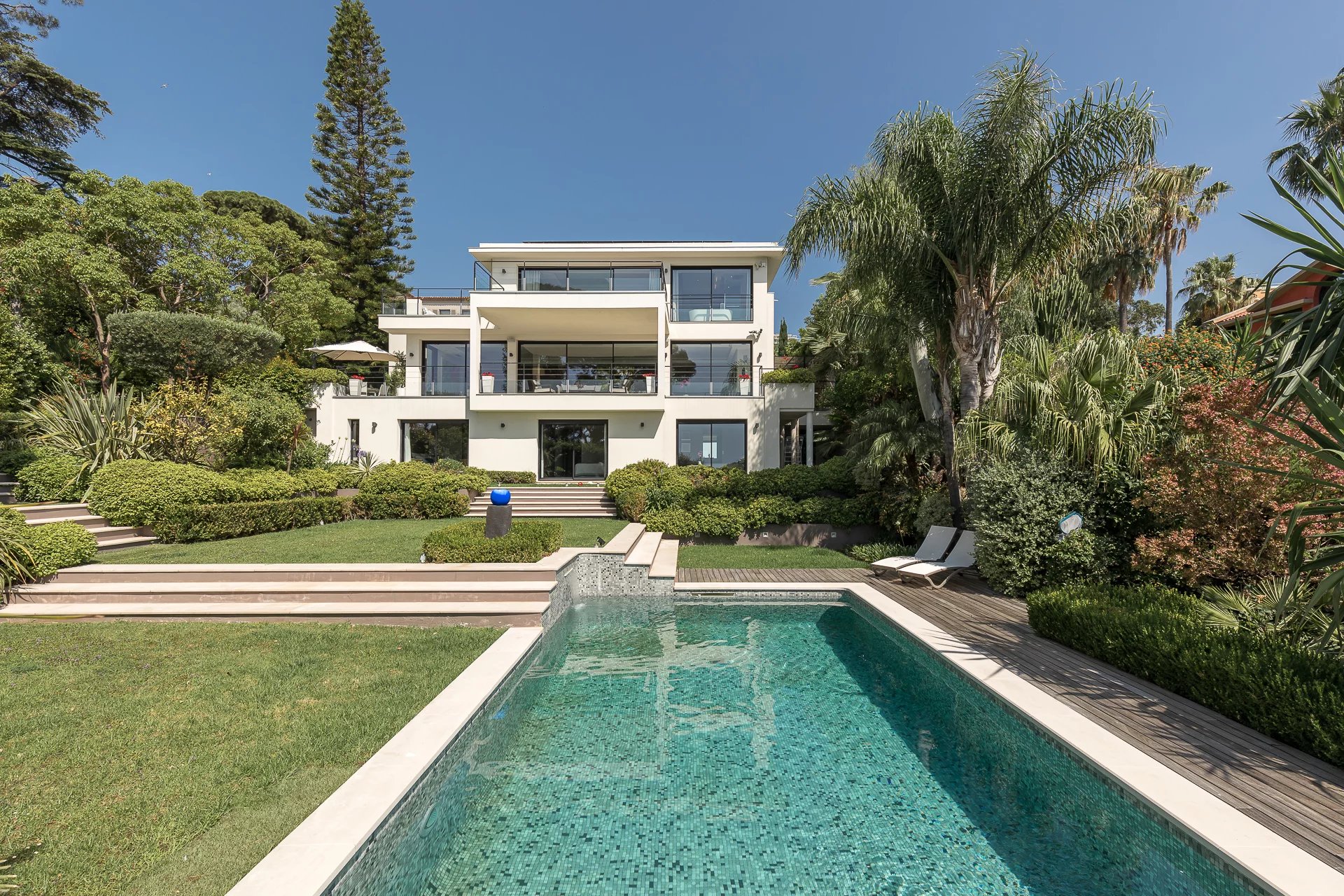 Superbe villa contemporaine dans un domaine fermé, de 450 m² environ, comprenant : A l'étage, une chambre de maitre avec salle de douche et bain. Au rez-de-chaussée, un séjour, salle à manger et cuisine équipée. au rez de jardin, deux chambres en suite avec salle de douche, une chambre avec salle de bains, une buanderie, un appartement de service avec cuisine et chambre en suite. Piscine. Terrain d'environ 1300 m². Abris voiture.