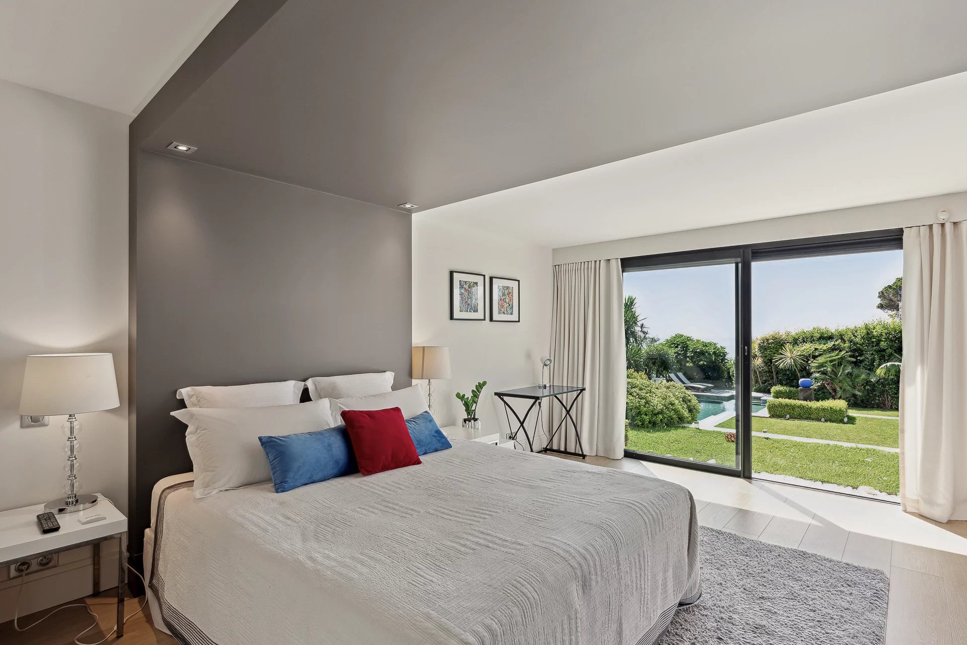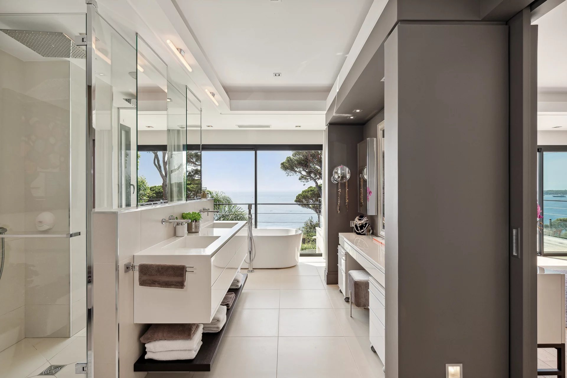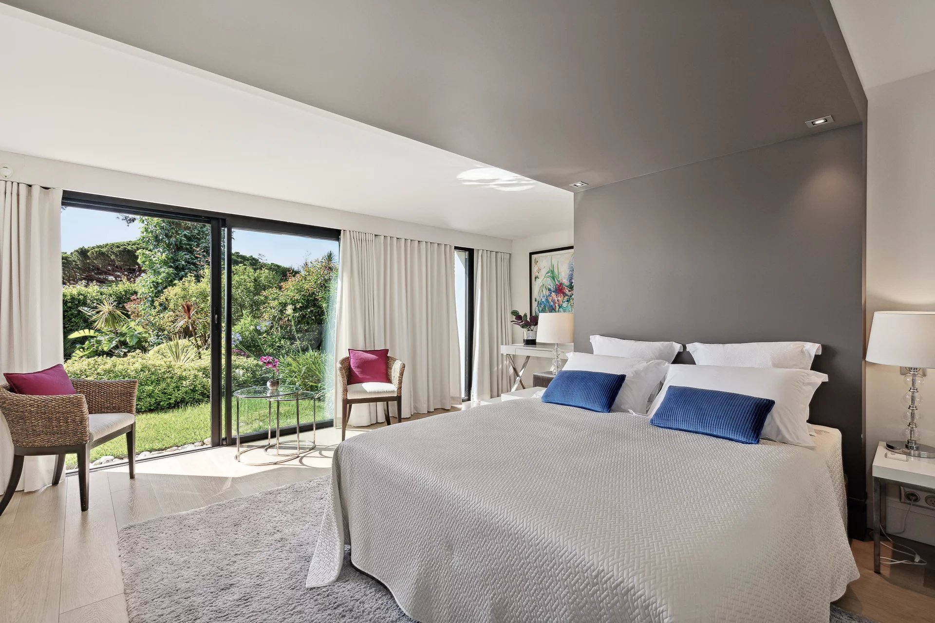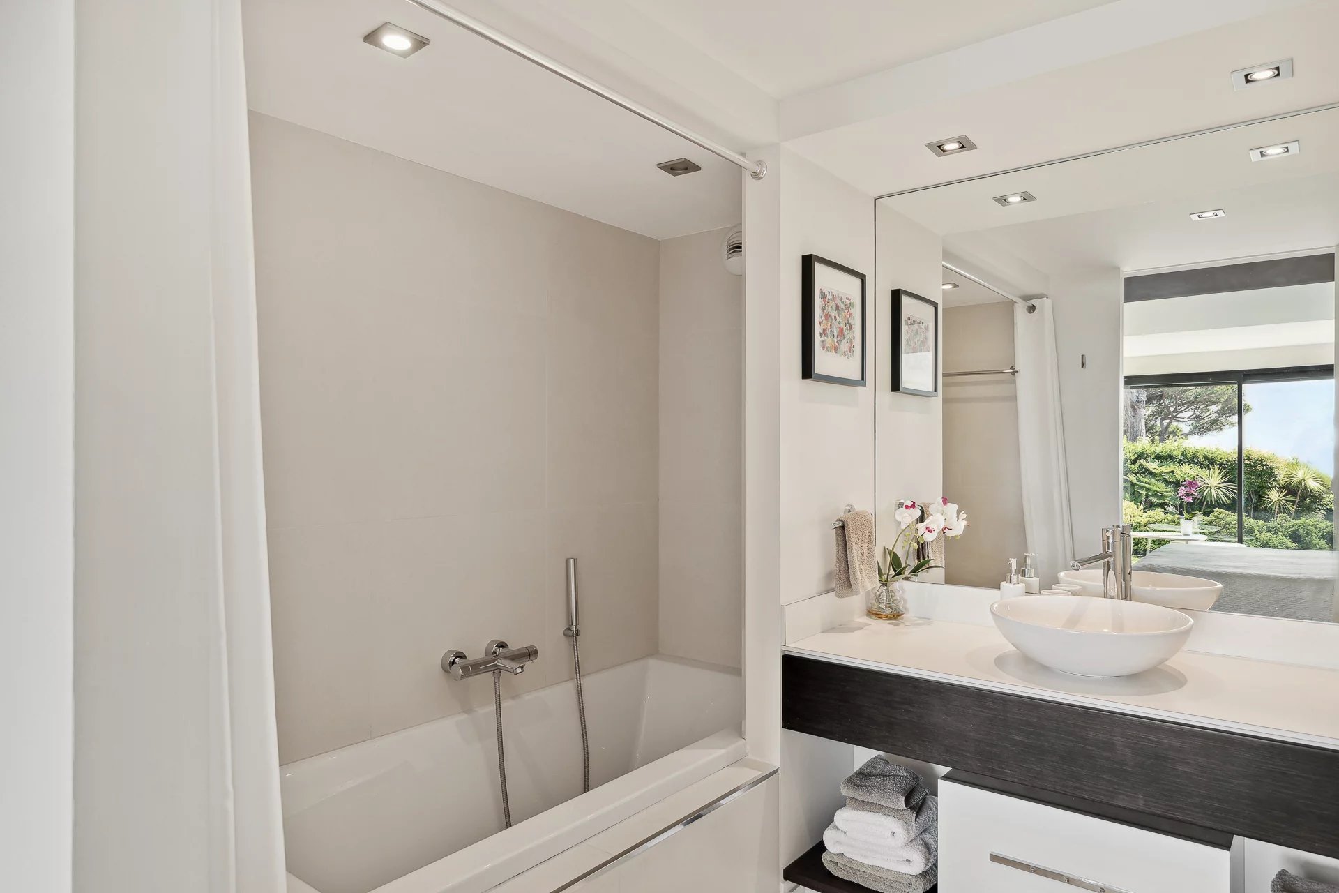 Superbe villa contemporaine dans un domaine fermé, de 450 m² environ, comprenant : A l'étage, une chambre de maitre avec salle de douche et bain. Au rez-de-chaussée, un séjour, salle à manger et cuisine équipée. au rez de jardin, deux chambres en suite avec salle de douche, une chambre avec salle de bains, une buanderie, un appartement de service avec cuisine et chambre en suite. Piscine. Terrain d'environ 1300 m². Abris voiture.
