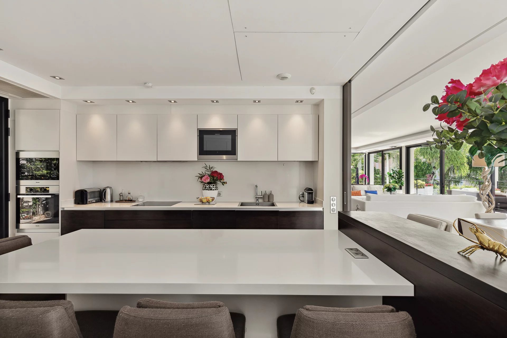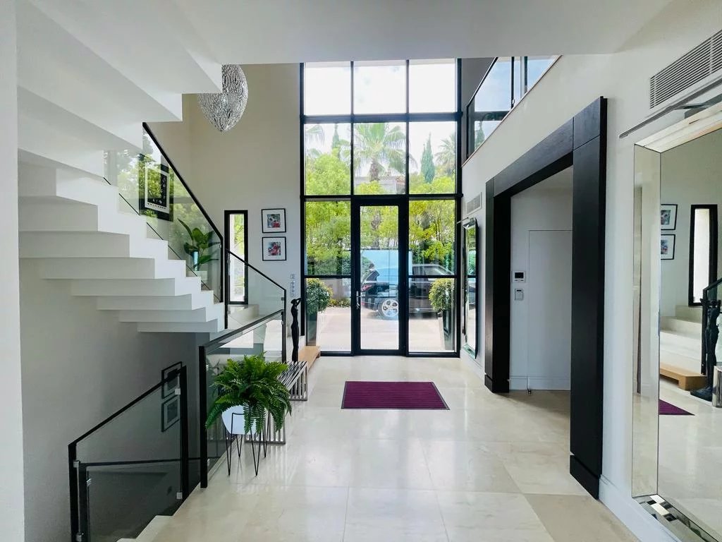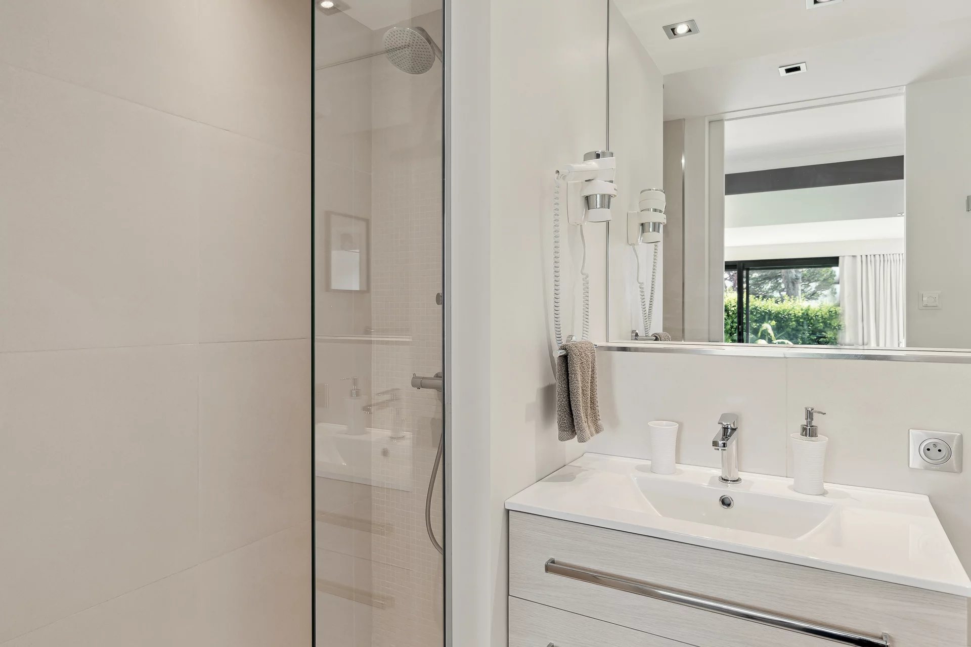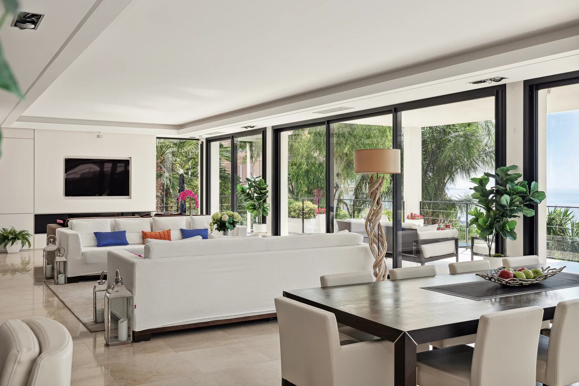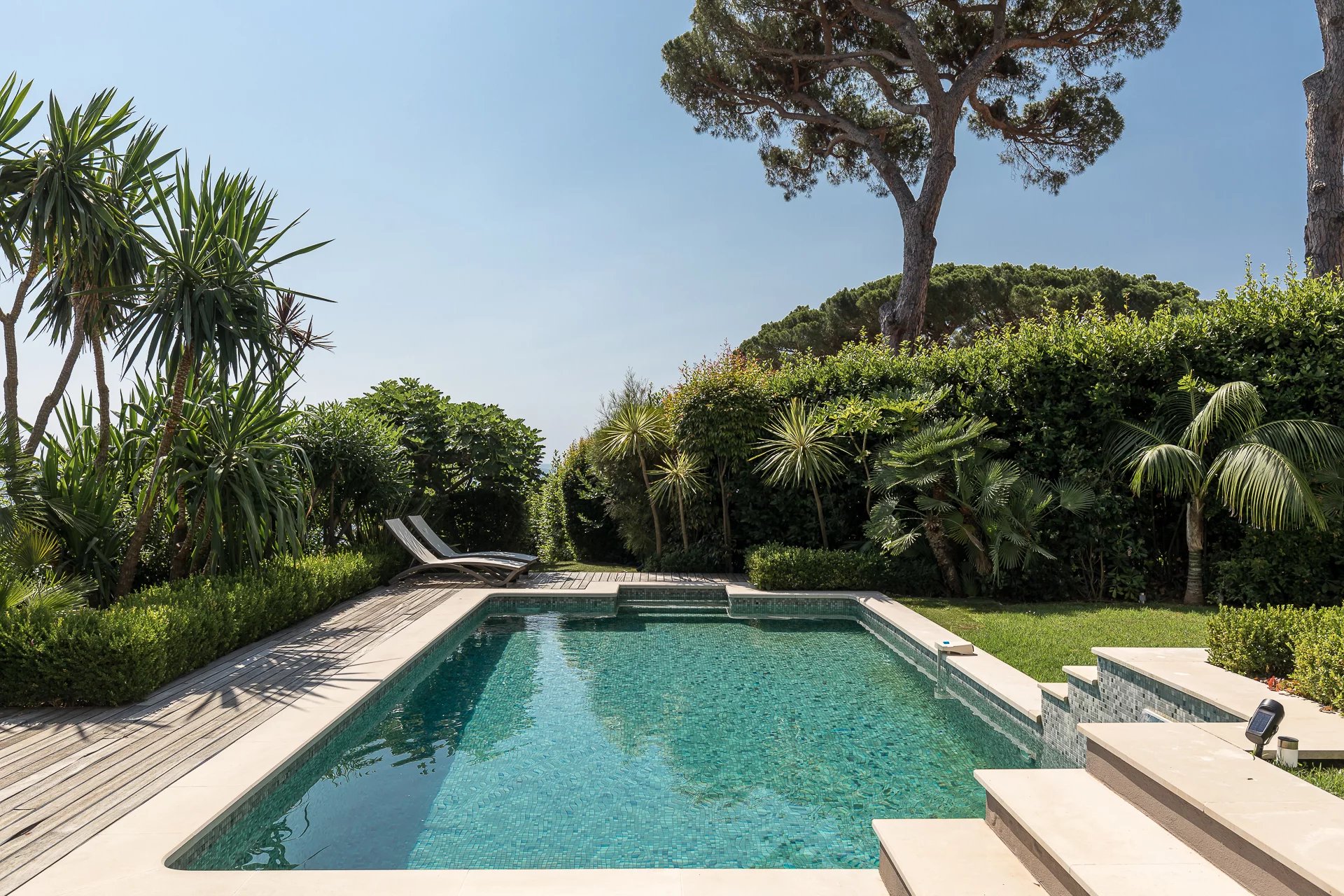 Superbe villa contemporaine dans un domaine fermé, de 450 m² environ, comprenant : A l'étage, une chambre de maitre avec salle de douche et bain. Au rez-de-chaussée, un séjour, salle à manger et cuisine équipée. au rez de jardin, deux chambres en suite avec salle de douche, une chambre avec salle de bains, une buanderie, un appartement de service avec cuisine et chambre en suite. Piscine. Terrain d'environ 1300 m². Abris voiture.