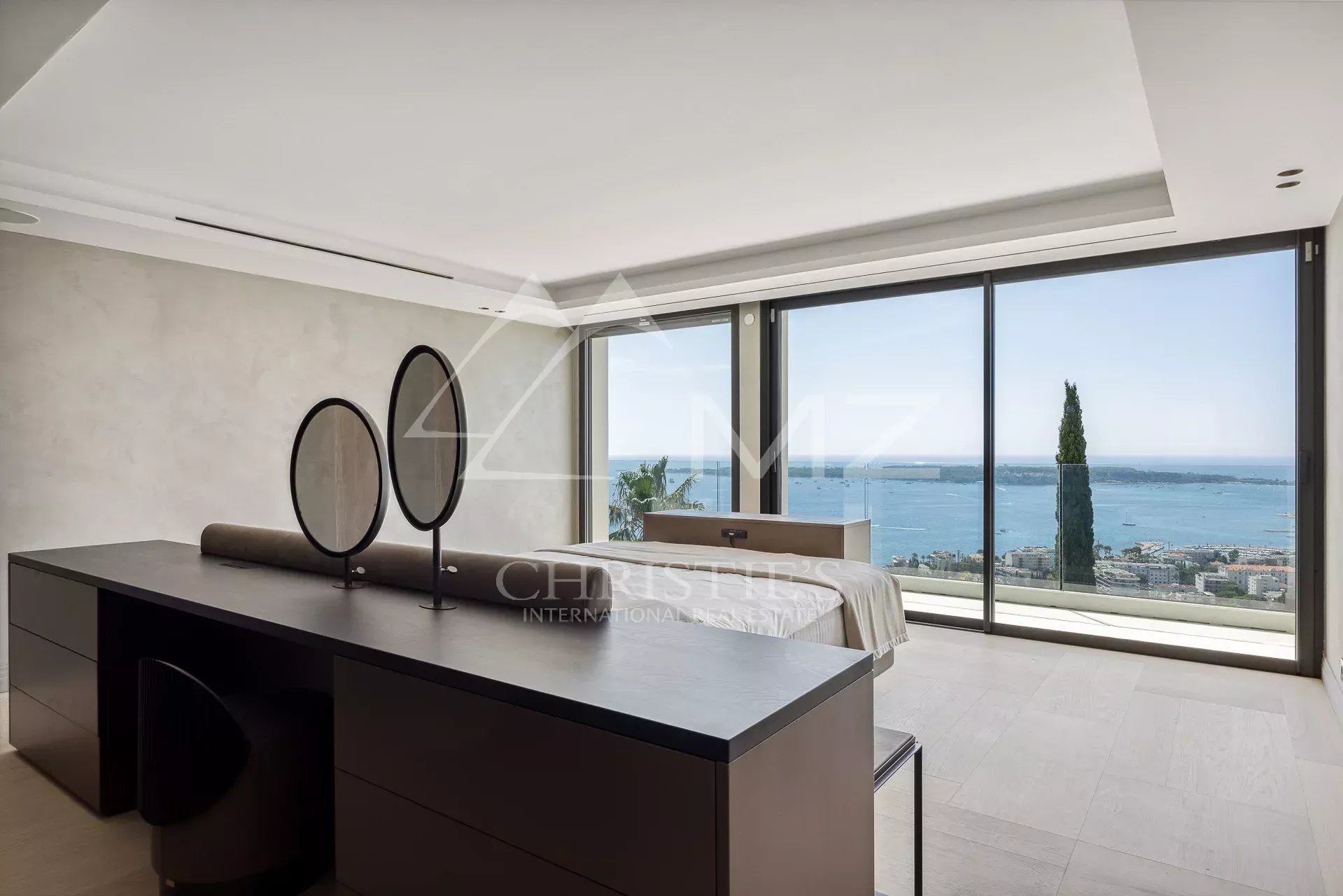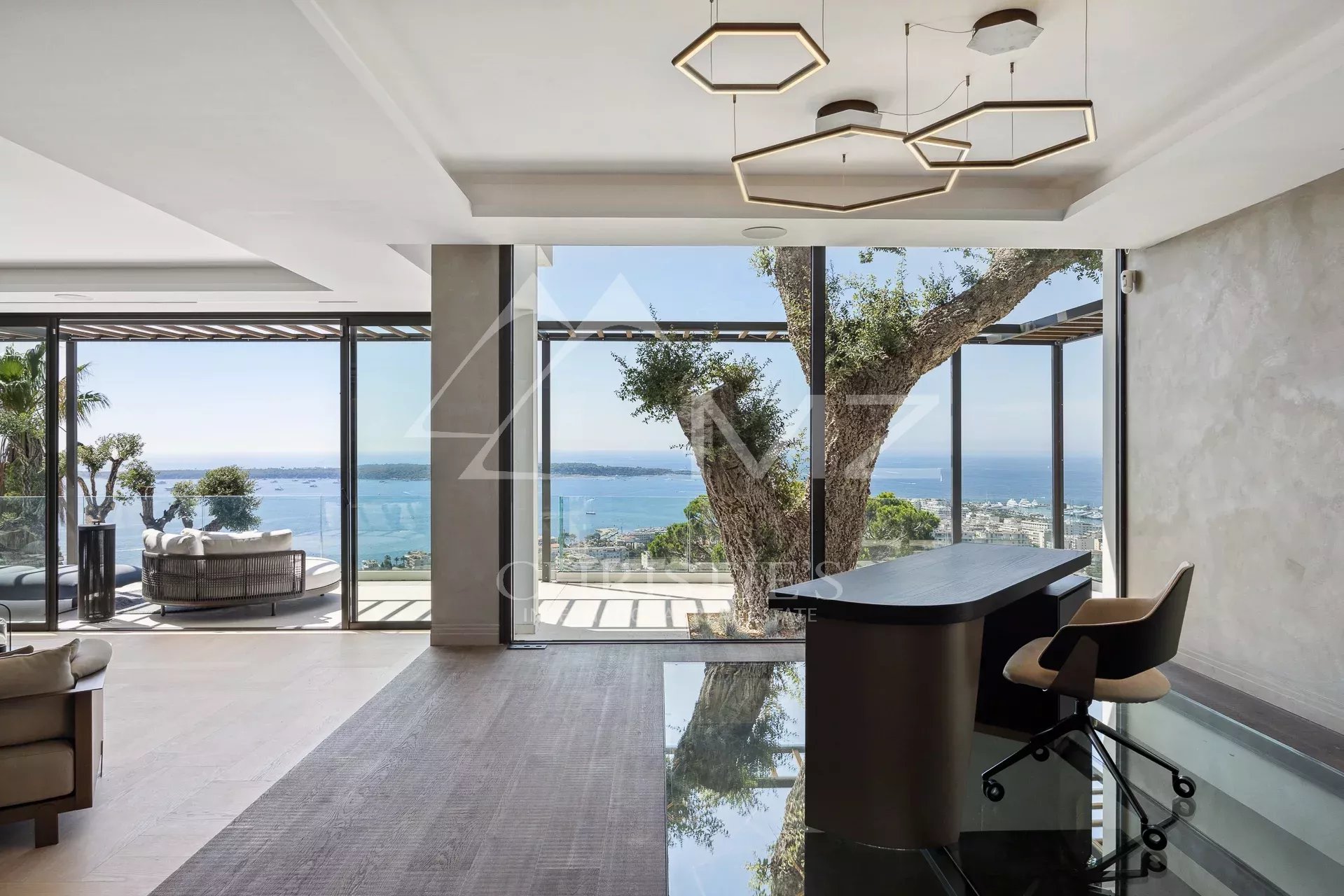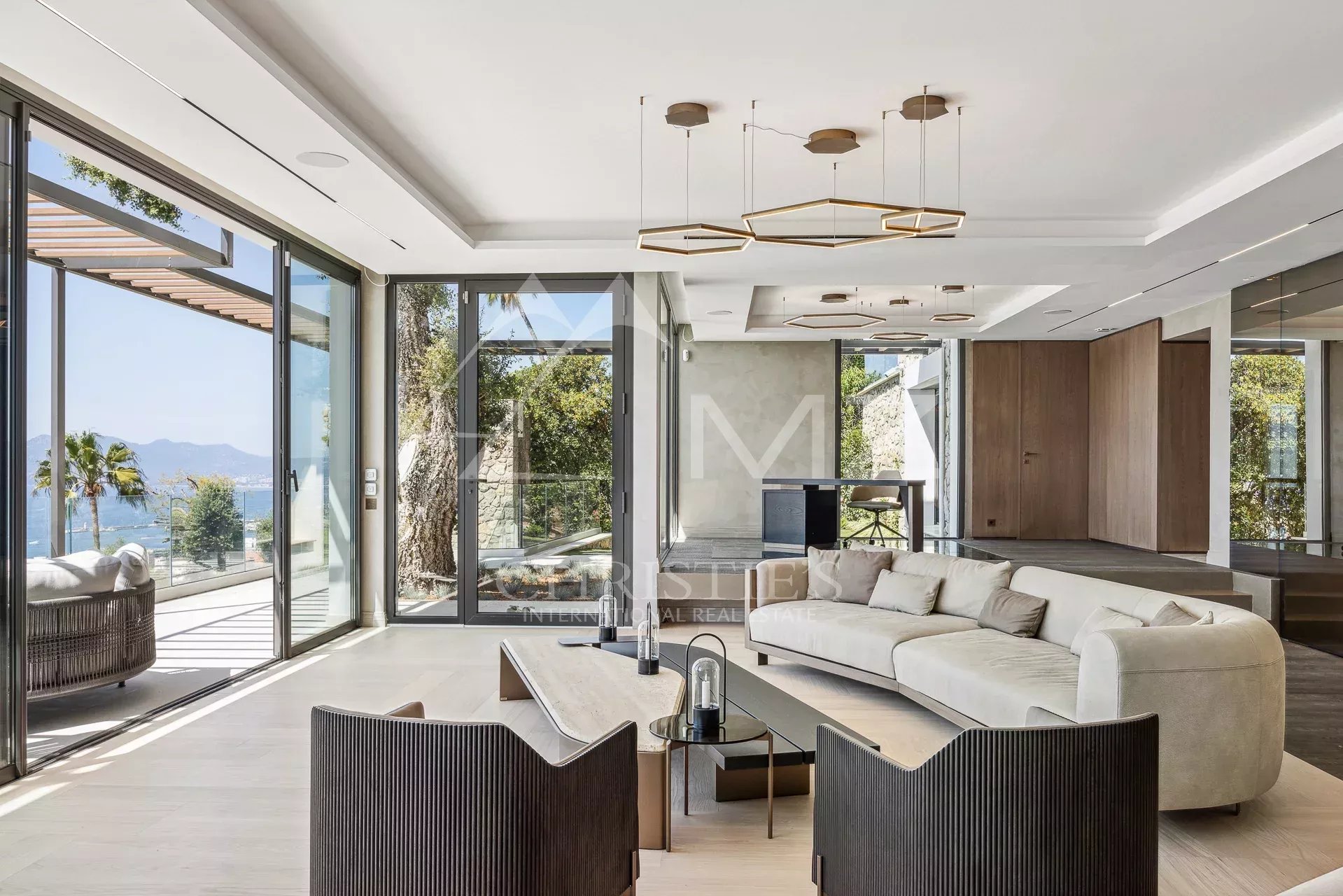 Très proche de la mer, superbe villa contemporaine d'environ 600 m2, comprenant : Au rez-de-chaussé : un séjour avec cuisine ouverte équipée, une cave a vin, une buanderie et une salle a manger, accès terrasse et piscine, 1 chambre en suite avec salle de douche. Au premier étage, un salon principal, un bureau, une chambre de maitre et une chambre en suite. Au deuxième étage, trois chambres en suite. Piscine chauffée. Terrain 1800m². Prestations raffinées. Abris voiture et air de contournement automatique.