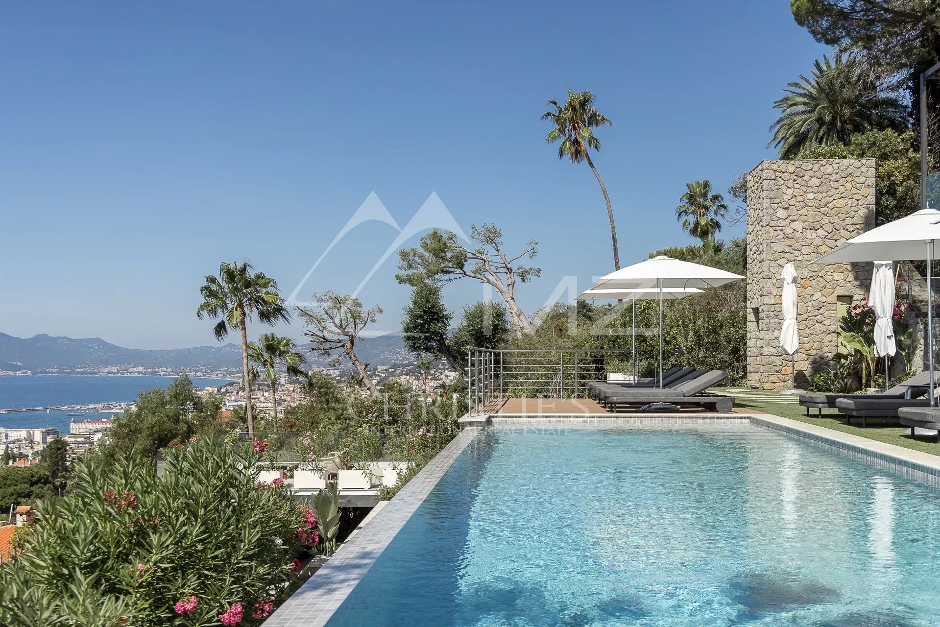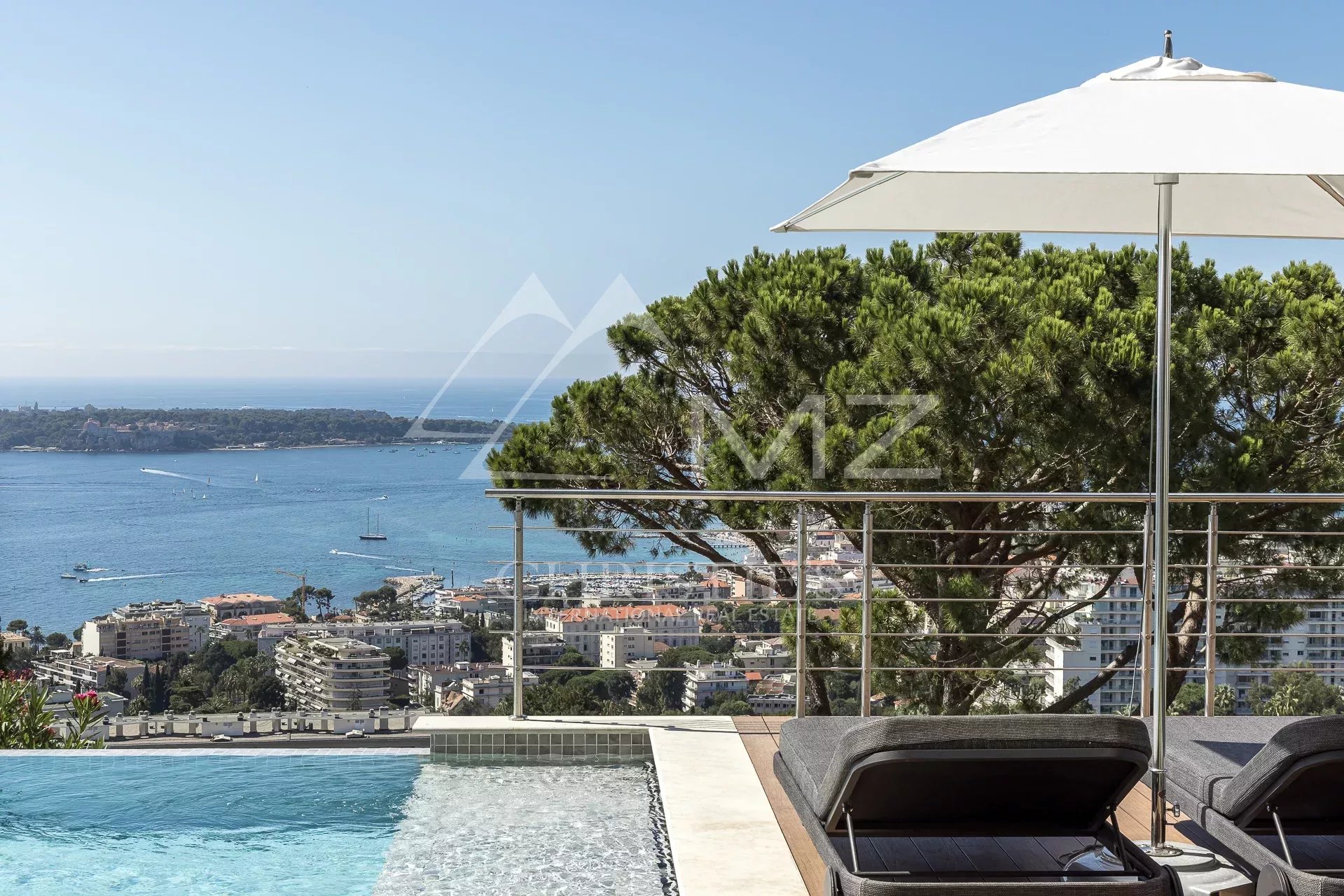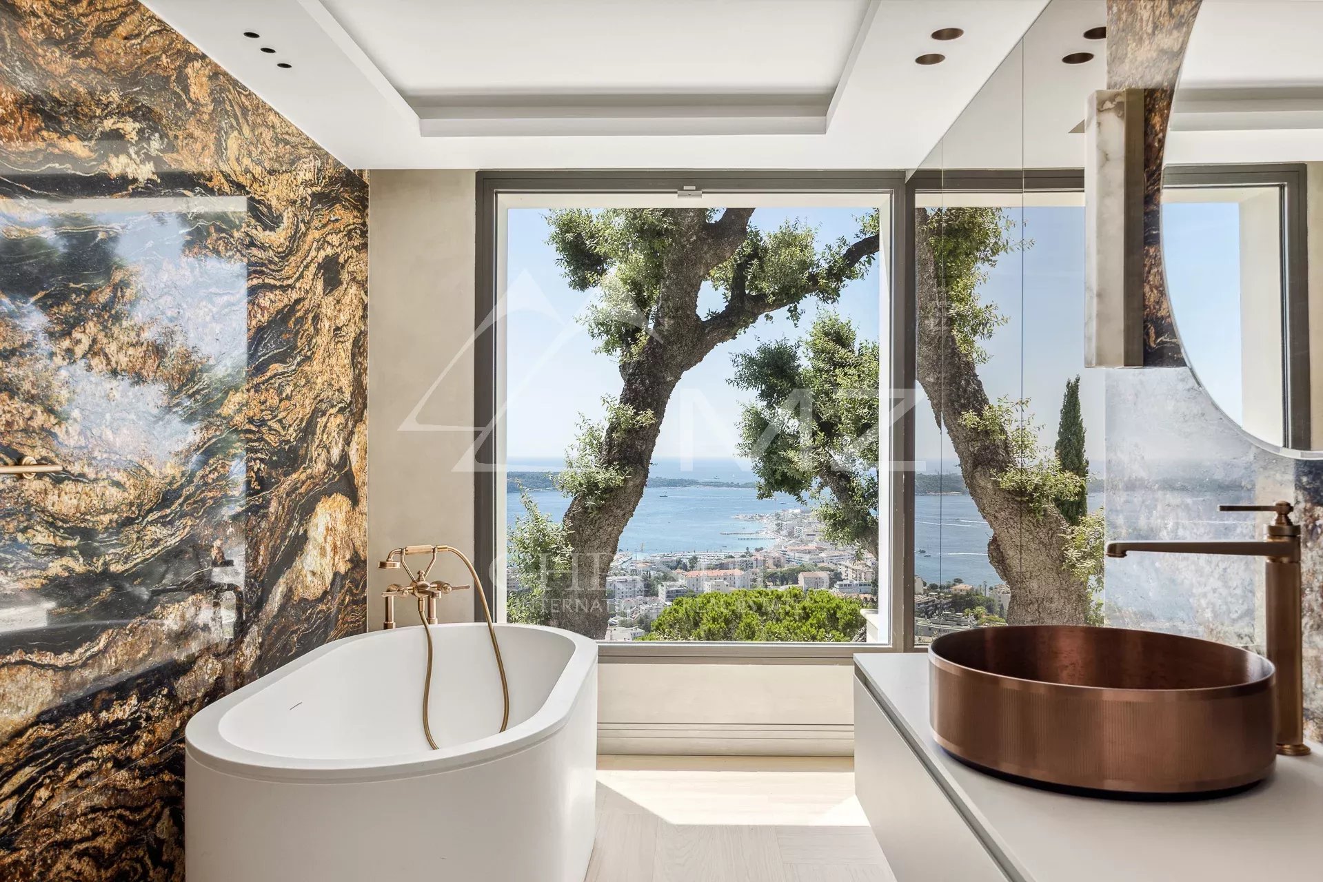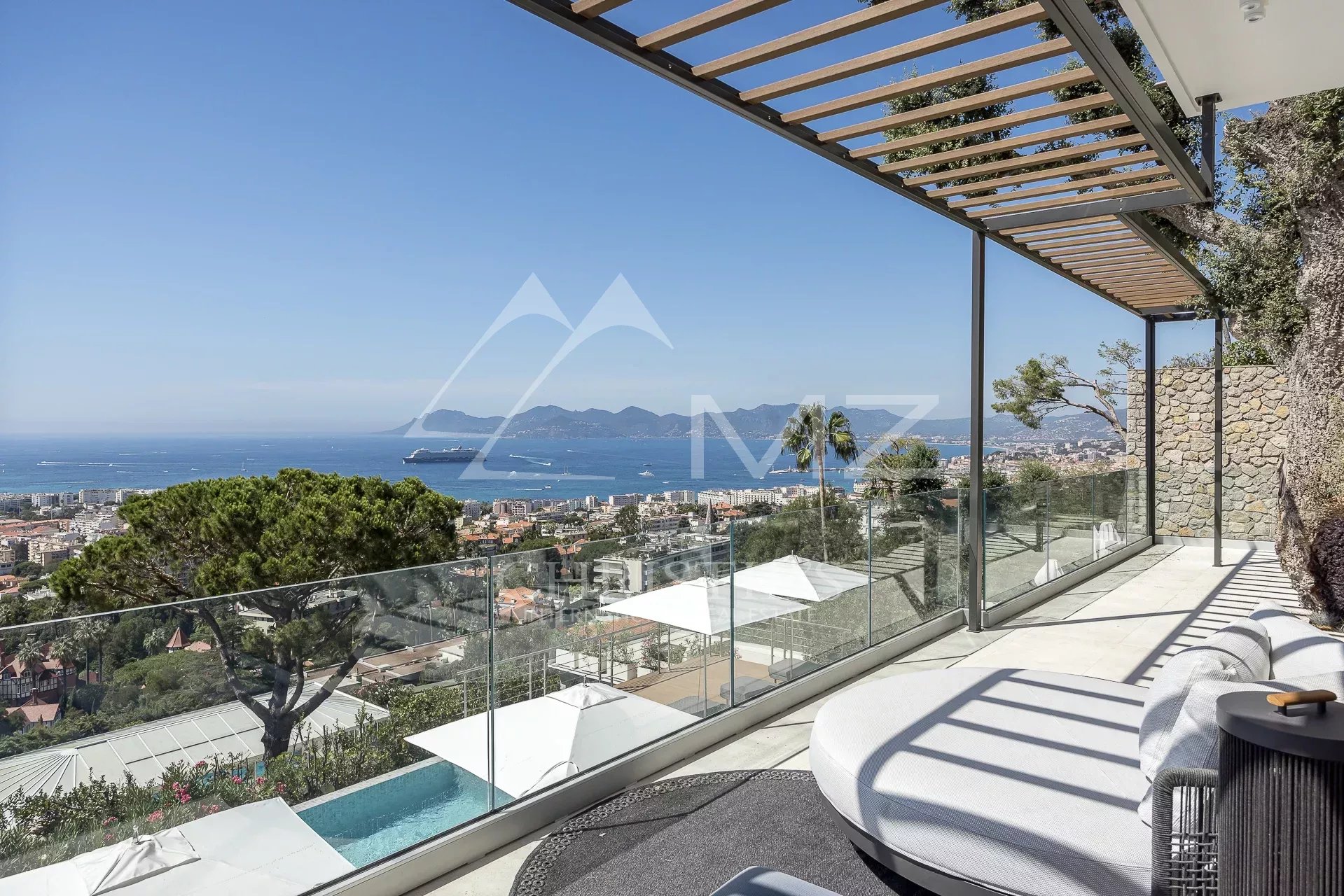 Très proche de la mer, superbe villa contemporaine d'environ 600 m2, comprenant : Au rez-de-chaussé : un séjour avec cuisine ouverte équipée, une cave a vin, une buanderie et une salle a manger, accès terrasse et piscine, 1 chambre en suite avec salle de douche. Au premier étage, un salon principal, un bureau, une chambre de maitre et une chambre en suite. Au deuxième étage, trois chambres en suite. Piscine chauffée. Terrain 1800m². Prestations raffinées. Abris voiture et air de contournement automatique.
