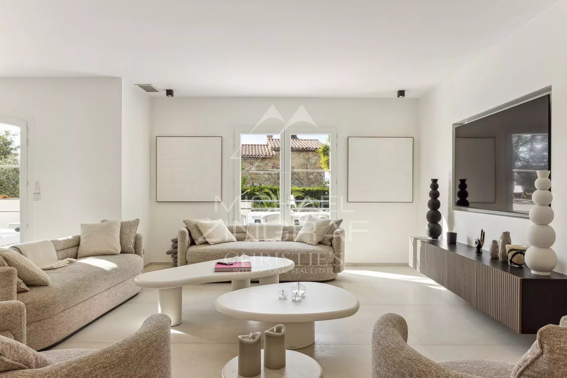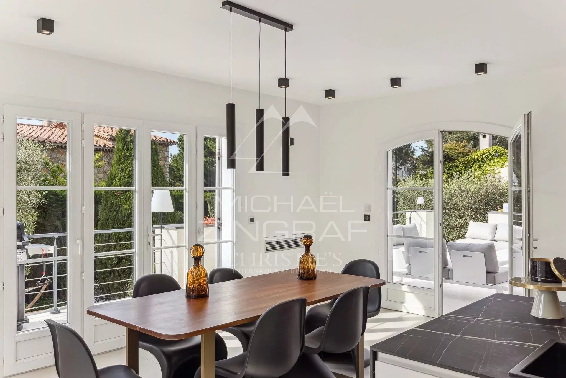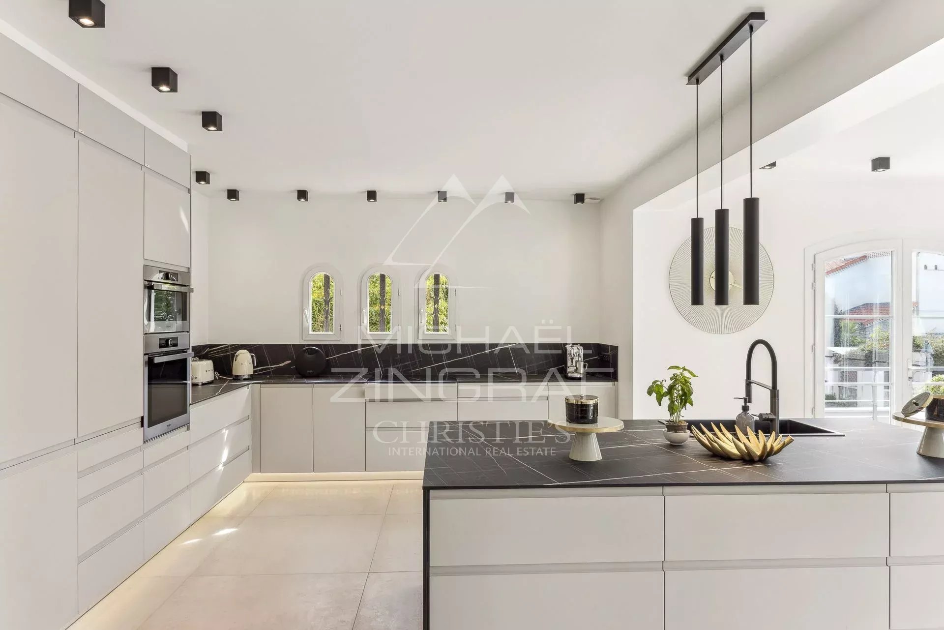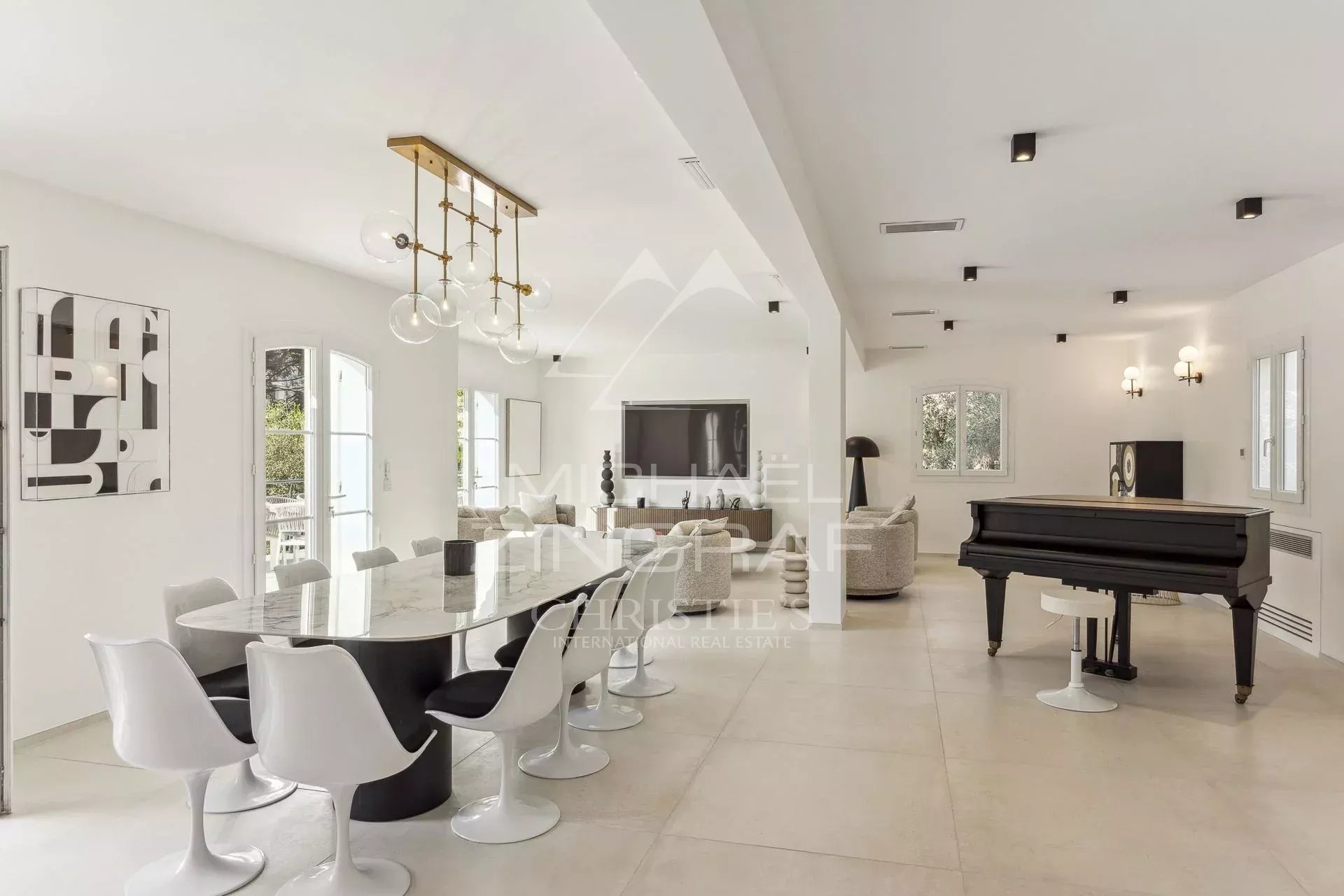 Cette magnifique villa de 350² environ, à la rénovation très moderne, sur trois niveaux, propose un très grand séjour/cuisine donnant sur un jardin avec piscine chauffée.