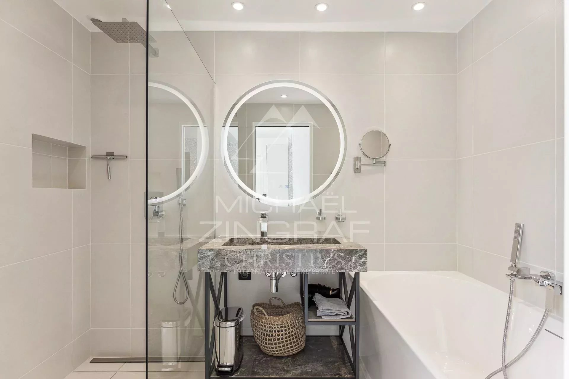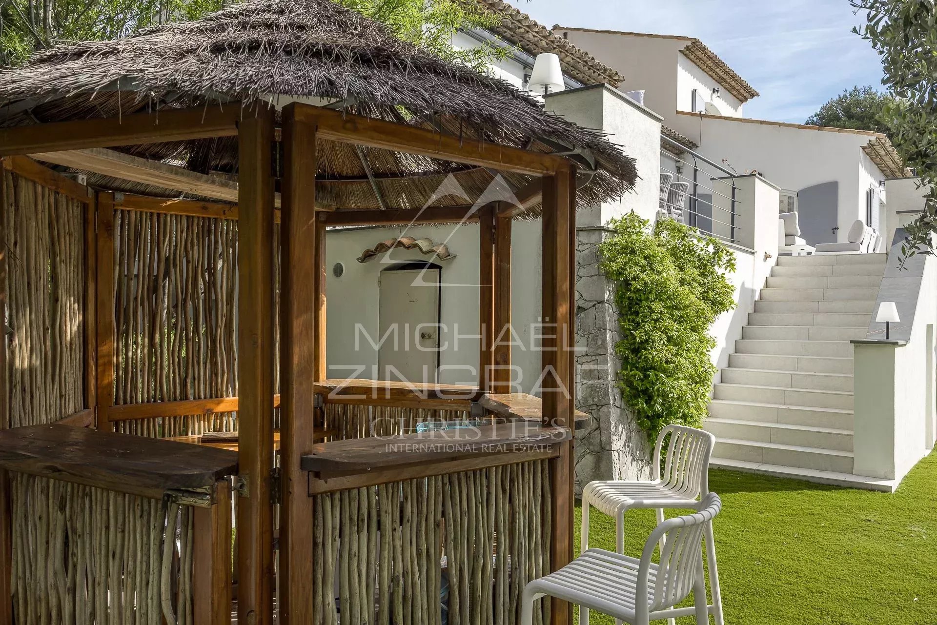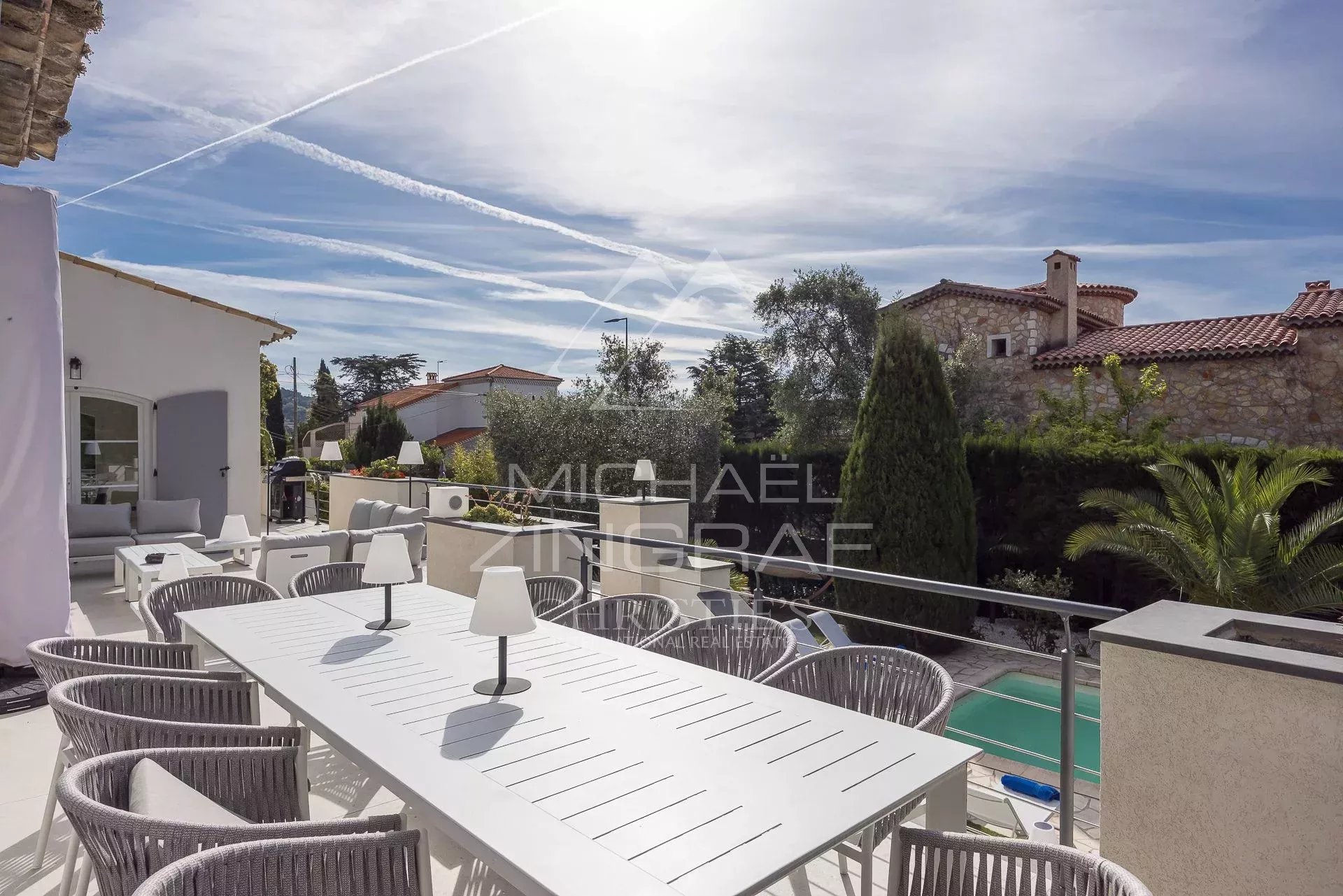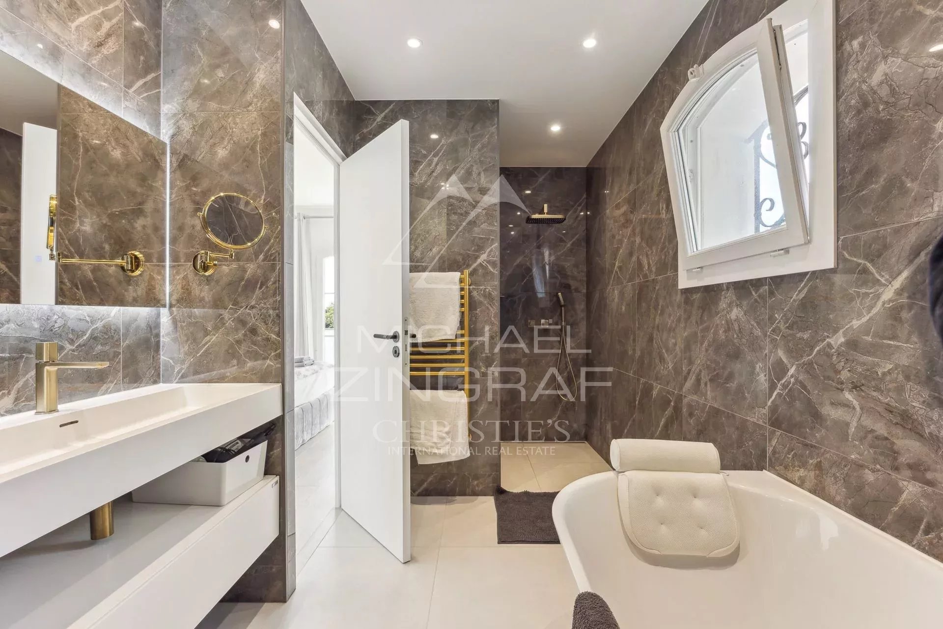 Cette magnifique villa de 350² environ, à la rénovation très moderne, sur trois niveaux, propose un très grand séjour/cuisine donnant sur un jardin avec piscine chauffée.