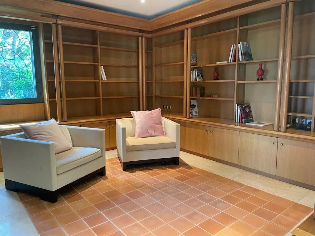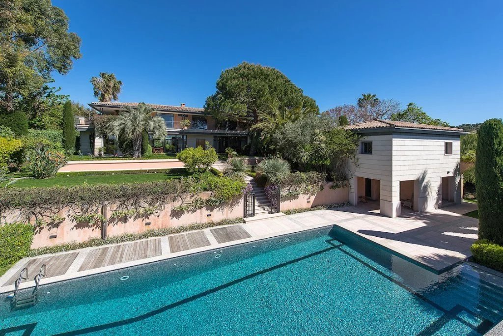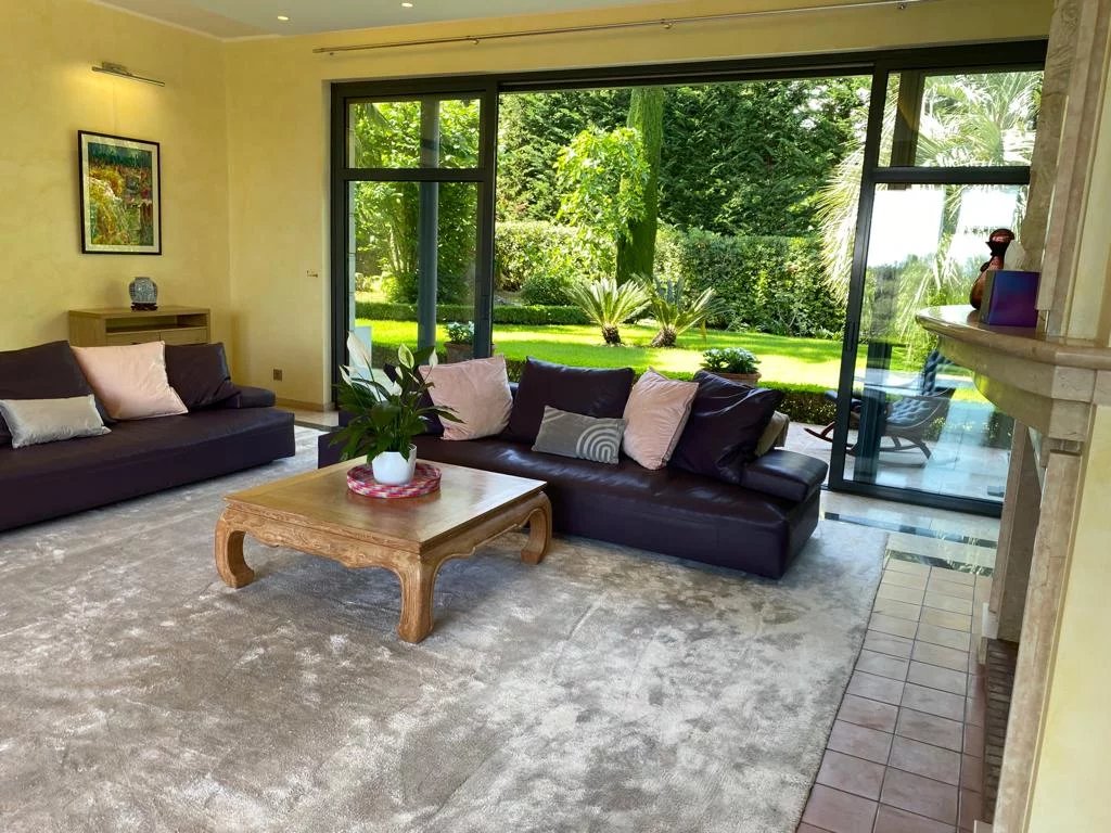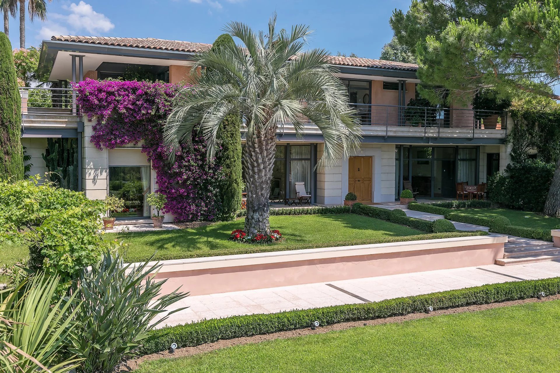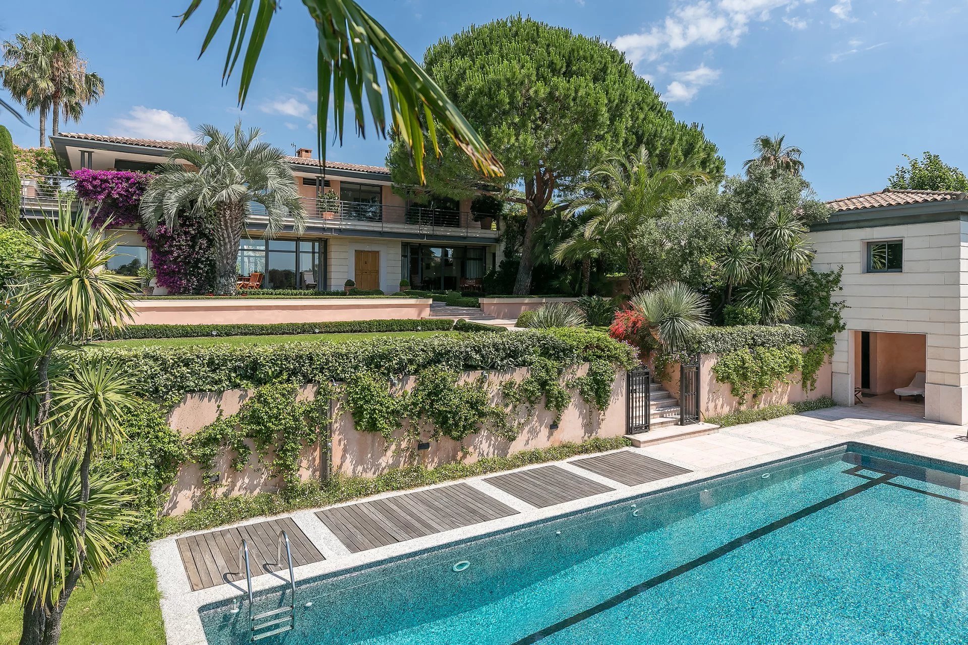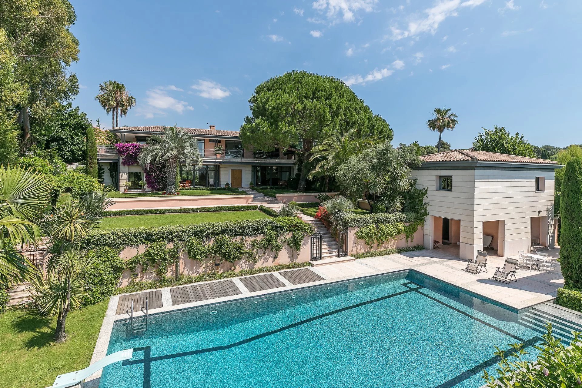 Dans un domaine fermé, cette belle villa récente, orientée sud, bénéficie d'un très beau jardin paysager, agrémenté d'une piscine et pool-house. Les pièces à vivre ouvrent sur de grandes terrasses. Maison de gardien indépendante. Équipements et prestations de qualité.