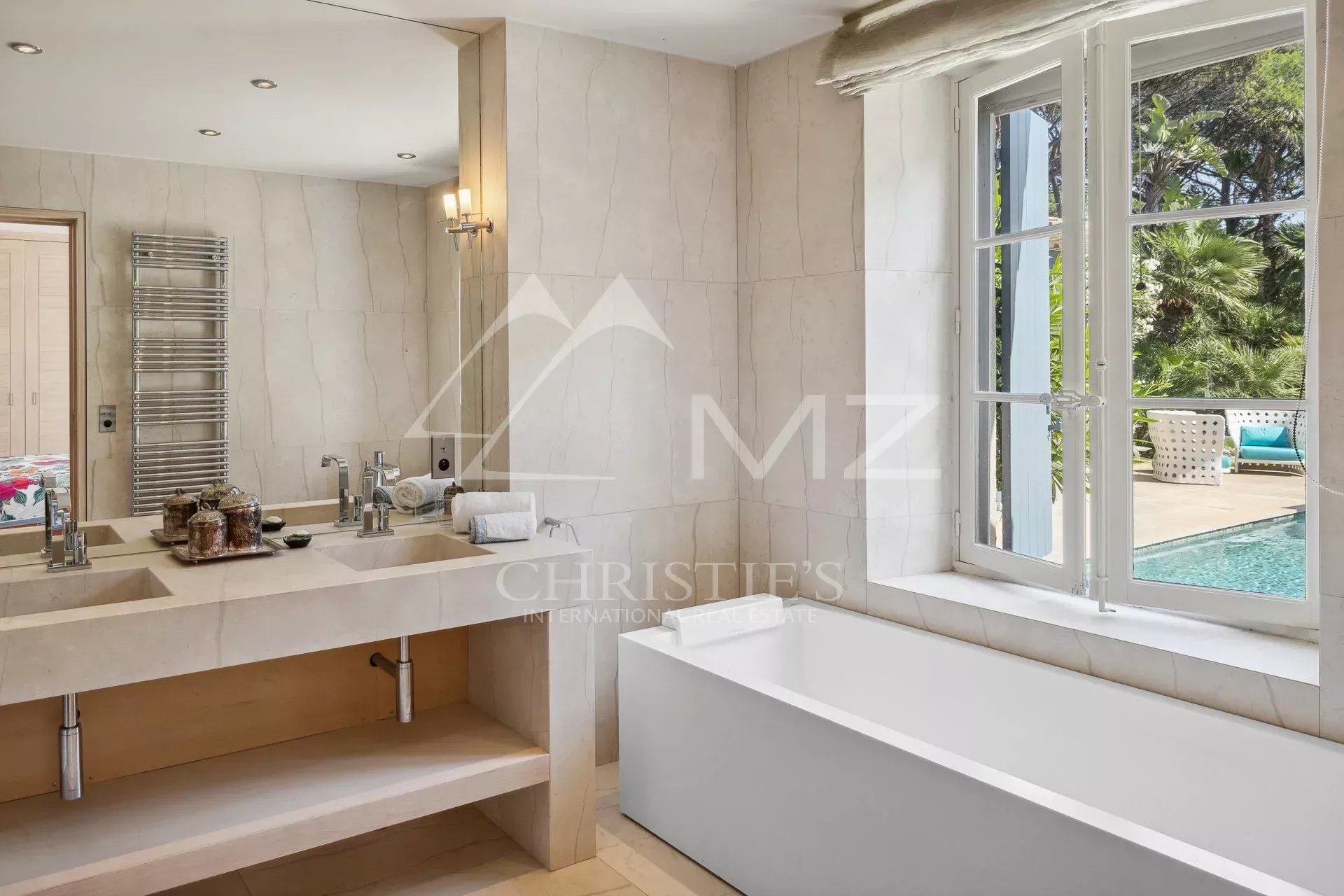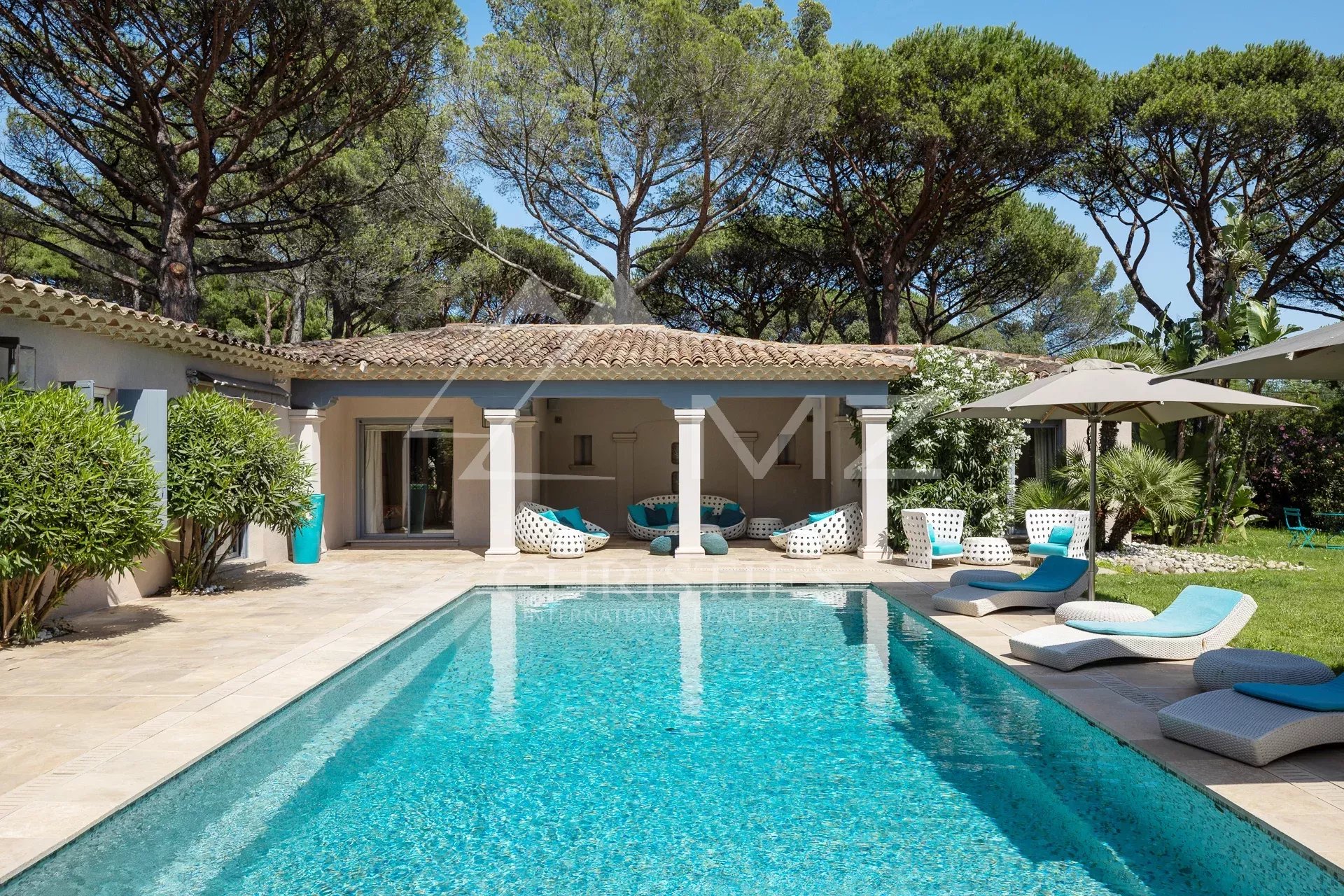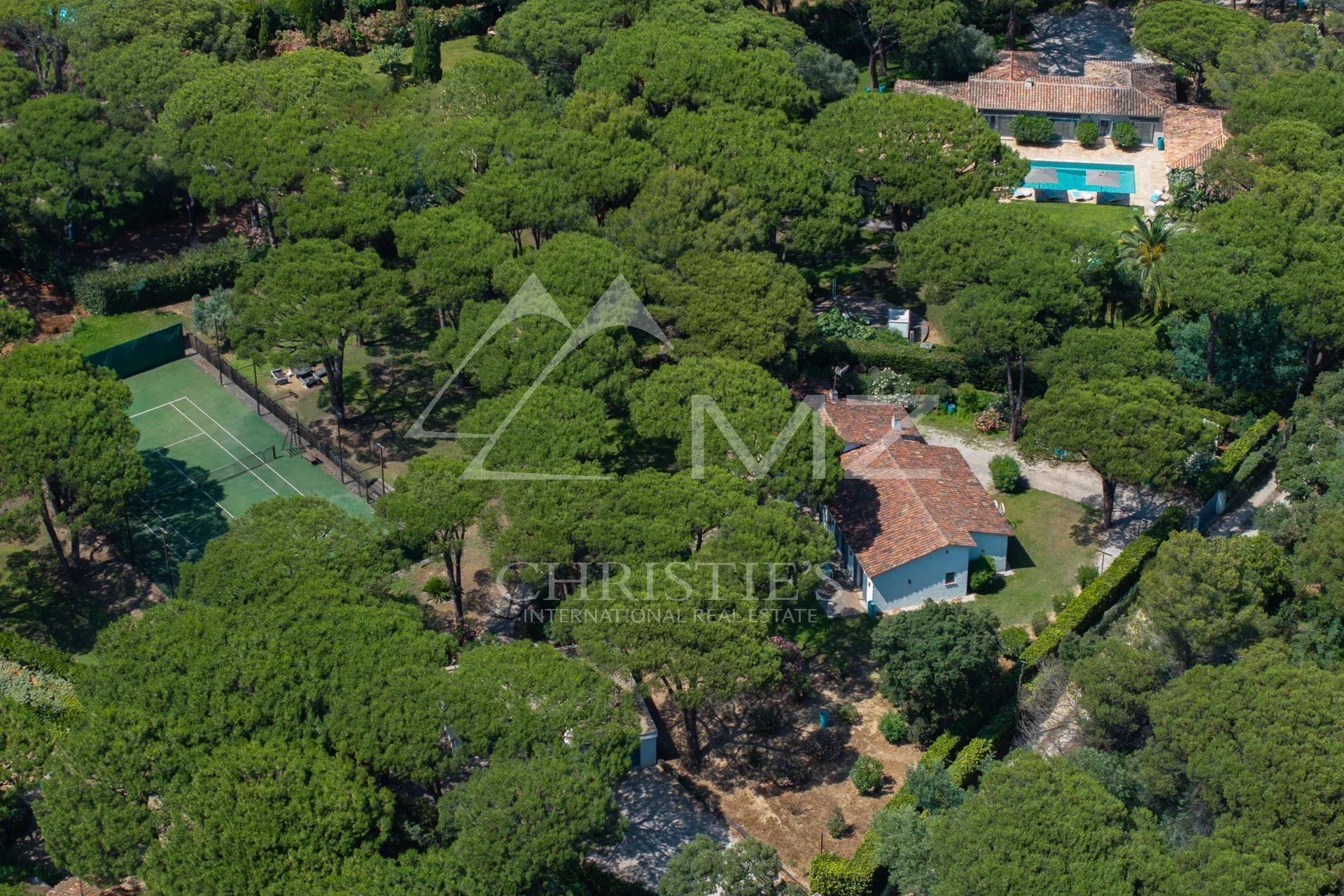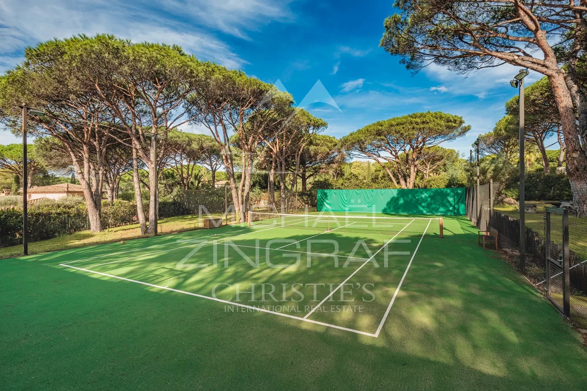 À l'extérieur, profitez d'un terrain de tennis, d'un barbecue, d'une piscine avec local technique et d'un terrain spacieux avec deux portails d'accès pour plus de sécurité et de confort. Vivez des moments inoubliables dans cette villa exceptionnelle, située à proximité des plages et des commodités de Ramatuelle.