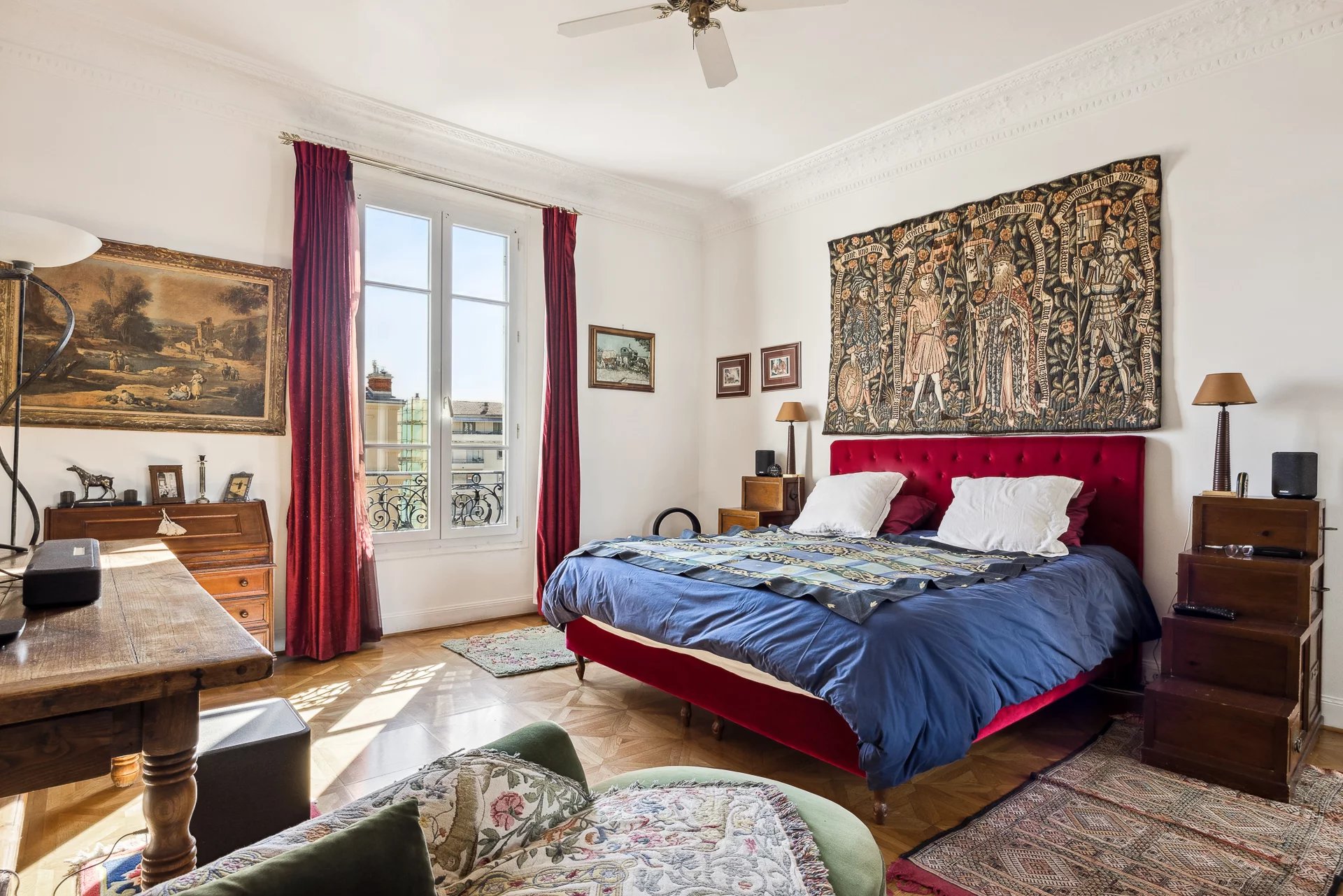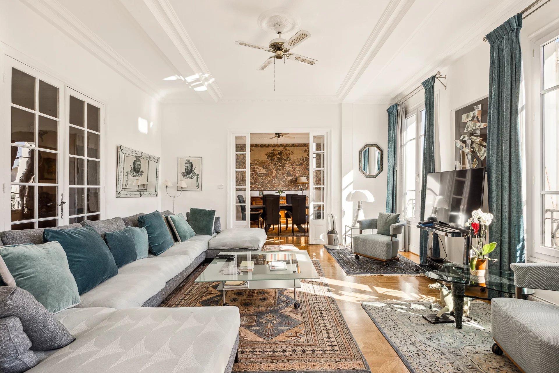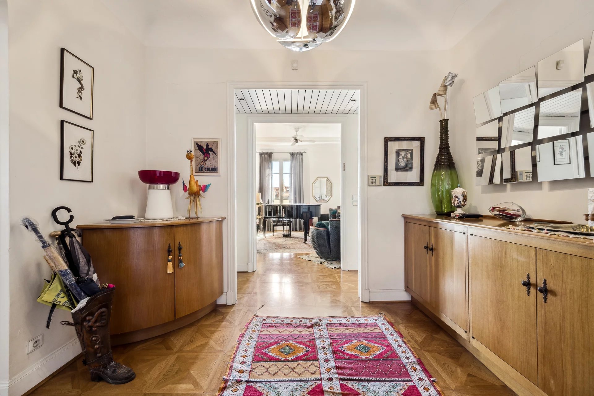 Avec ses hauts plafonds authentiques avec moulures et parquets de Versailles, ce bien d'exception seul à l'étage comprend, une belle entrée, unique triple réception de 63.33 m² exposé au sud avec une très belle luminosité, une très grande cuisine de plus de 17.03 m² récemment rénovée avec gout donnant sur la véranda avec une très belle vue dégagée, 4 belles chambres dont une chambre de 21.70 m² avec sa salle de bains et une autre chambre donnant sur la plus grande véranda de 19.40 m² avec une remarquable vue sur les montagnes, un dressing, 2ème salle de bains et 2 wc invités avec lave mains. De nombreux rangements.
