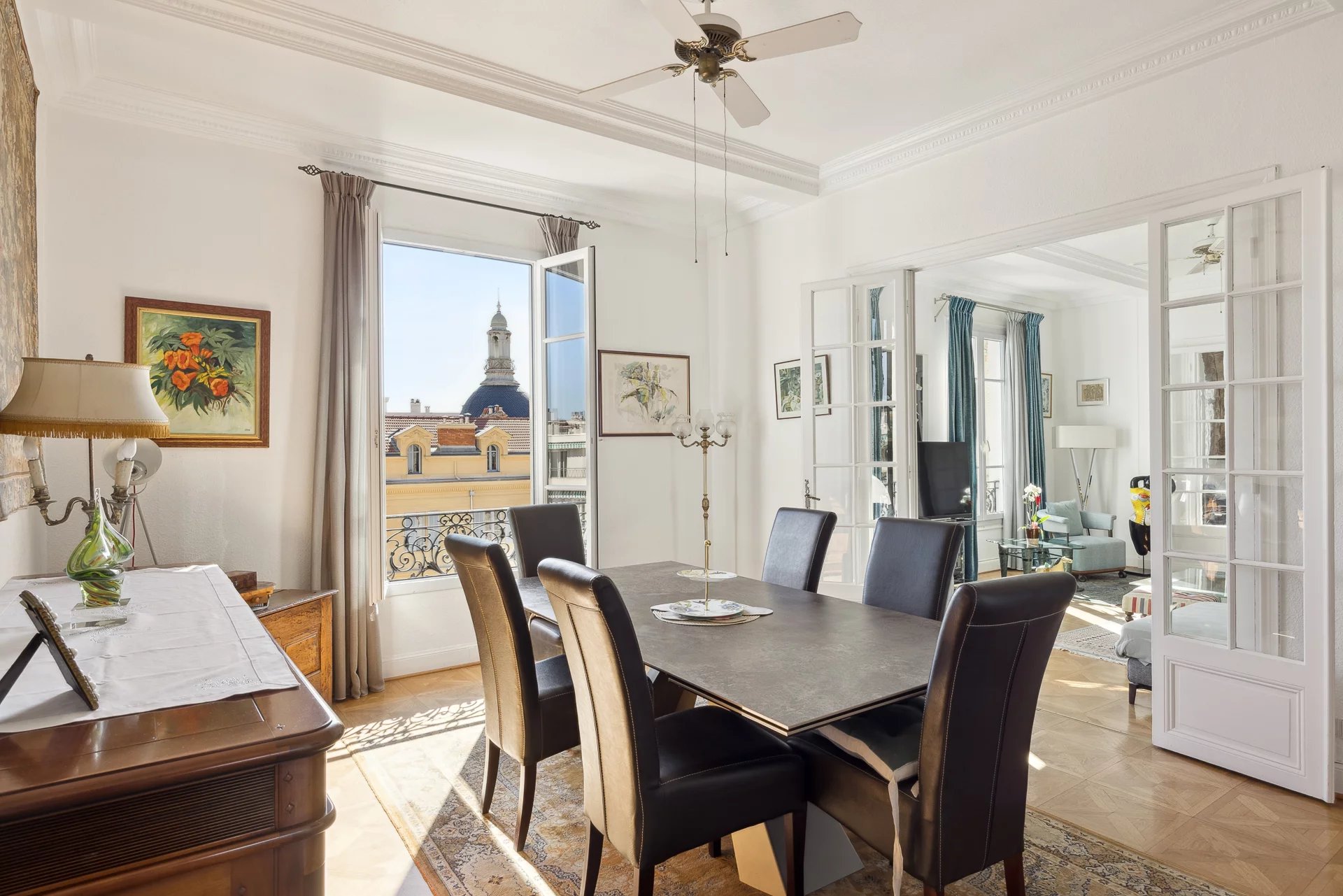 Appartement dans un parfait état rénové avec le respect de son histoire et avec la proximité des plus beaux endroits et monuments de Nice comme la Promenade des Anglais et le fameux hôtel Negresco.
