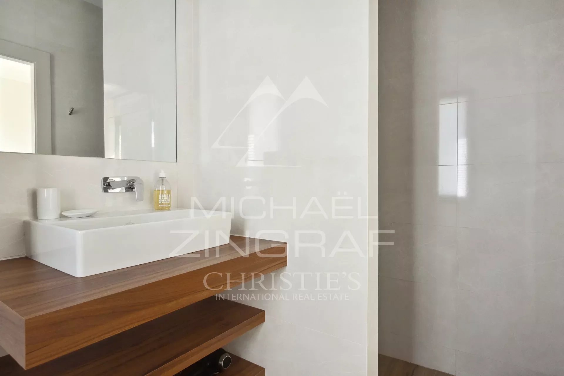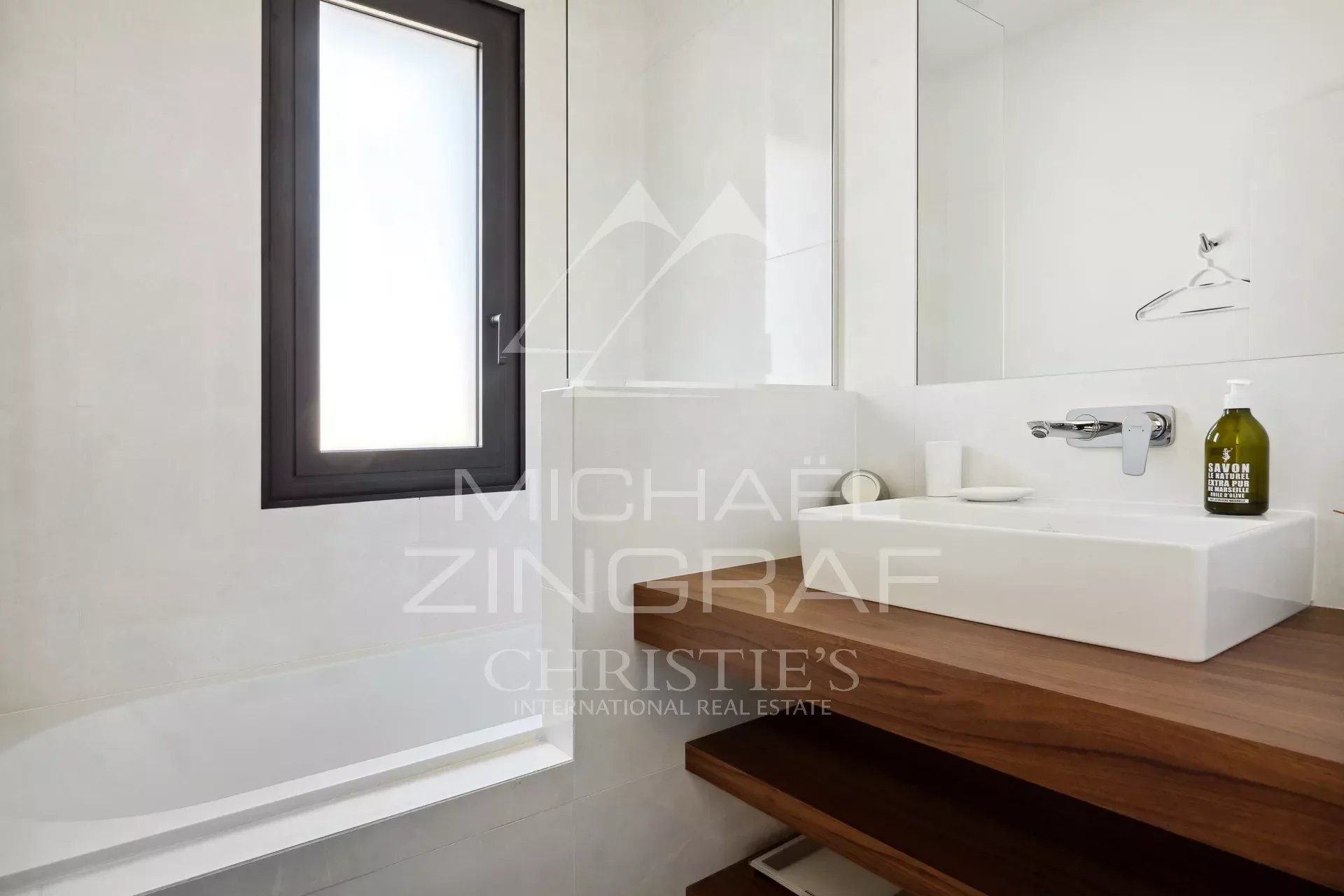 Le terrain de jeu, les nombreuses places de parking, la climatisation dans toute la villa, la piscine au sel pouvant être chauffée, et le système de sécurité complètent les prestations de cette propriété.