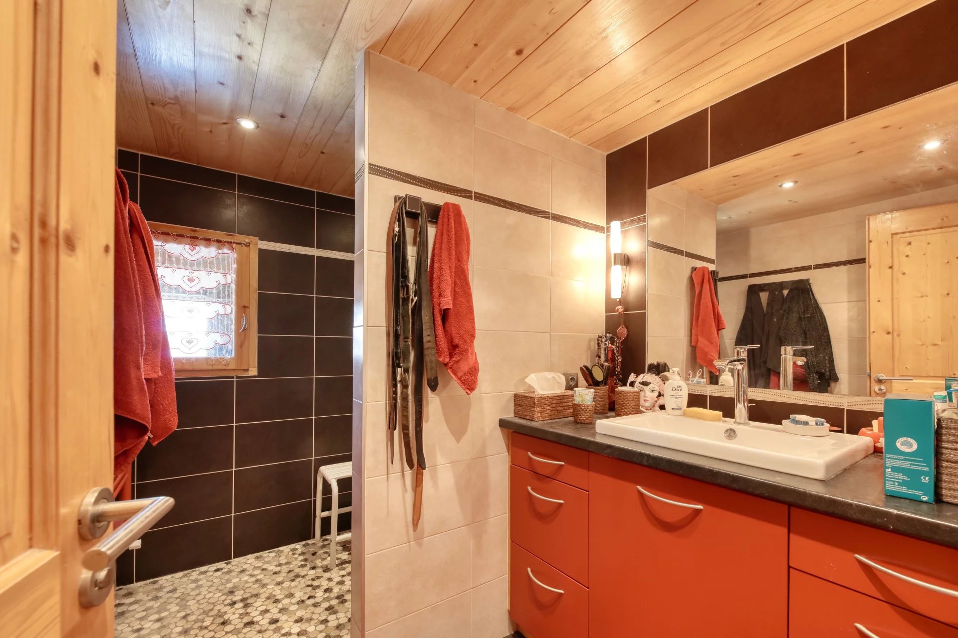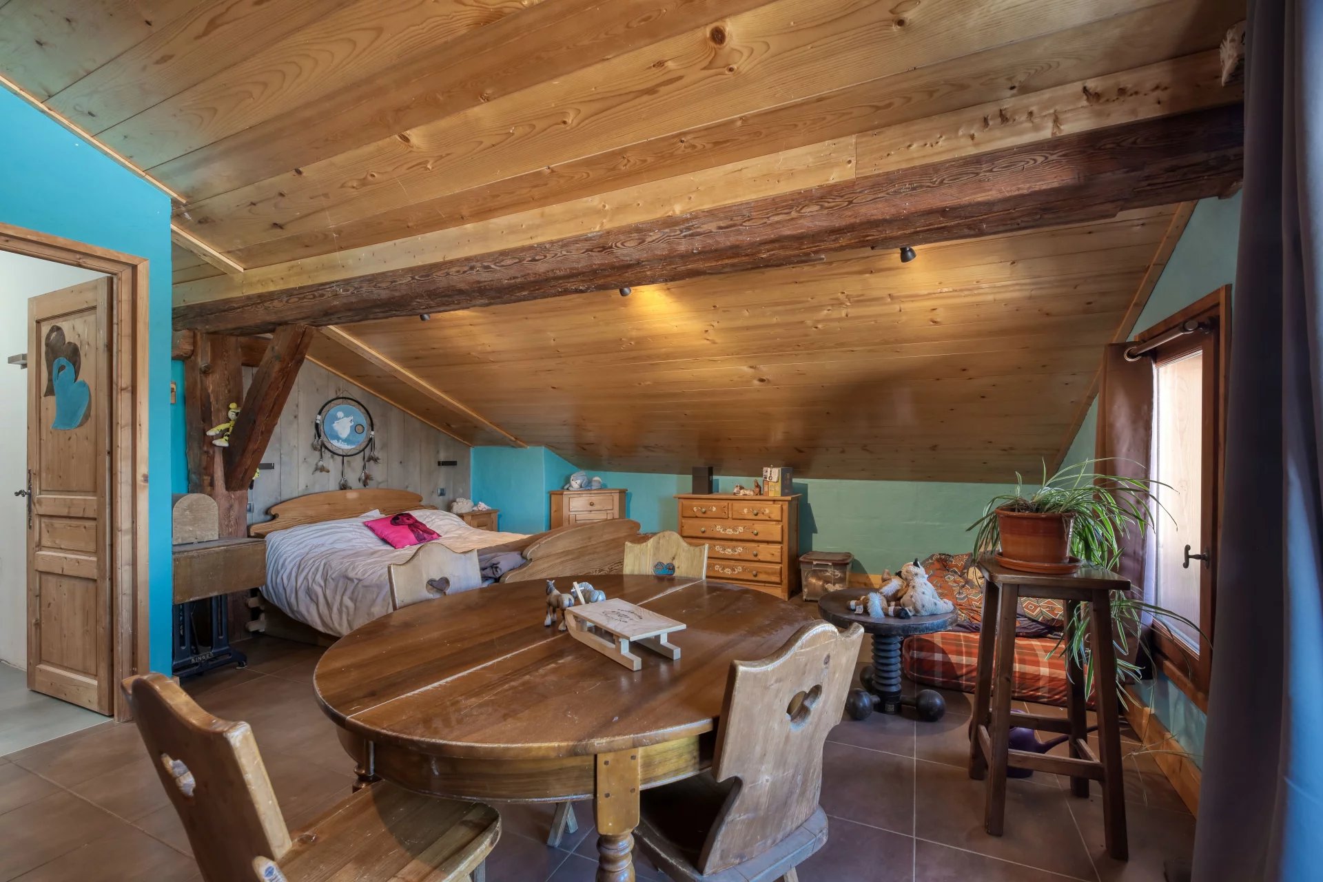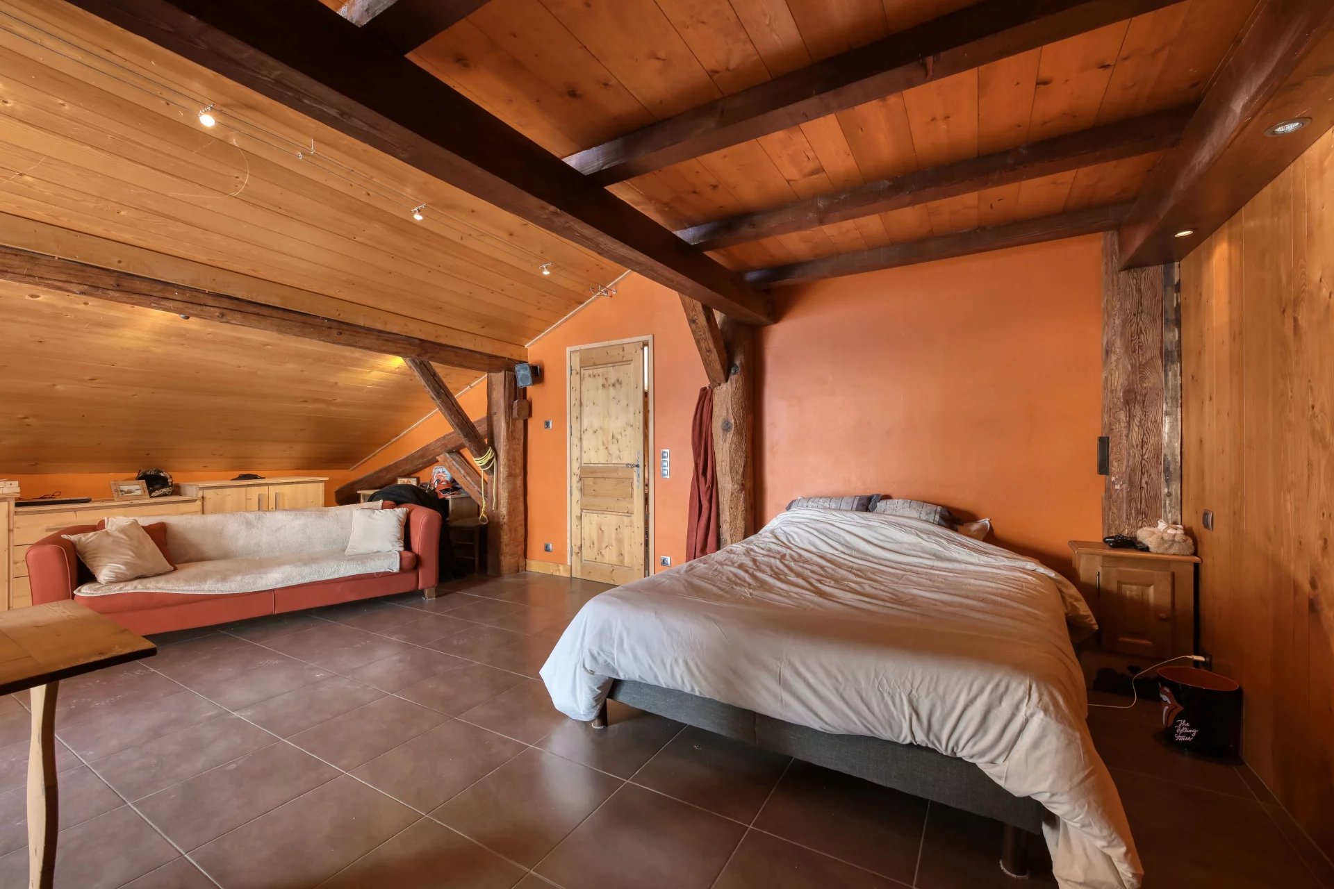 A proximité immédiate des pistes, son cadre champêtre et paisible séduit. La bâtisse de 500 m2 dispose d'une confortable partie habitation comprenant un salon/salle à manger avec terrasse Sud-Ouest, une cuisine séparée, quatre chambres, un bureau, et un dressing.