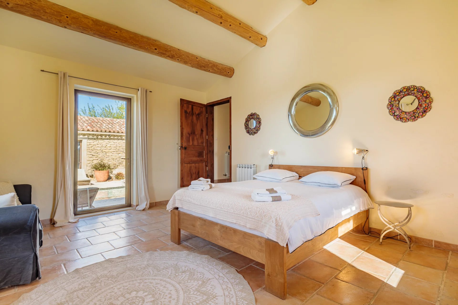 A 5 minutes à pied du village de Gordes, laissez vous séduire par cette belle maison en pierres. Construite en forme de U autour de sa piscine chauffée, elle offre des espaces de détente autour de la terrasse et dans le jardin. Sa luminosité, comme ses volumes intérieurs et ses grands espaces de vie vous charmeront immédiatement. La maison climatisée est de quasi plain-pied (quelques marches intérieures) et les 3 chambres doubles sont ouvertes sur la terrasse. 4 chambres et 2 salles de bains pour votre confort. Belles prestations.