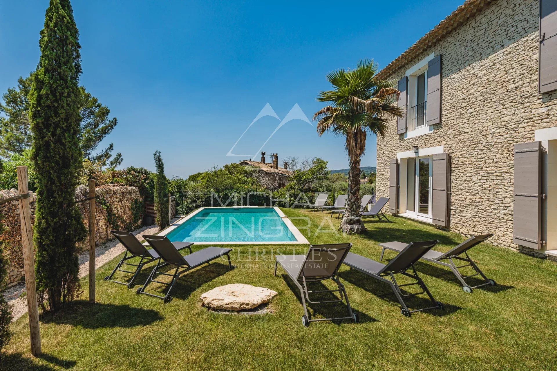 Proche du centre du village de Gordes, accessible à pied en moins d'un quart d'heure, découvrez cette belle maison avec vue panoramique. Une jolie piscine 8 x 4 m avec espace engazonné et beau pool-house vous attend pour de longs moments de farniente.