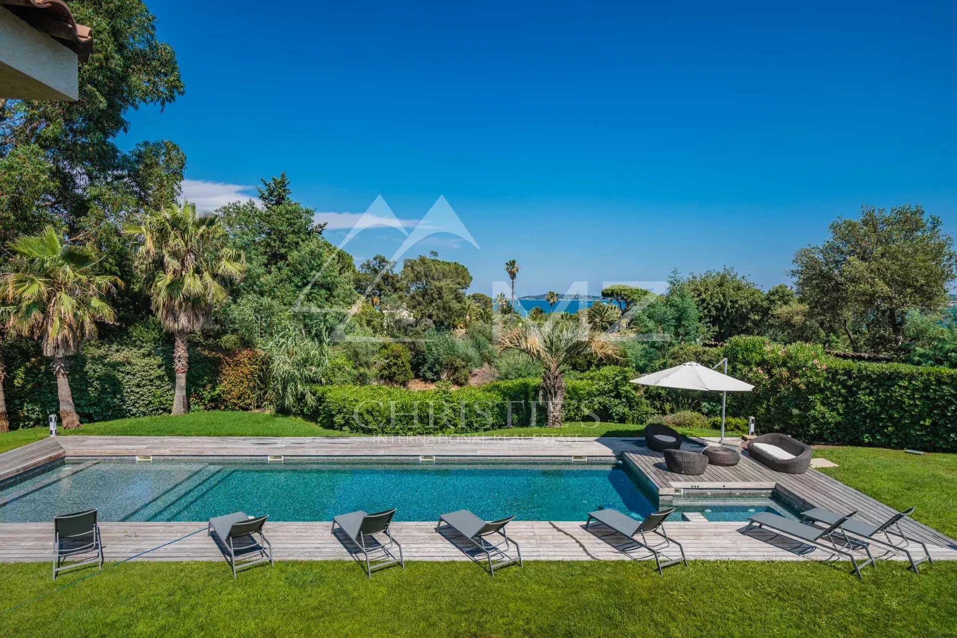 Cette villa contemporaine, située dans le grand domaine de Beauvallon, face au Golf de Saint Tropez, offre un accès direct à la plage.