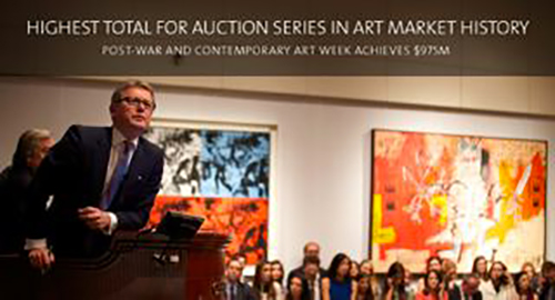 Le 14 mai 2014, le montant des ventes aux enchères d'oeuvres d'art de l'après-guerre et de l'époque contemporaine a atteint un total de $ 879 574 000. Le chiffre du 13 mai 2014, $ 744 900 000 pour une soirée d'enchères, représente la plus grosse somme jamais atteinte en une unique session. L'enchère réunissait des acquéreurs de 35 pays, en concurrence pour une exceptionnelle sélection d'oeuvres des plus grands artistes du XXe siècle : Francis Bacon, Andy Warhol, Barnett Newman...