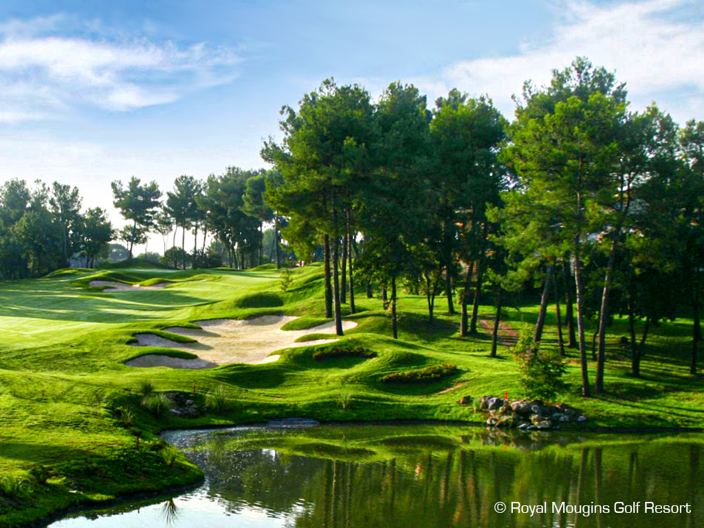 Mougins propose l'un des plus beaux golfs de la Côte d'Azur. Niché au coeur d'une nature luxuriante, le domaine présente un parcours vallonné de toute beauté. La végétation provençale typique, les lacs et les rivières du site lui conférent une ambiance unique. Accès réservé aux membres et à la clientèle de l'hôtel-Spa 4 étoiles. Le golf a été élu Best Golf Hôtel plusieurs années consécutives.