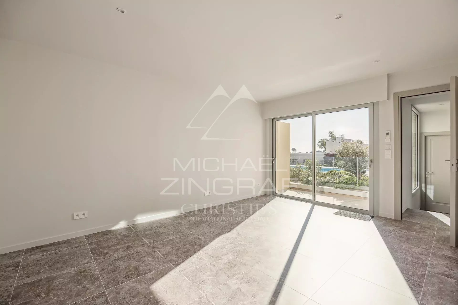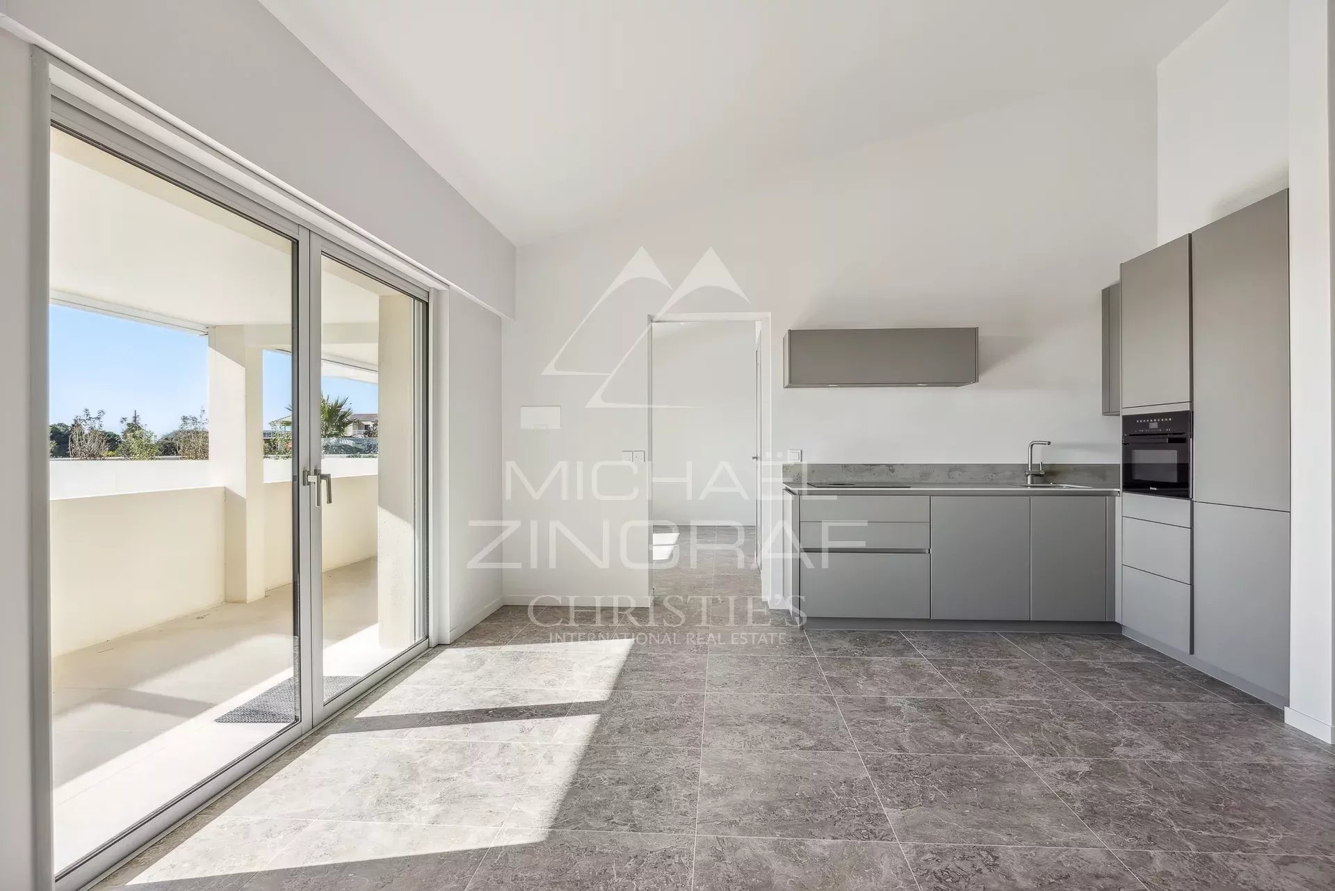 Le quatrième appartement, d’environ 68 m², comprend une entrée avec toilette pour invités et un salon/séjour avec cuisine américaine donnant sur une terrasse avec un accès direct à la piscine. Il se compose de deux chambres, de deux salles de douche avec toilette, ainsi que de places de parking.