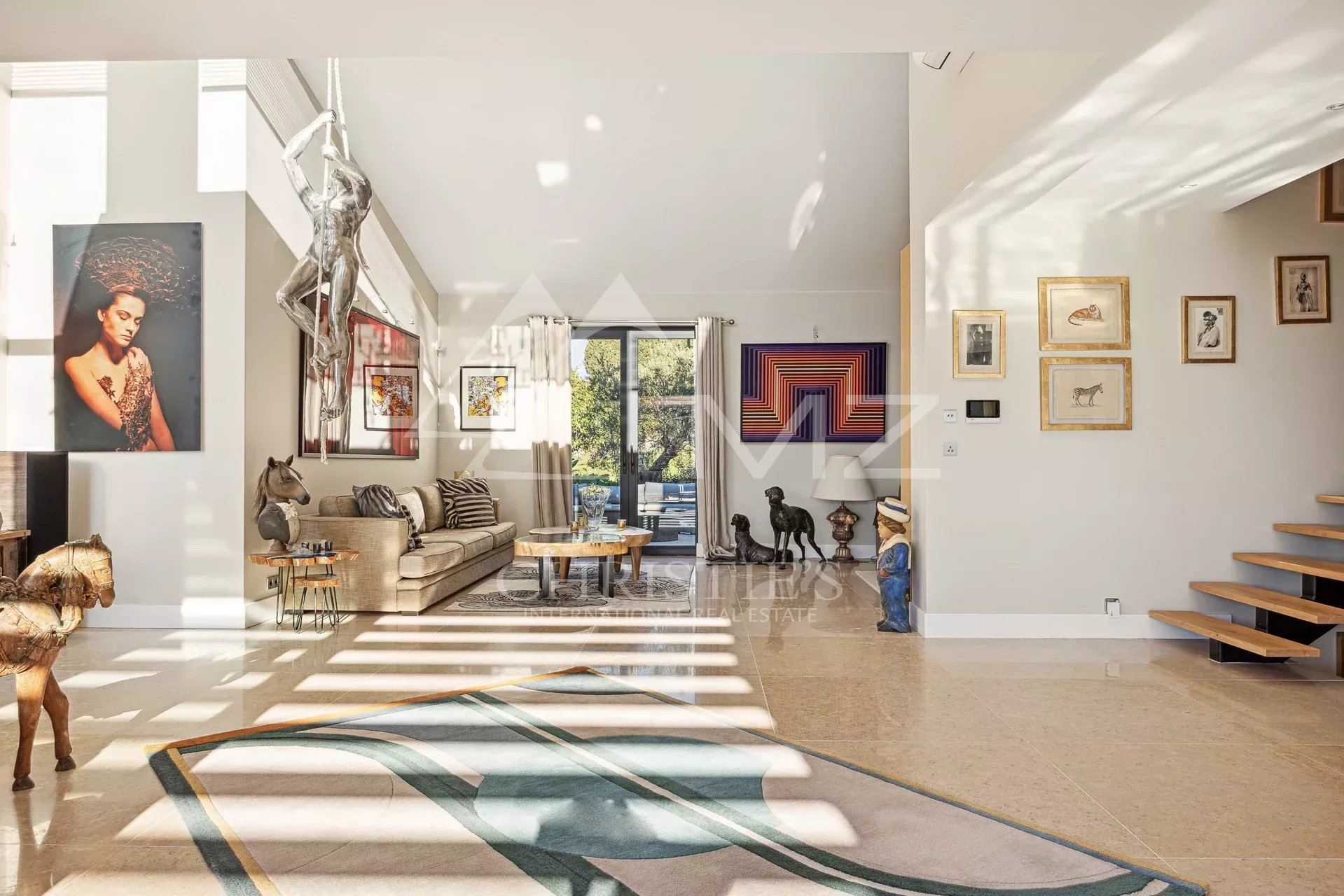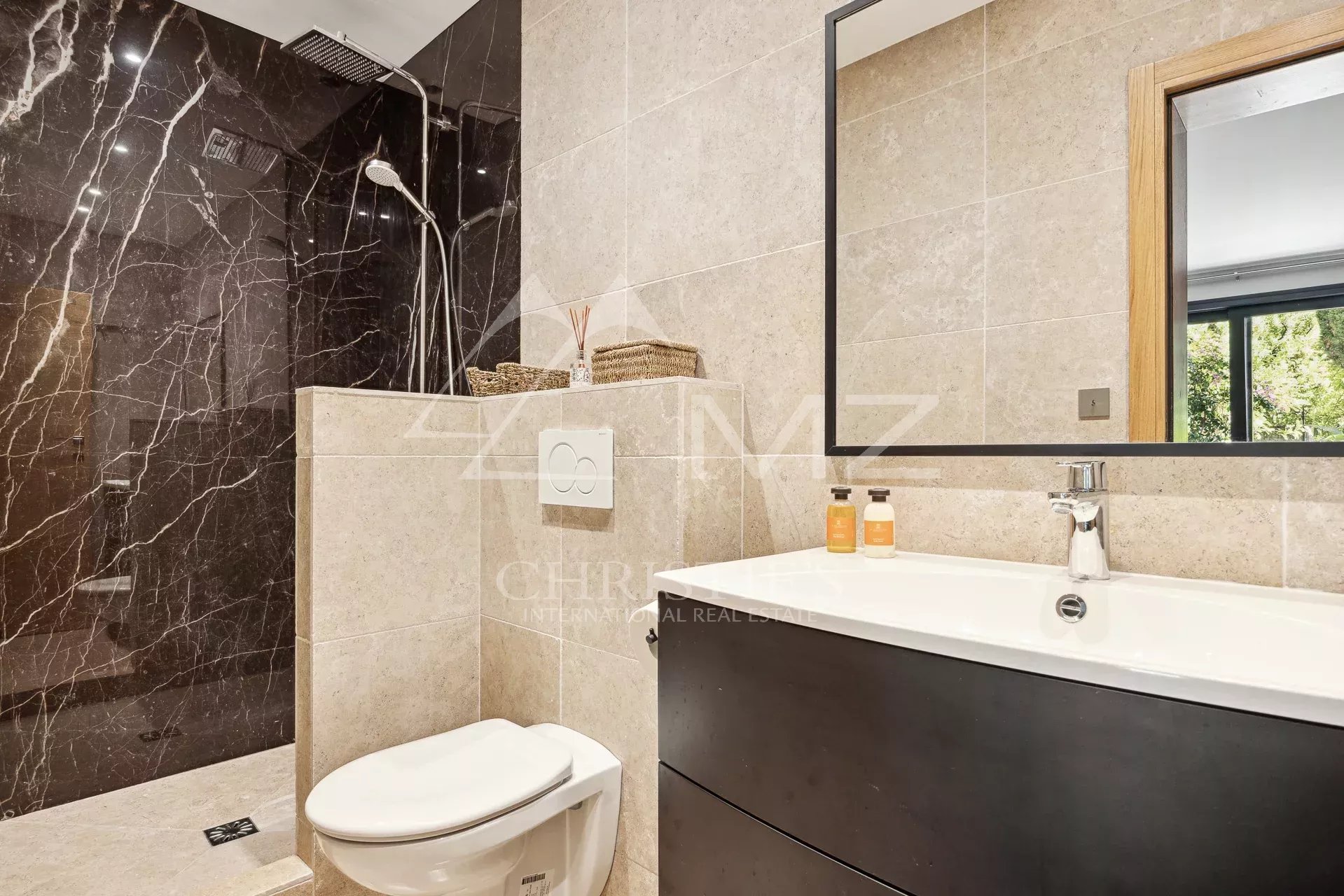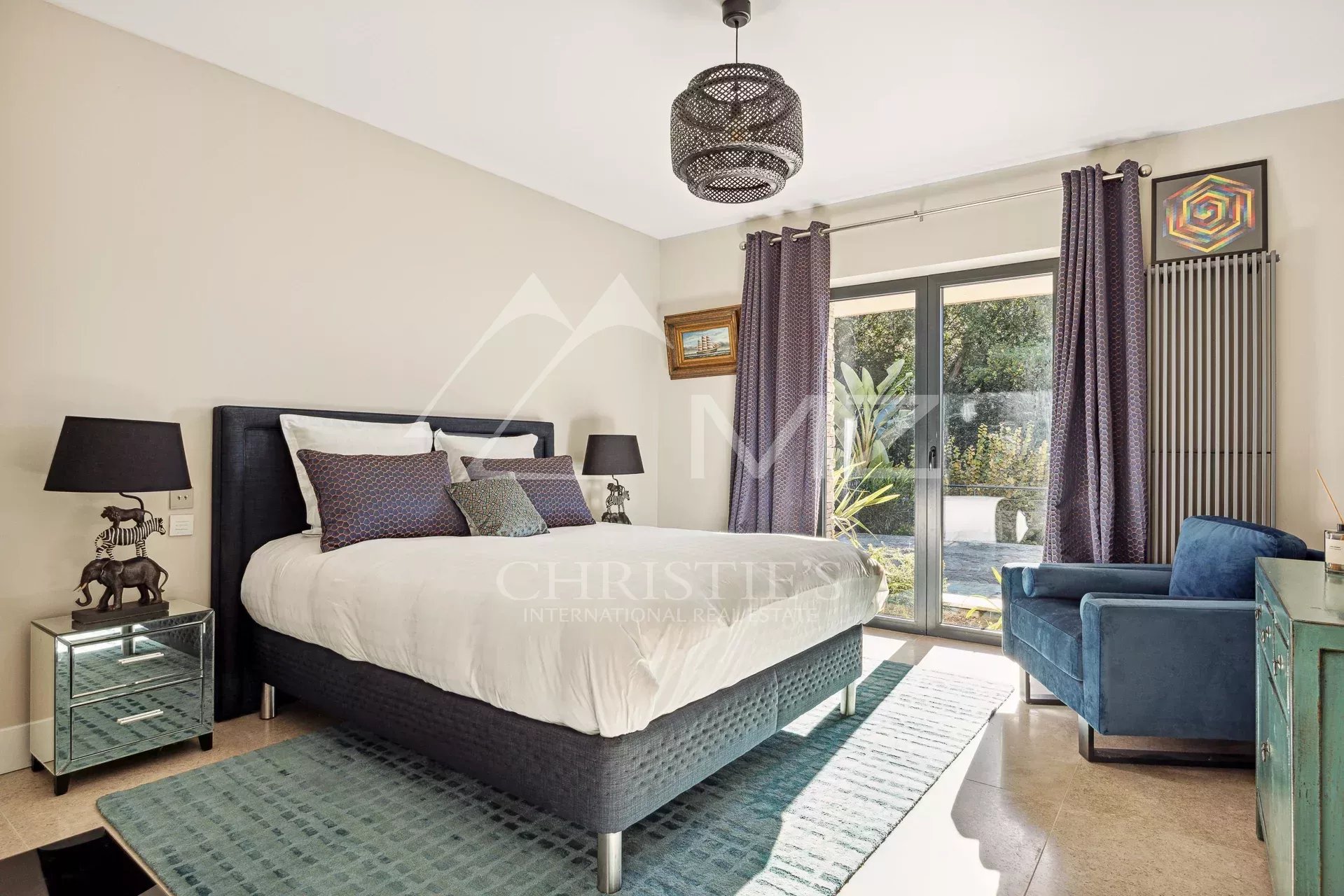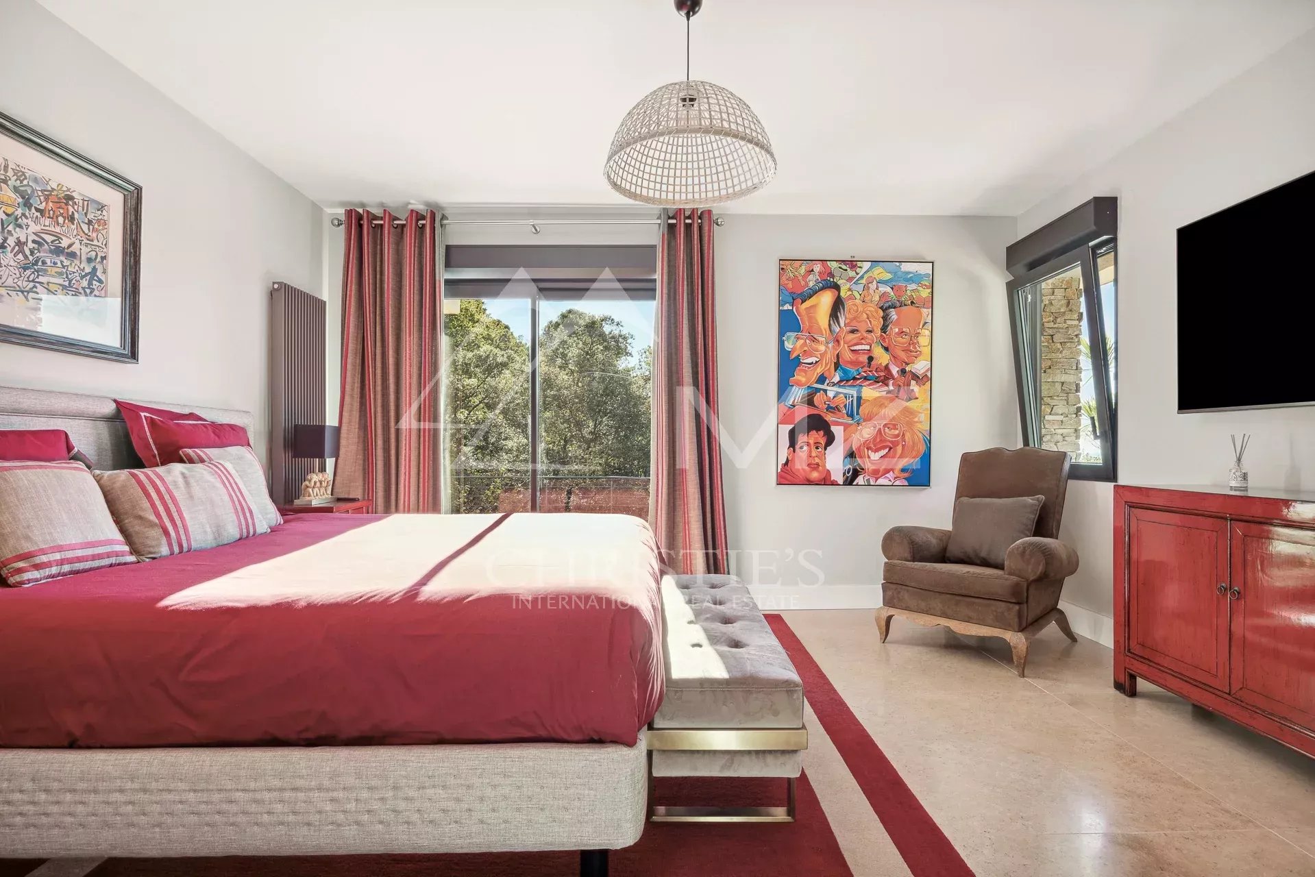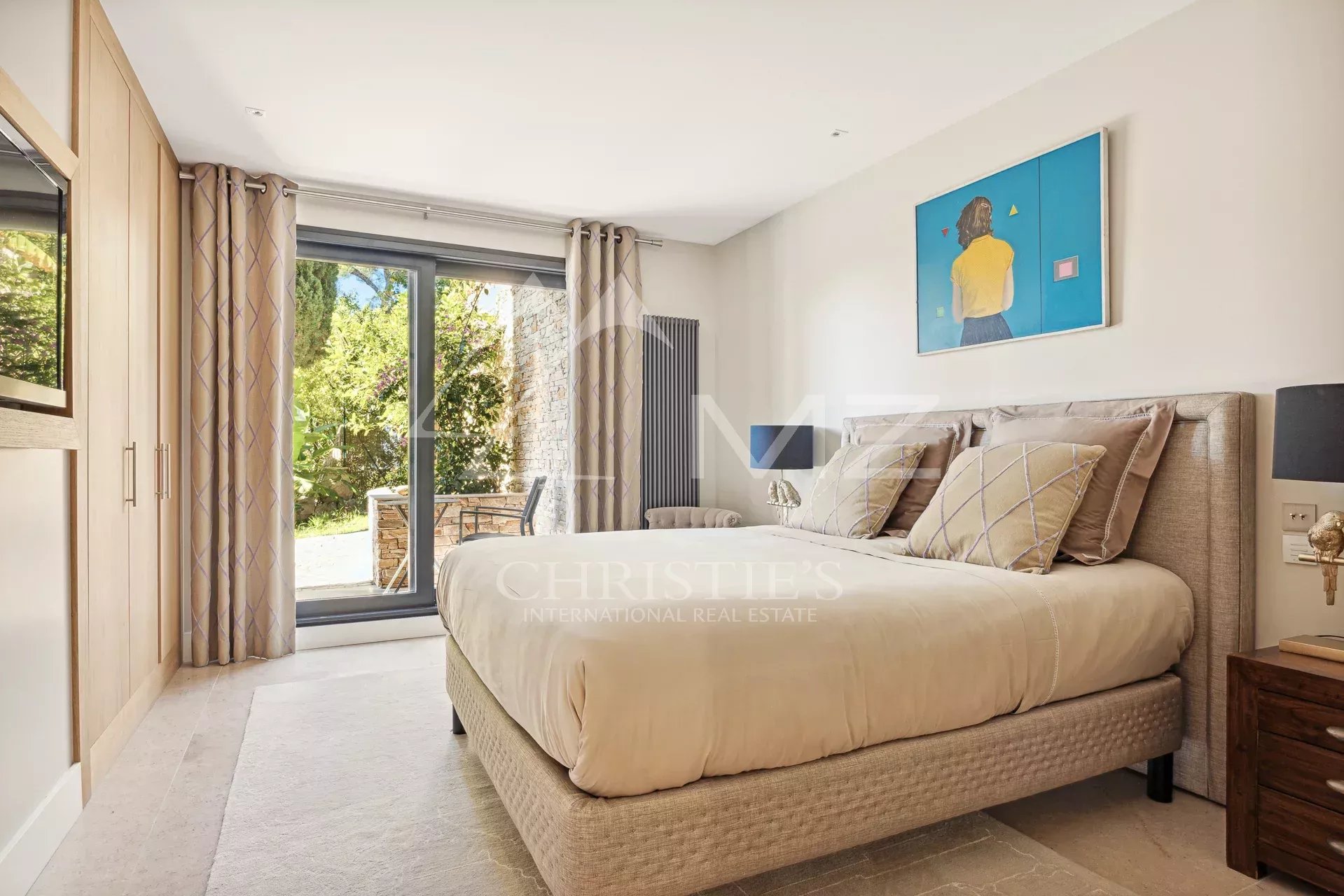 Exceptionnelle propriété contemporaine à la décoration raffinée, de 300m² environ. Offrant une vue mer sur la rade de Cannes et l'Estérel, 5 chambres en suite, salon, salle à manger, cuisine, solarium, buanderie. Terrain avec piscine chauffée entièrement paysager. Garage.