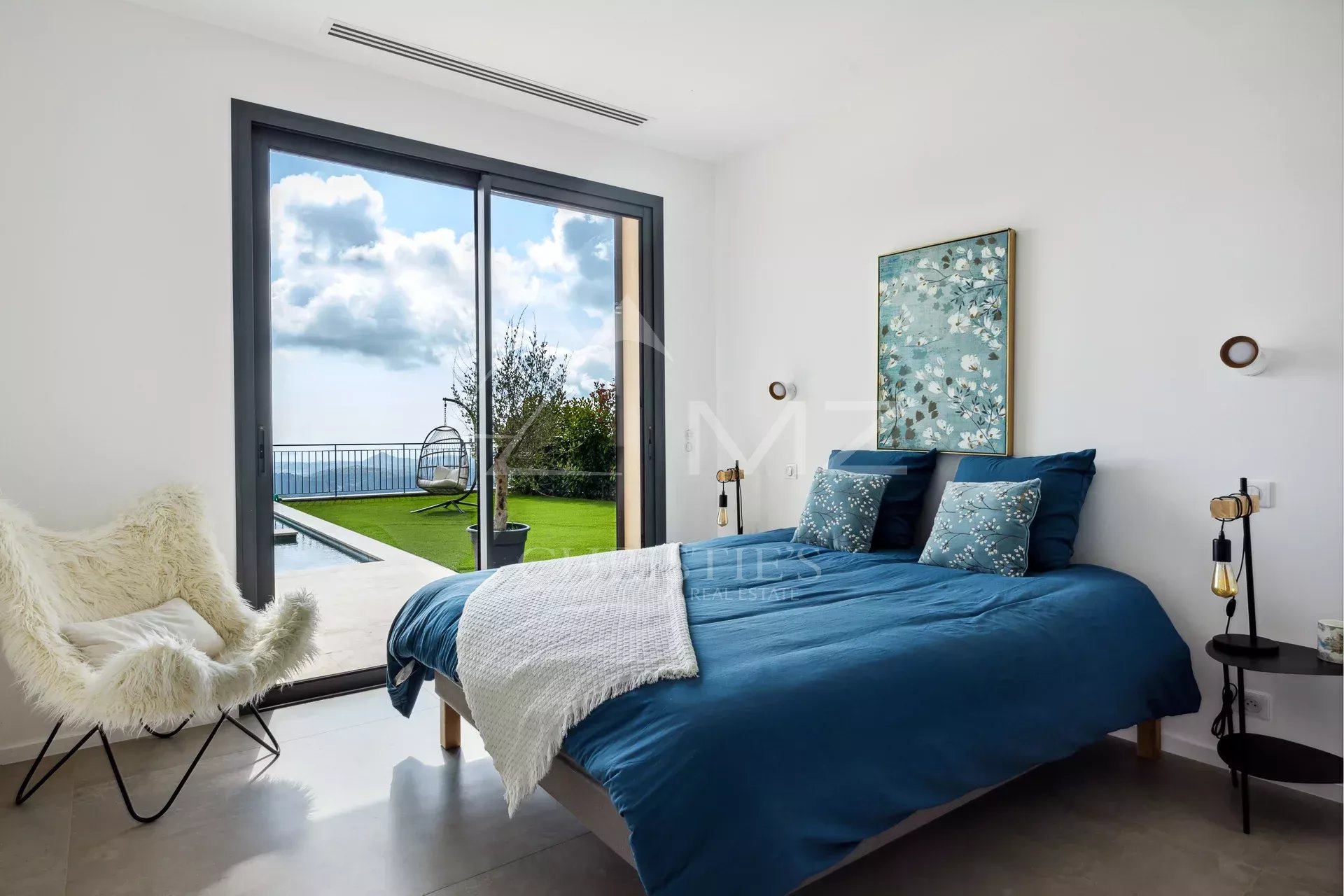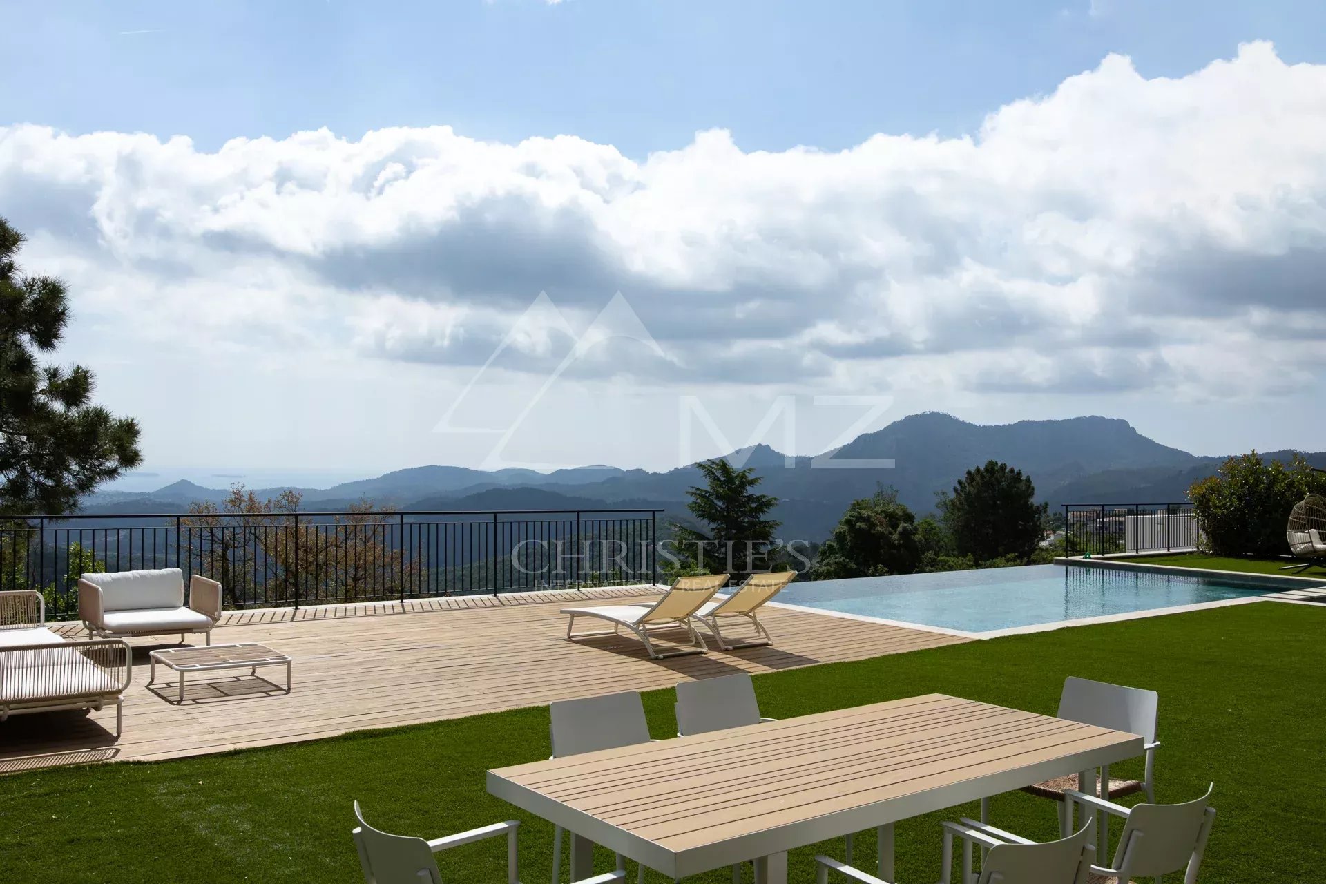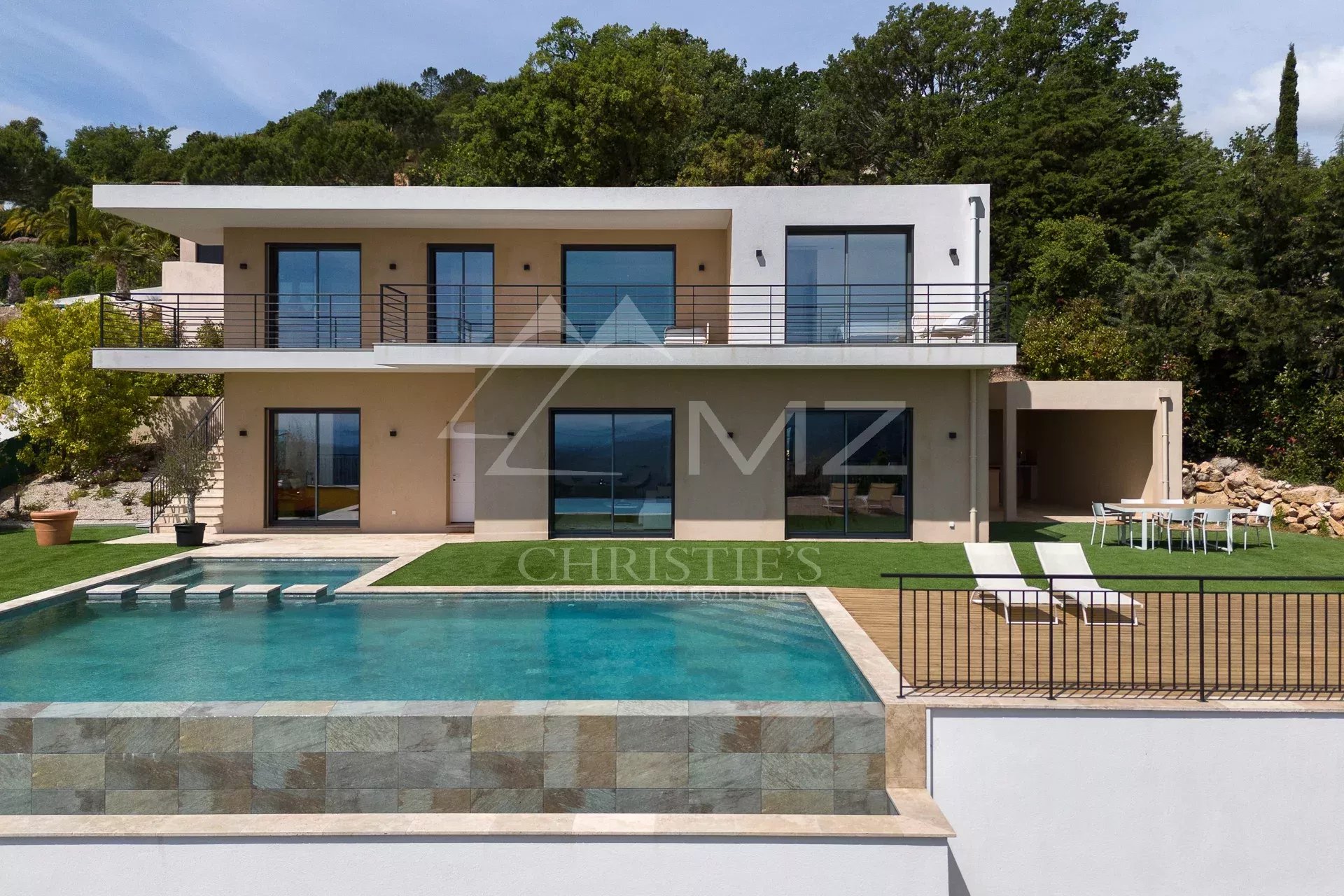 Au cœur d'un domaine sécurisé dominant l'Estérel, superbe villa contemporaine neuve de 235 m2 habitables environ, offrant une vue remarquable jusqu'à la mer. Grand salon cuisine de près de 90 m2, une suite de plain-pied, et 3 autres chambres à l'étage. Piscine à débordement, garage, pool house. Très belles finitions.